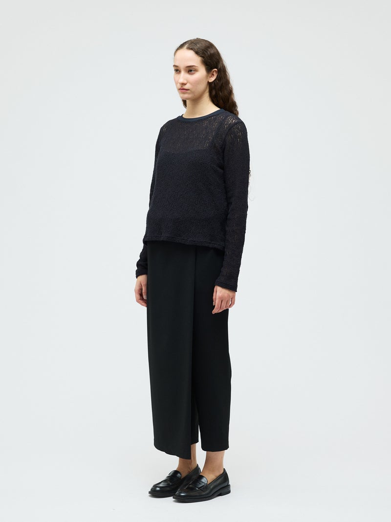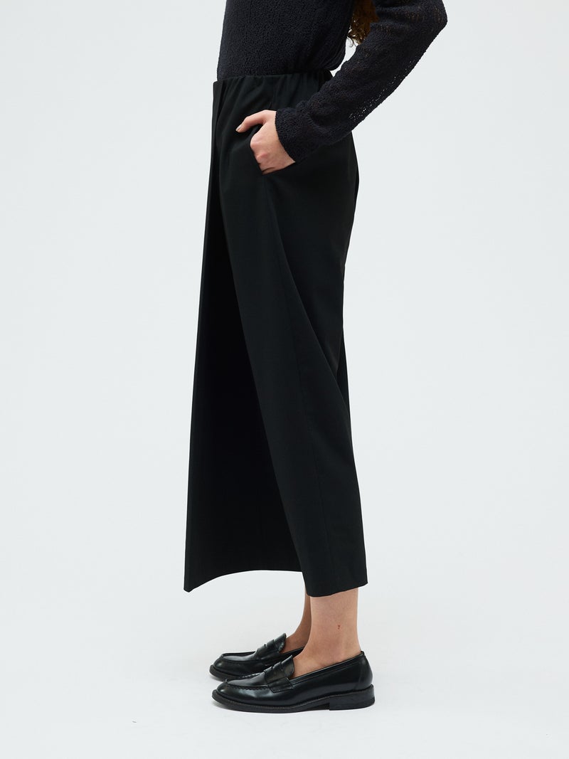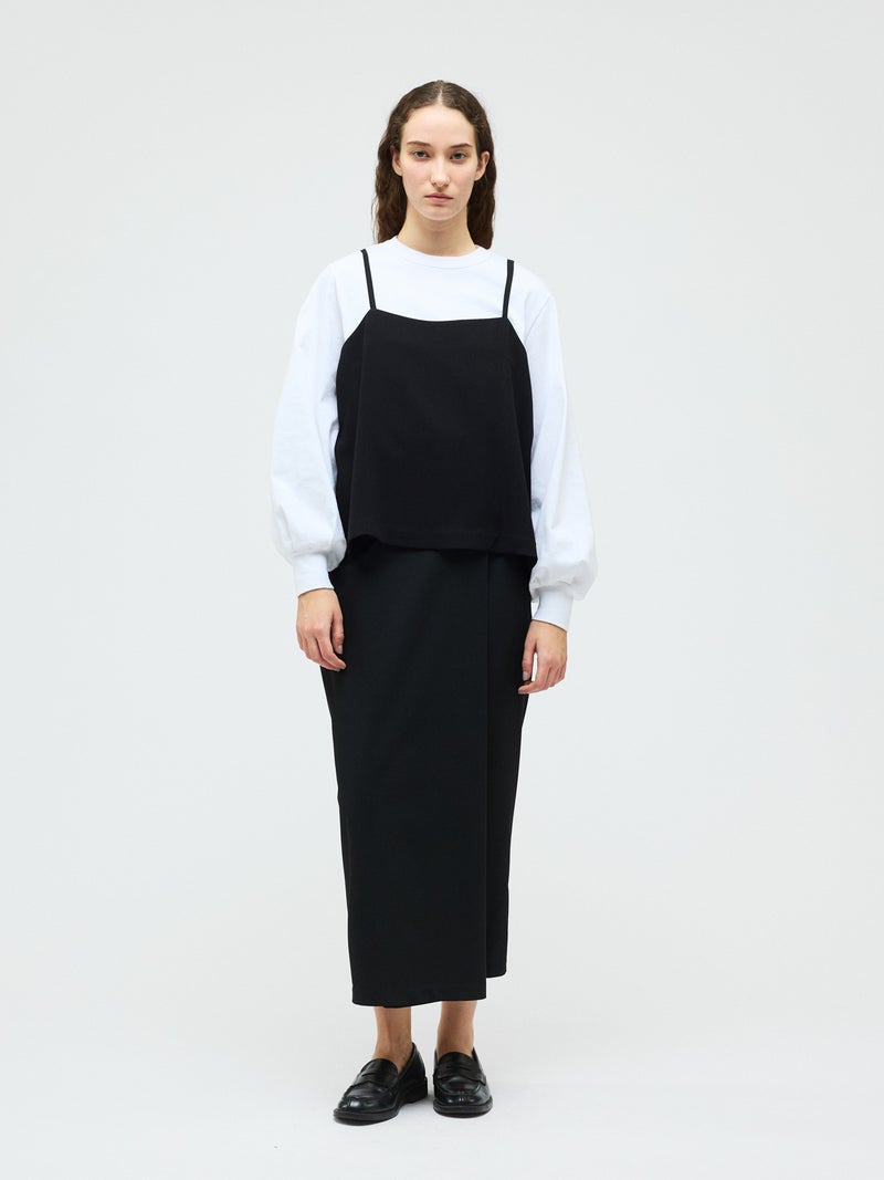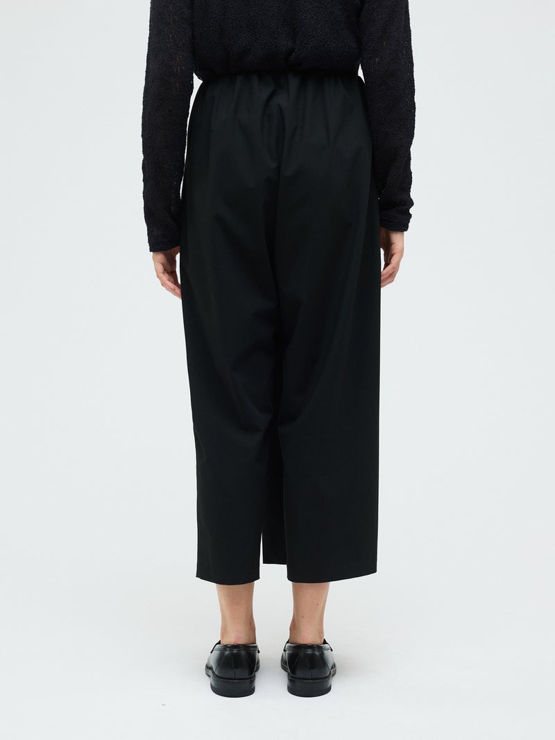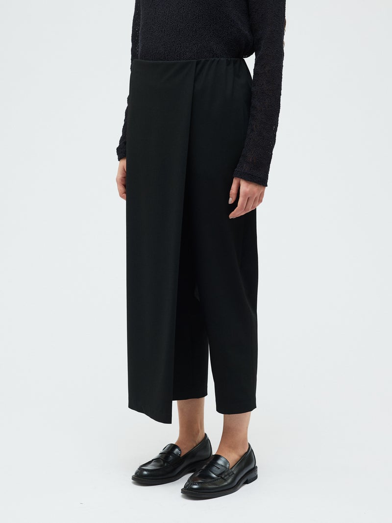 タイ風スカートのようなデザインを表現したラップスカートライクパンツです。右フロントのパンツ幅を大きく持たせて、ラップスカートのような動きのあるデザインが特徴。素材はややハリのあるTR素材を使用。バックは通常のパンツのシルエットが分かるデザインです。ウエストは中折に幅のあるゴムを使用。シャツインもお勧めです。スカートを穿いていいるような女性らしい雰囲気ですがパンツの動きやすさを兼ね揃えた1枚です。