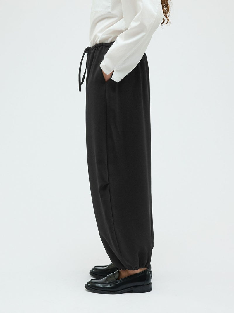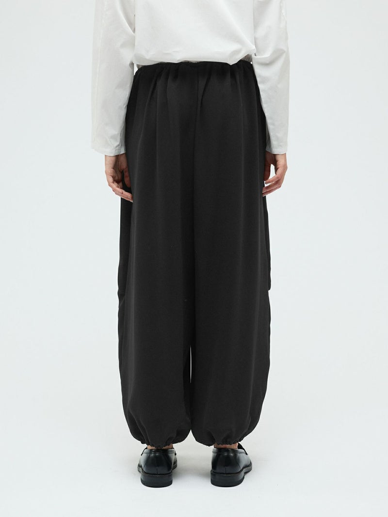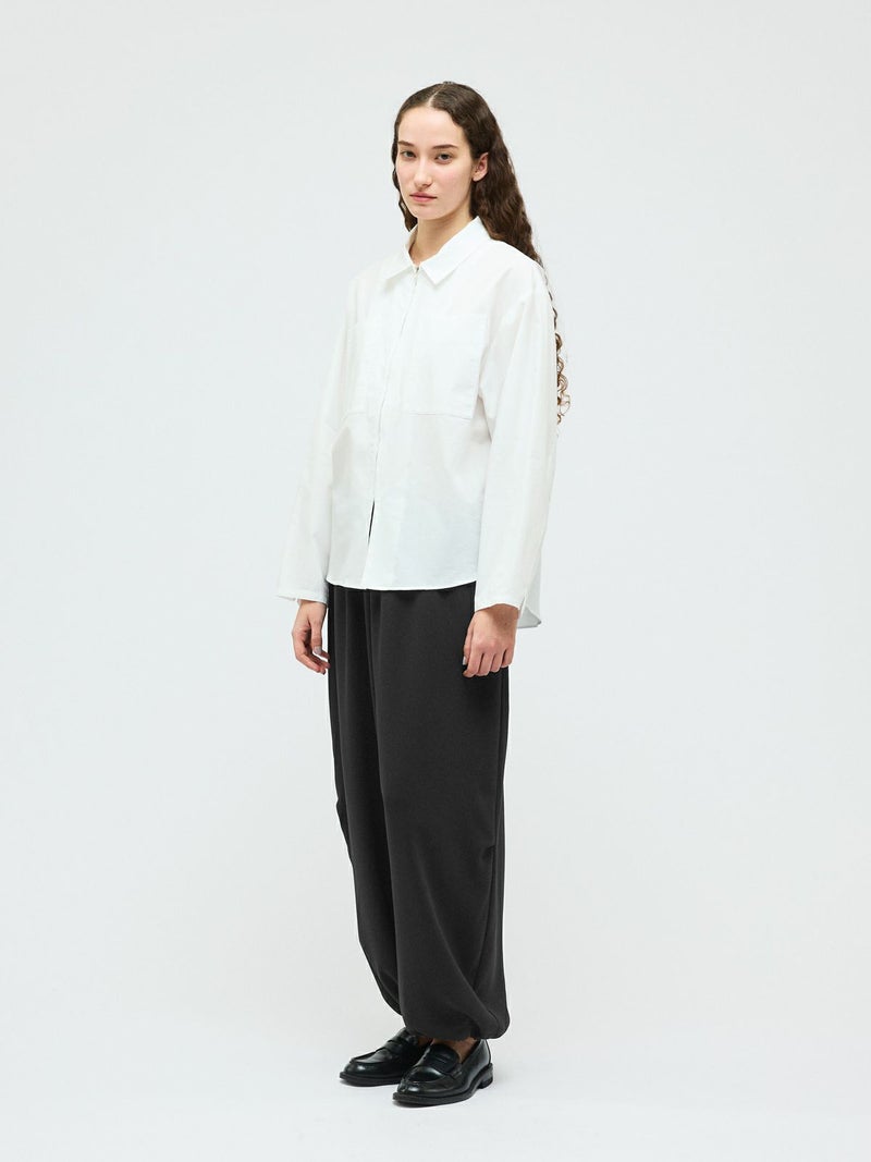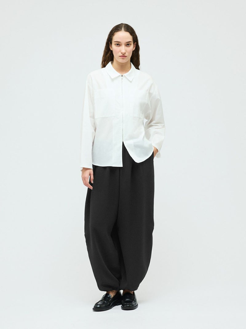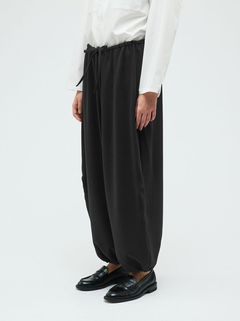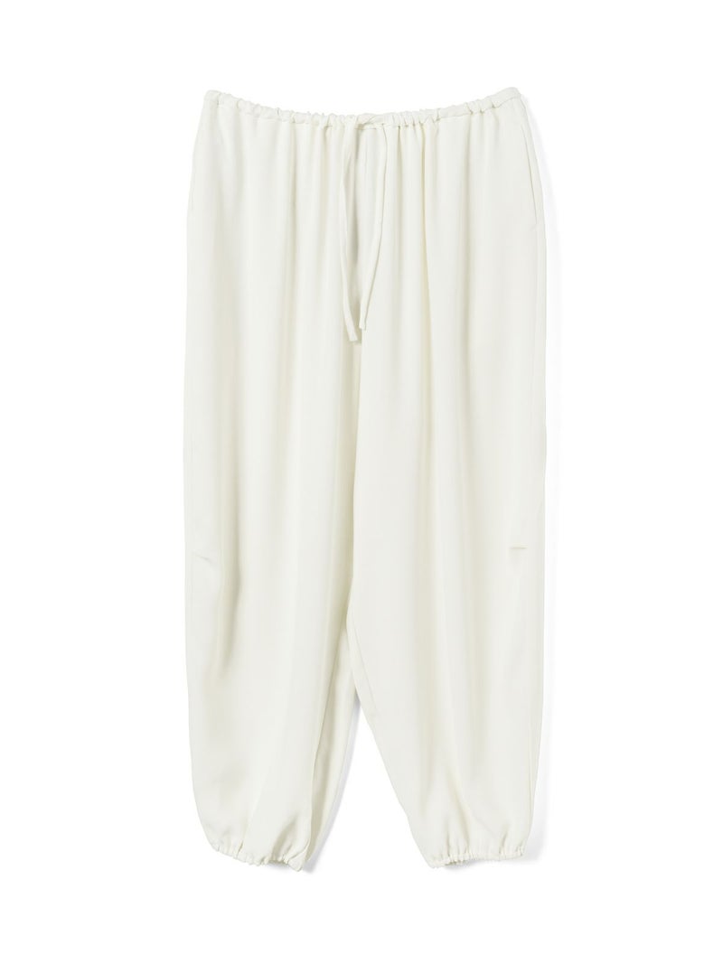 ストレッチダブルクロスのマットな表情としなやかな落ち感が特徴のドローストリングヘムイージーパンツです。裾にゴムが入ったイージーパンツでシューズにワンクッションタブらせる雰囲気の丈感を演出したパンツスタイルを提案します。穿き心地のよさはもちろん、落ち感のある素材で動きが上品でかっこいい着こなしを表現。ウエストはゴム使用に加え調整紐付き。カジュアル過ぎず落ち着きのあるカラー展開で着回ししやすくシックに決まるボトムアイテムです。同シリーズとして1-230161/ブルゾンライクシャツとのセットアップもお勧めです。