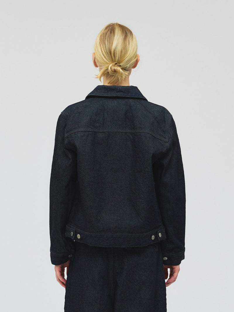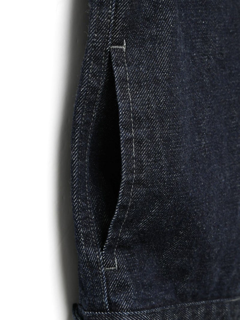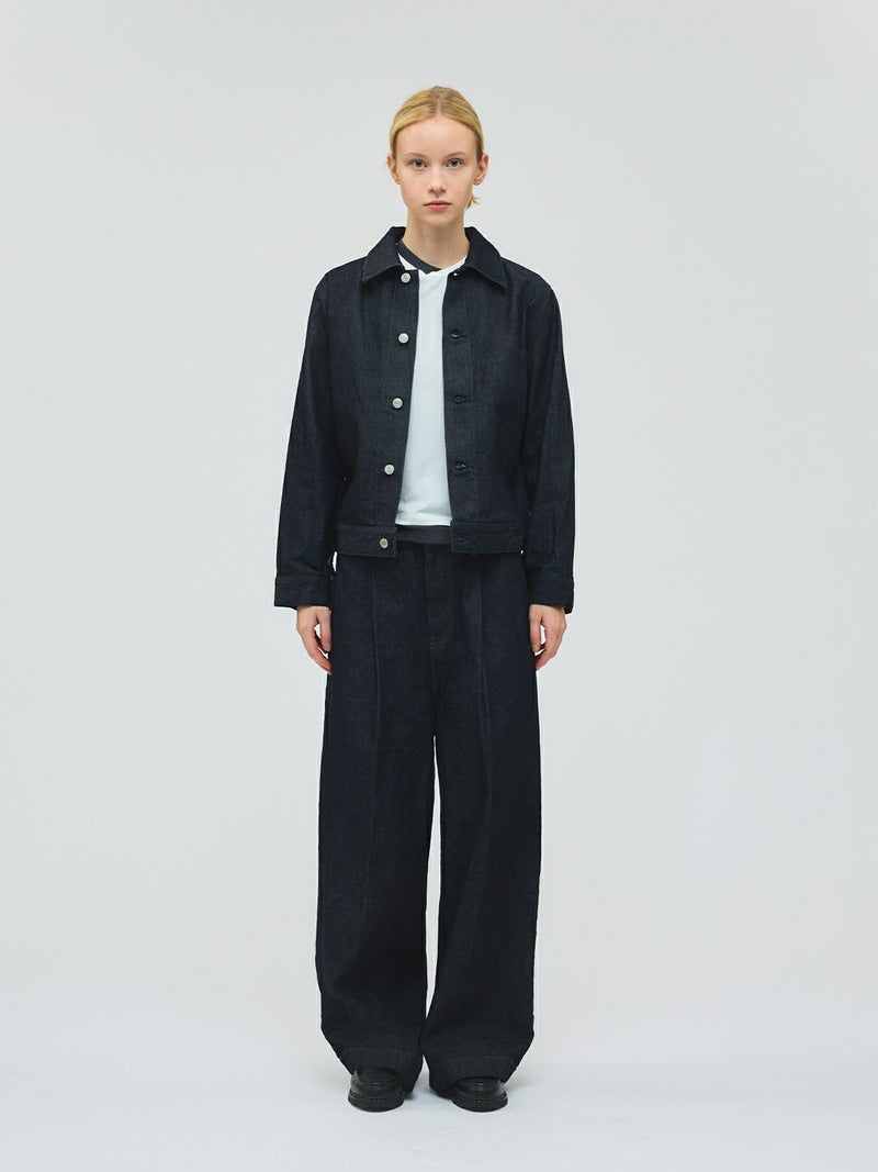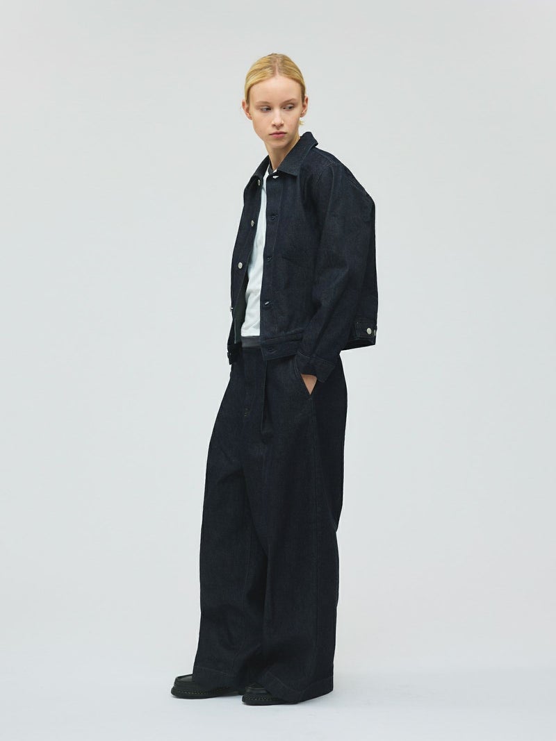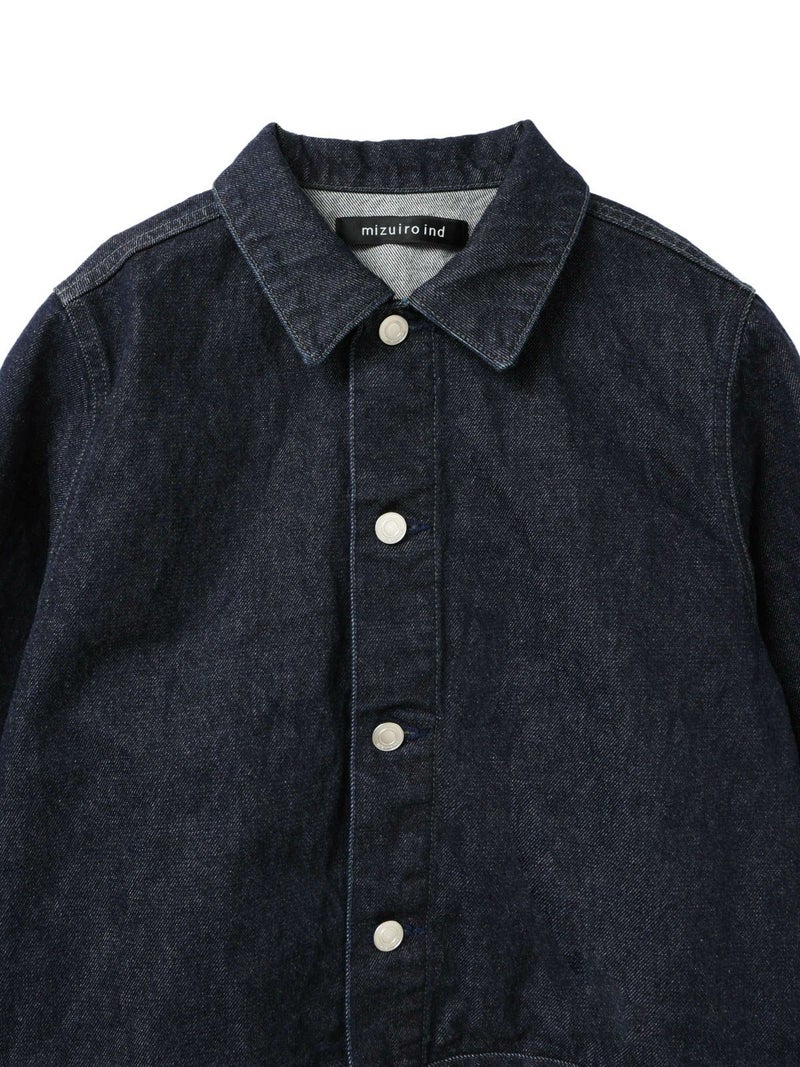 ミニマルなデザインにしっかりとしたデニム生地を使用した、13ozコンパクトデニムジャケット。ボタンにmizuiro indのブランド名が入った拘りの1枚です。ワンウオッシュの1カラー展開。ストレッチはきいていませんが着用していくうちに馴染んできます。カジュアルなデニムもきれいに決まります。セットアップでのコーディネートもお勧めで、同シリーズ1-260087OW/ワイドデニムスラックスも展開。別カラー1-270030DM/コンパクトデニムジャケット(ダメージ)も展開。長く愛用していただけるmizuiro indのデニムジャケットです。