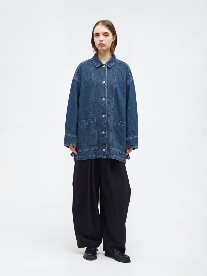 mizuiro ind mizuiro ind ワイドデニムカバーオール(ONEWASH)