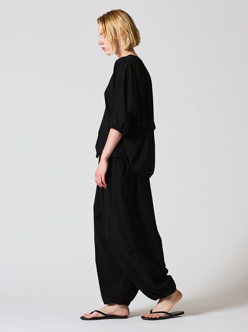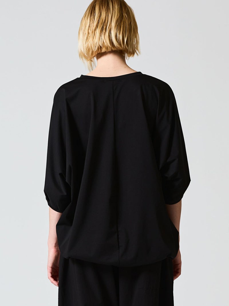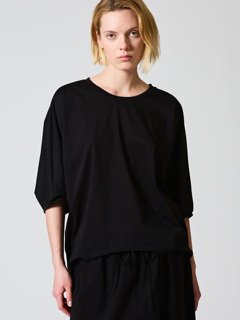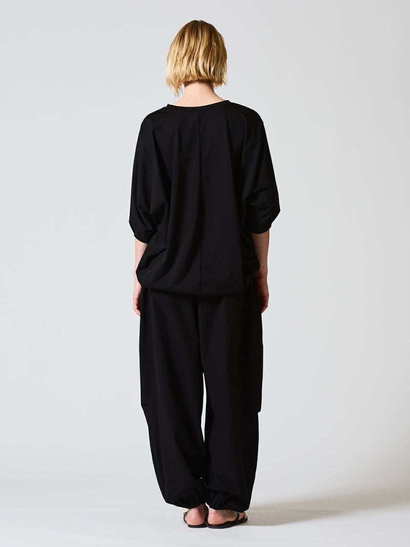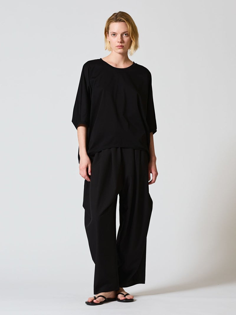 布帛ライクなハイゲージのカットソー、ドルマンコクーンプルオーバーです。裾はタックを入れてバルーンのようなシルエットを表現。透け感のあるシアー感が清楚で上品な雰囲気も。5色の豊富な色展開も魅力的。シンプルにかっこよく着こなせる1枚です。