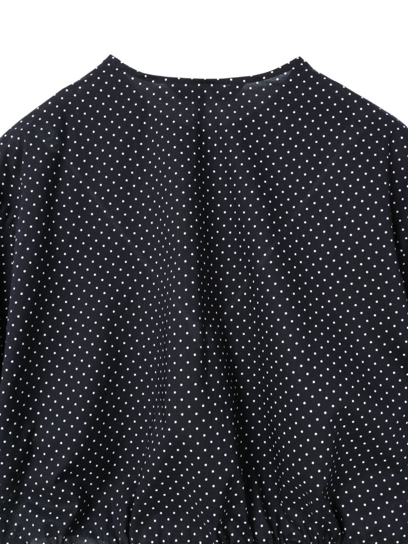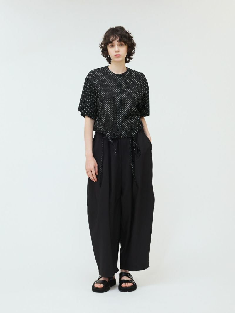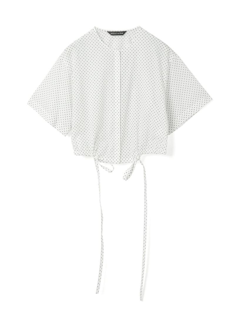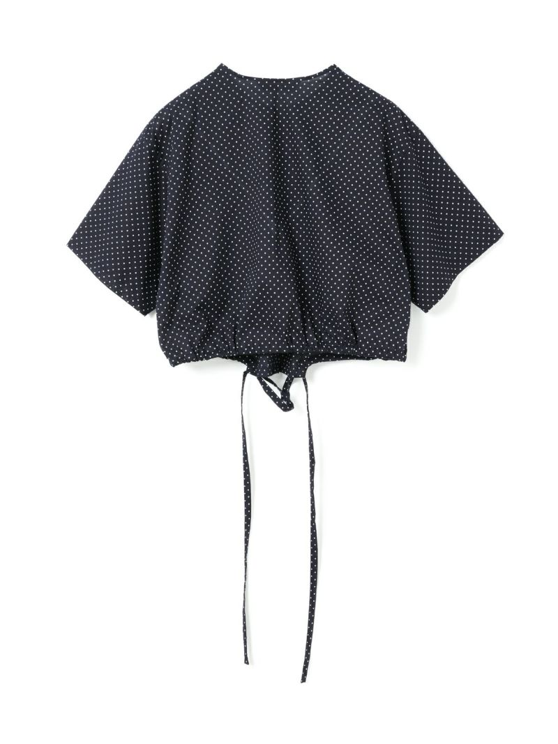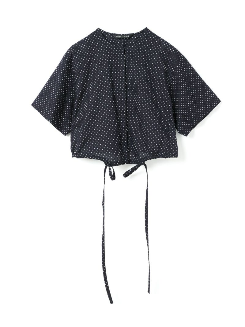 さらりとしてドライな素材感が特徴のドットドローストリングシャツです。2-230089の同型をドット柄生地を使用。シンプルなシャツのデザインに長めに垂らしたウエスト紐がアクセントになった1枚。紐の絞り方で変化をつけ着こなしにアレンジをしていただけるシャツです。ショート丈と比翼仕立てになったフロントのデザインがよりすっきりとした印象に仕上がっています。羽織っても素敵です。暑い季節にさらりとコーディネートしていただけるシャツです。