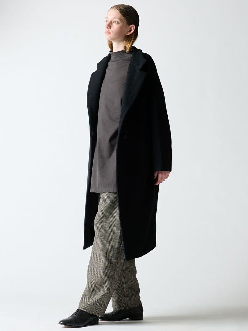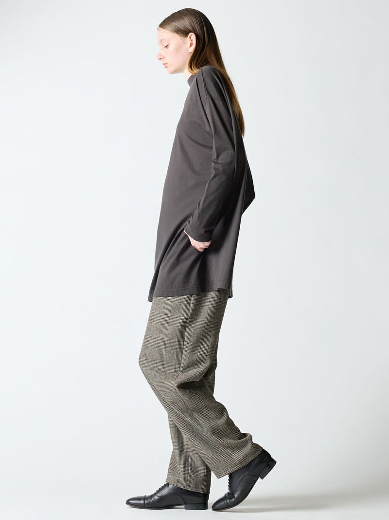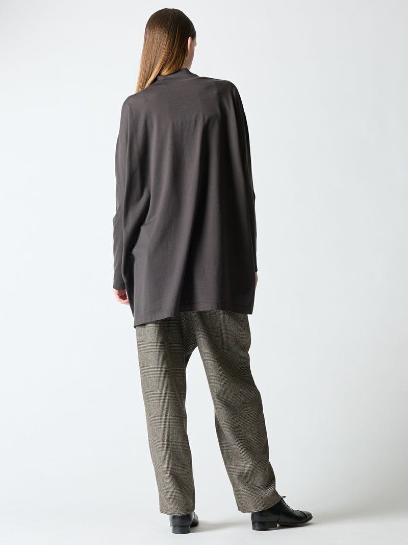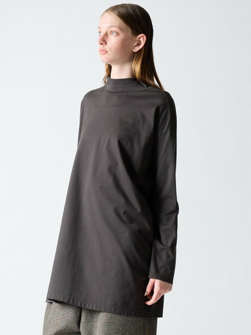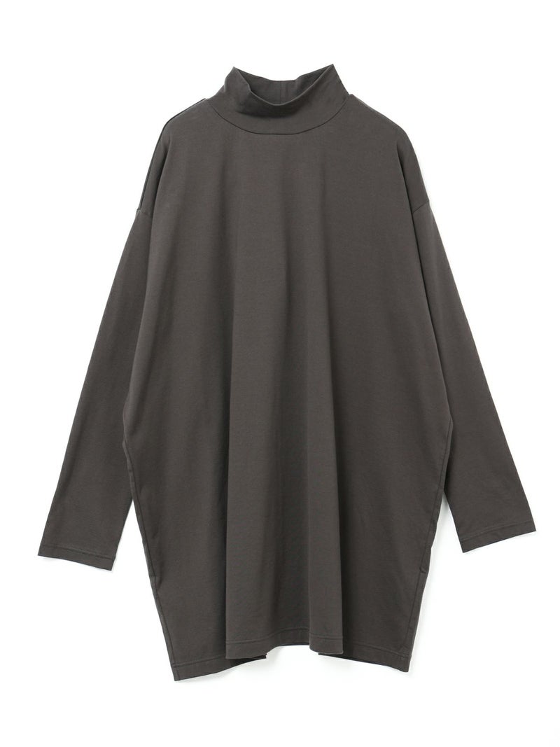 60双天竺のキレイ目素材を使用したハイネックワイドチュニックです。mizuiro ind人気のモックネックワイドシルエットのカットソーでレイヤードしやすいチュニック丈が特徴。ヒップがキレイに隠れる丈感です。インナー使いにもなるサイズ感なのでシンプルに着こなせます。5色の豊富なカラー展開の着回し抜群のアイテムです。