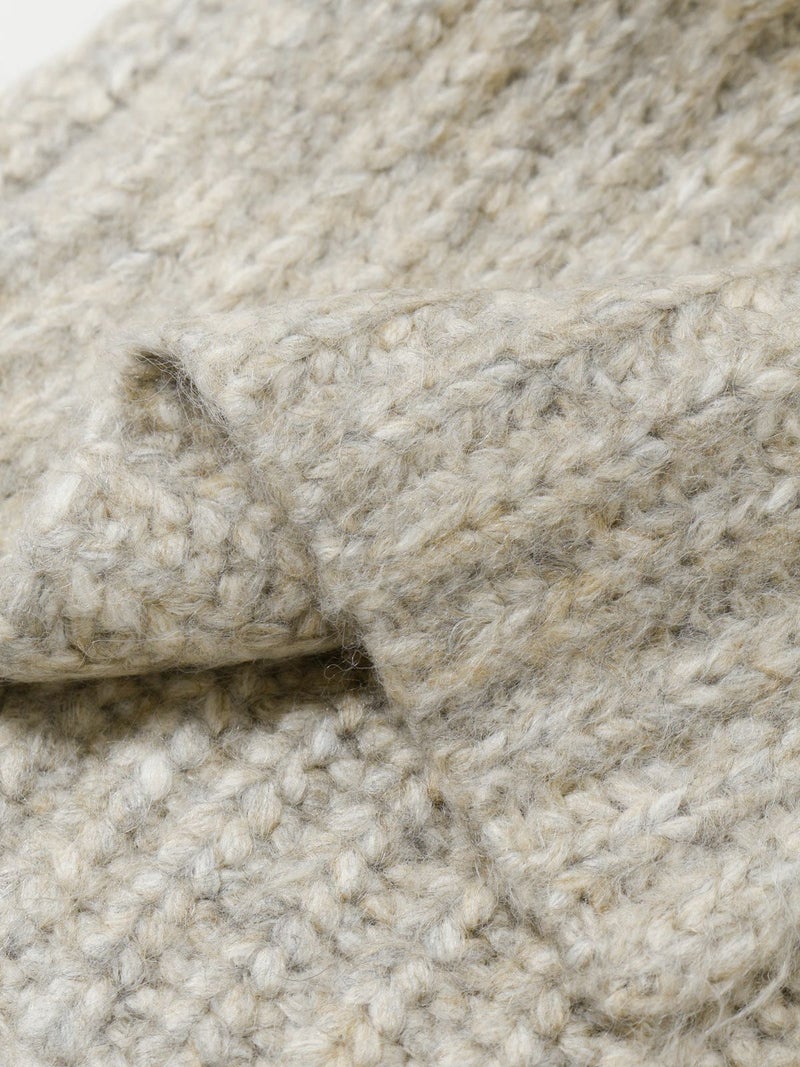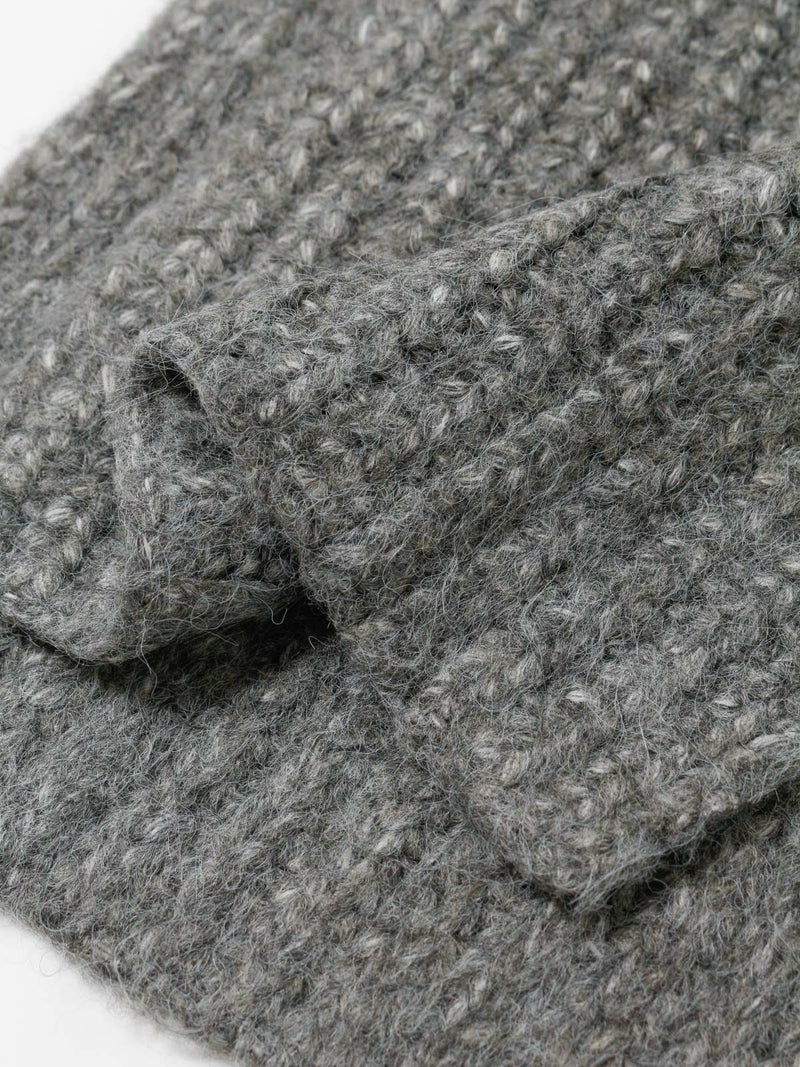 畦編みの凹凸感が特長のロングマフラーです。広幅でボリューム感を演出した大変暖かなアイテムです。アクリル素材を多く使用しているのでチクチク感はなくふんわりと首を覆ってくれる着心地のよい1枚。ロング丈にデザインした伸縮性のあるマフラーなのであえて長く垂らしてかっこよくコーディネートができるのもポイント。優しい色合いのベーシックな大人の雰囲気を表現したシックな着こなしに自然に馴染んでくれるマフラーです。
