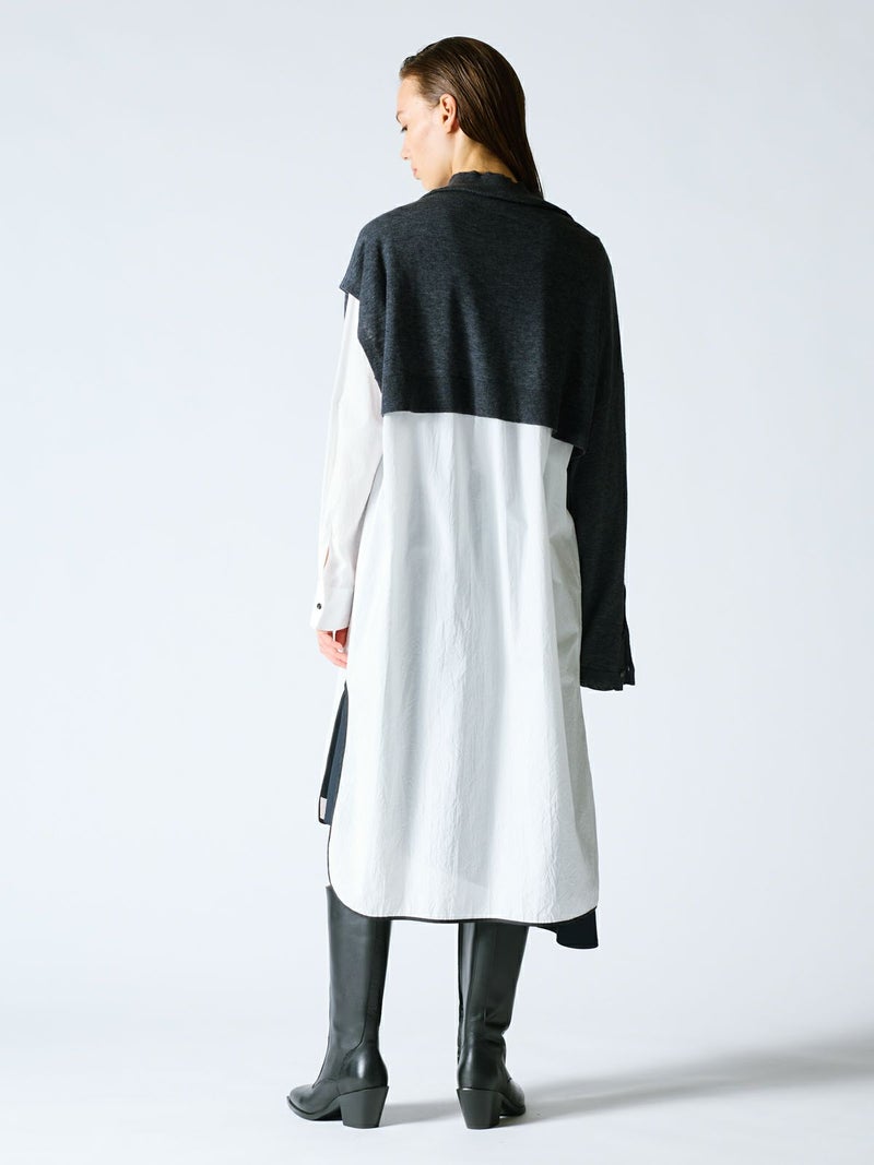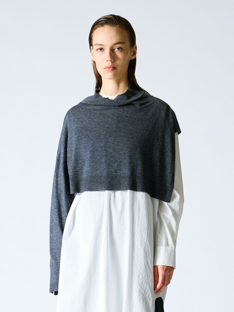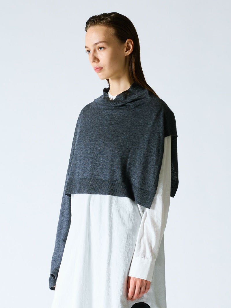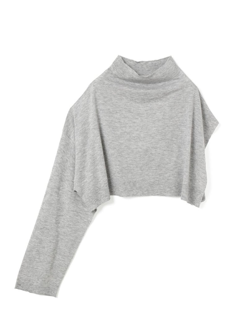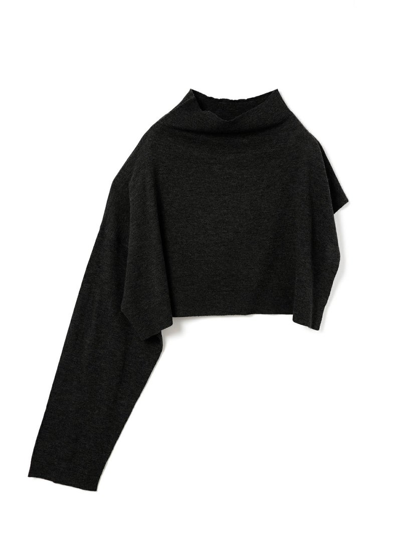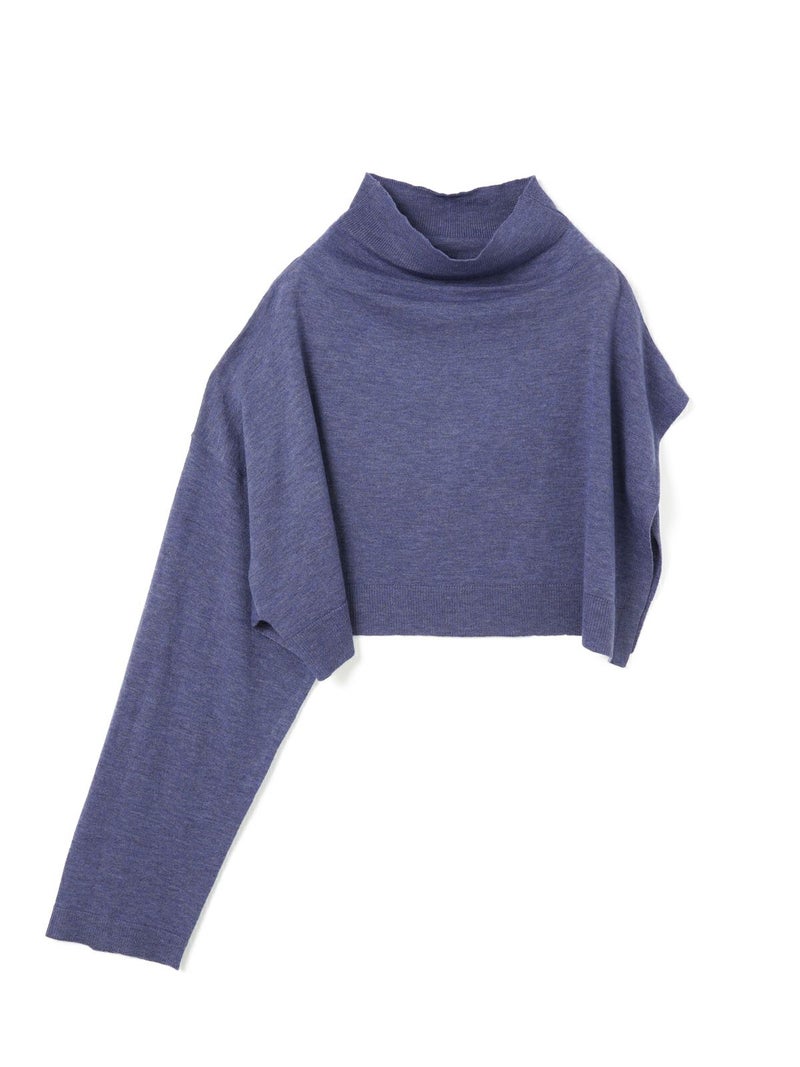 mizuiro indのアシンメトリーをデザインしたアシンメトリースリーブプルオーバーです。左袖のないポンチョのデザインと右長袖のモード感溢れるレイヤードにお勧めの1枚。袖にボタンが2つ付いておりインナーをのぞかせてレイヤードのポイントに。首元のハイネックはクタッと感を表現。シャツやタートル、ワンピースに合わせるだけでワンランク上の着こなしを演出。すっきりとした短めの丈なので小柄な方にもバランスよく着ていただけます。厚手過ぎないので重ね着しやすく、気軽にお洒落を楽しめるアイテムです。