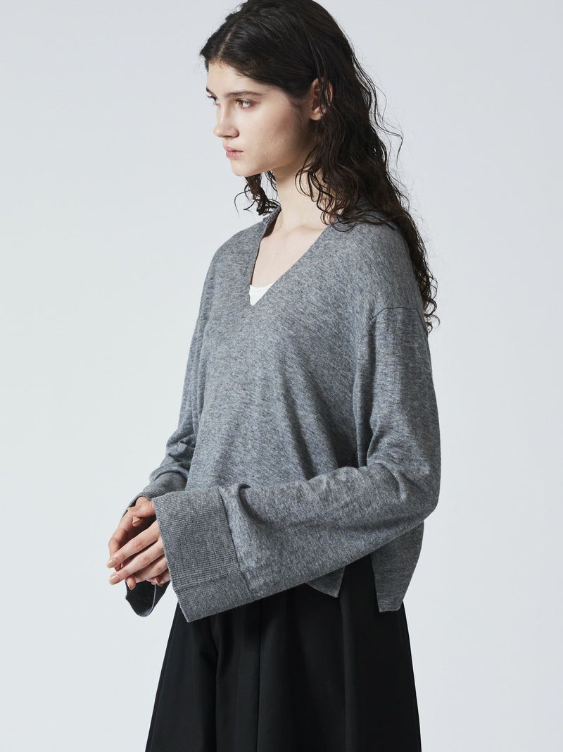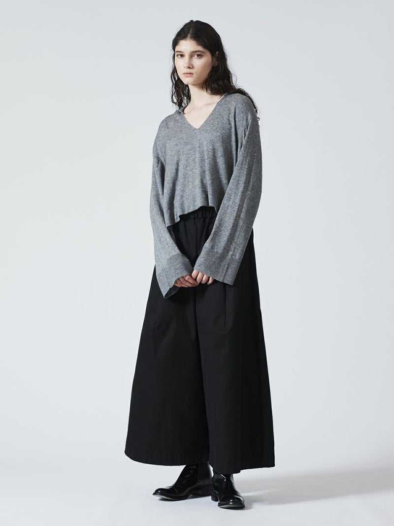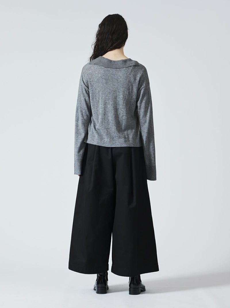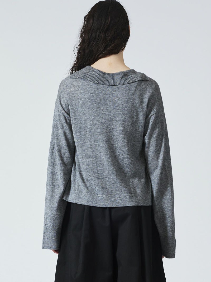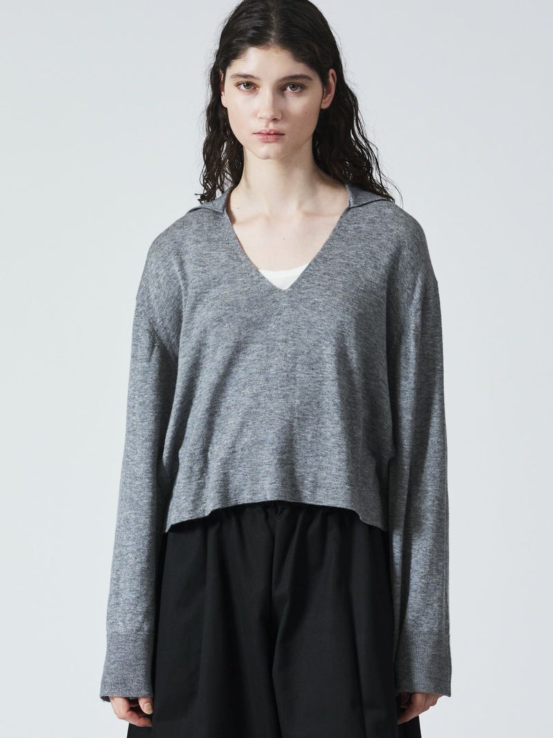 ハイゲージシリーズ、スキッパープルオーバーです。首元が大きく開いたスキッパーニットに襟が付いた清楚でベーシックなデザインが印象的。タートルを入れても首回りの重ね着がアクセントに。襟と袖口はリブ仕上げ。袖幅は広く袖口を折り返しても素敵です。サイドスリットが深く入っているので重ね着に最適。身幅もありインナー見せのできるベーシックなニットアイテムです。