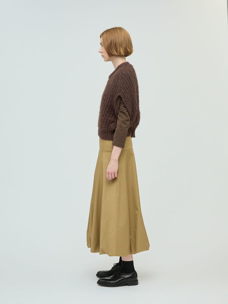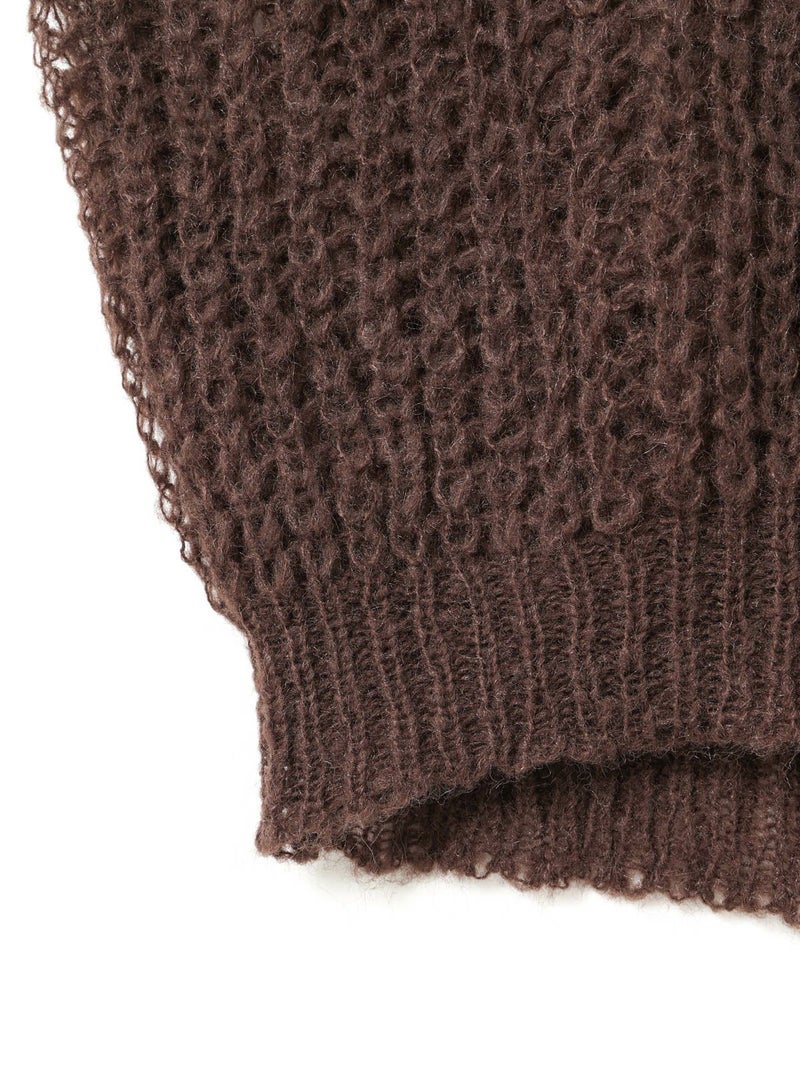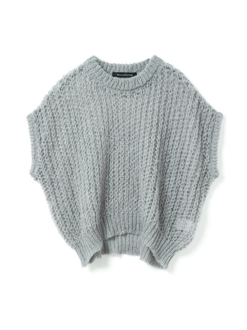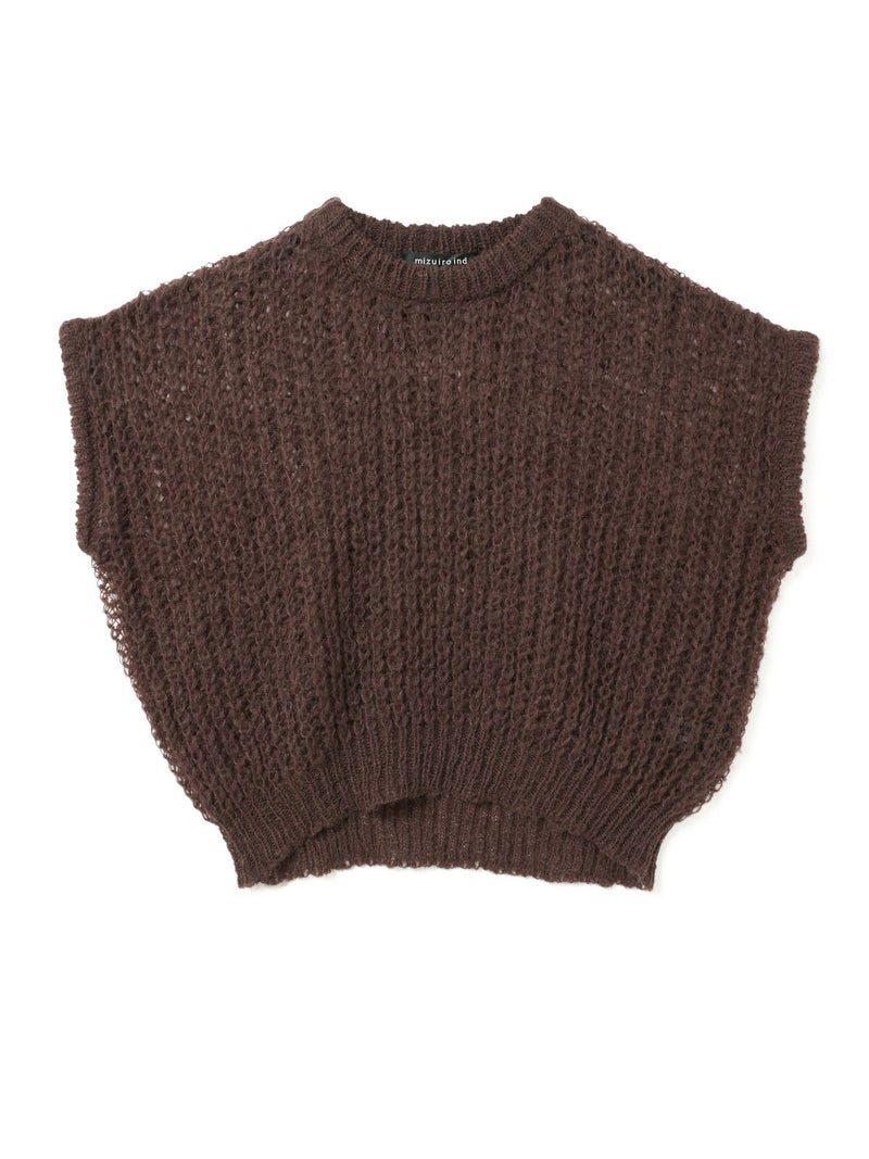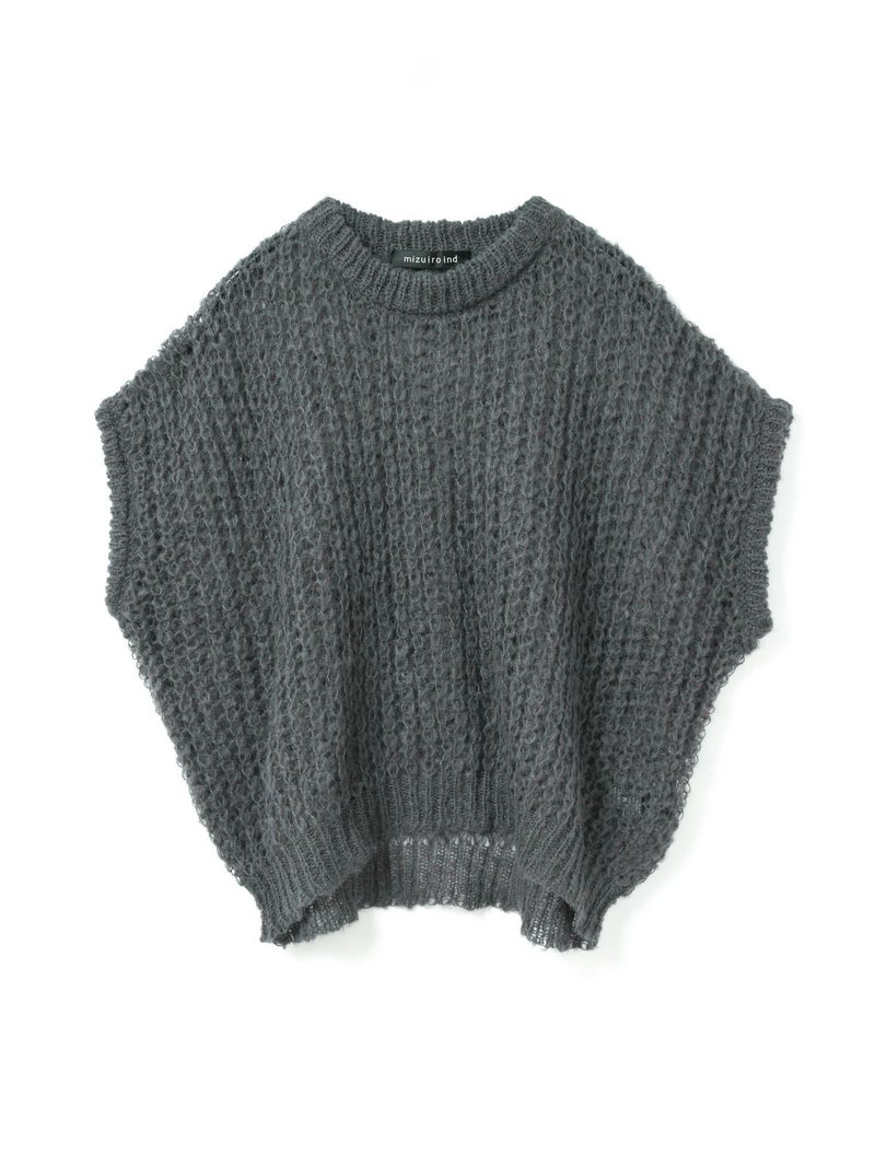 甘撚りのモヘヤ糸でふっくらと編立たヘアリーコクーンワイドベストです。ポリエステル生地を使用したウールライクな1枚。今季mizuiro ind人気のアイテムになりそうなコクーンシルエットのベストアイテムで、モードな雰囲気も演出します。編み方が大き目なので透け感があり重ね着を楽しんでいただけます。お洗濯可能なのもポイントです。