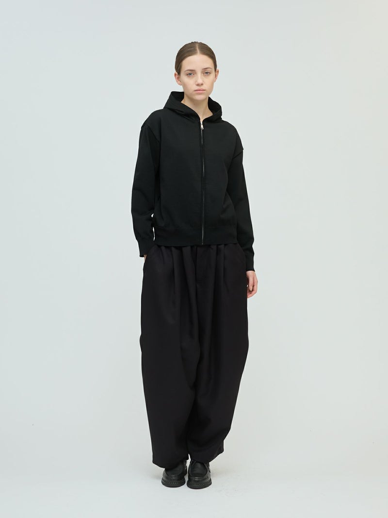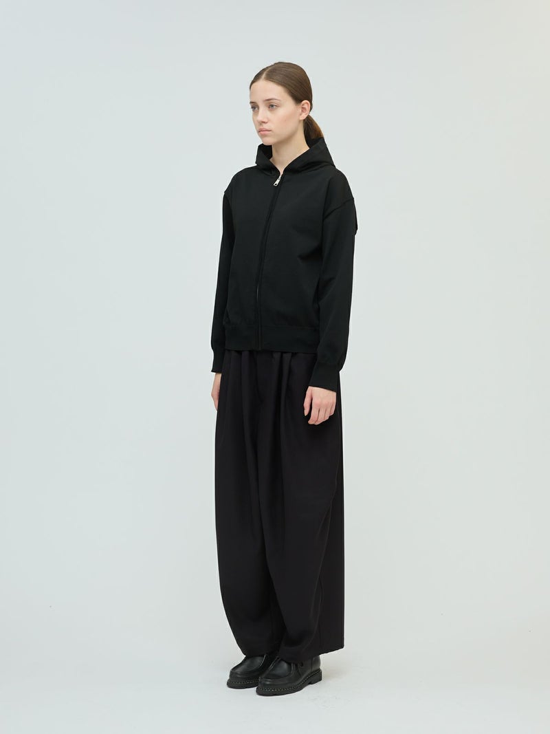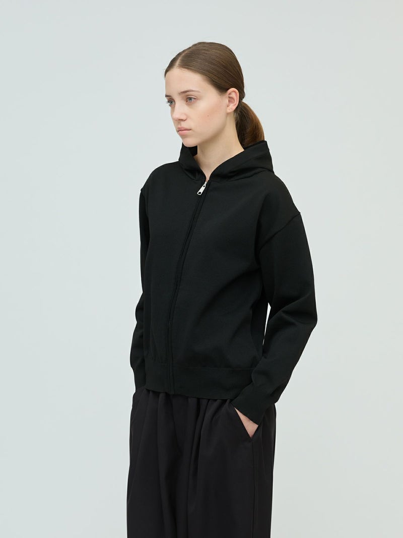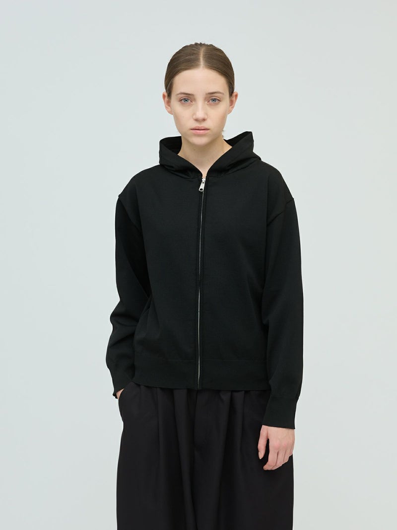 季節の変わり目に大変重宝するジップフードニットプルオーバーです。フード付きのカジュアルなデザインが特徴。大きすぎないサイズ感でヒップ上の丈感仕上げ。ジップアップのベーシックなデザインで上からコートを羽織ってもOK。mizuiro ind人気の型で長く着用していただける1枚です。ストレッチが効いていて着心地よくカットソーのように気軽に着られて上品に見えます。シワになりにくく洗濯可能なのでデイリーで使いやすい素材です。3-220122/クルーネックワイドプルオーバーもシリーズ展開。
