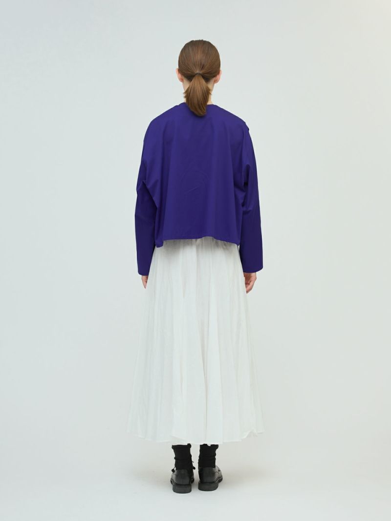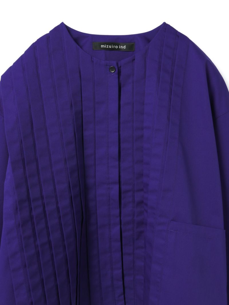ハリとコシのある生地を使用したクルーネックピンタックシャツです。ワークなスタイルとピンタックをMIXしたデザインが印象的。シャツジャケットとしても使用可能。フロントに施したピンタックはアシンメトリーになっており左ポケットが付いています。フロントボタンは比翼仕立てでピンタックを邪魔しないデザインもポイントです。同シリーズ3-250070/クルーネックピンタックワンピースも展開中。