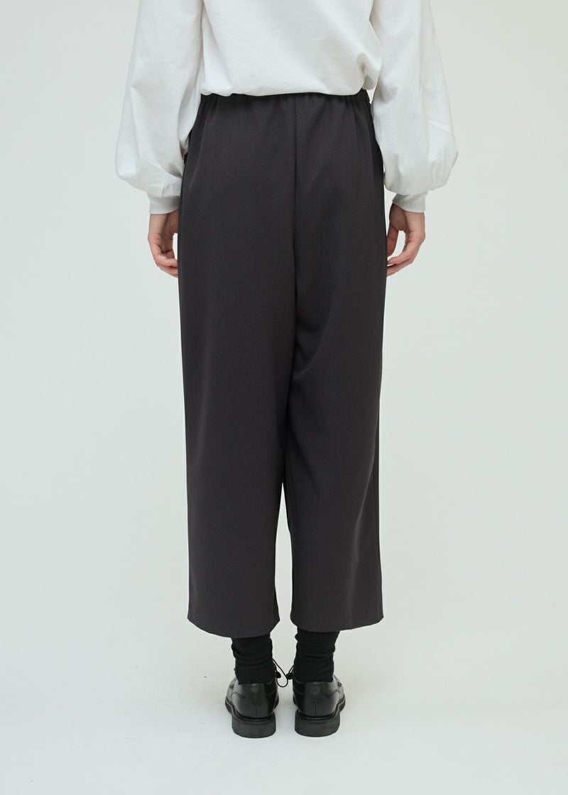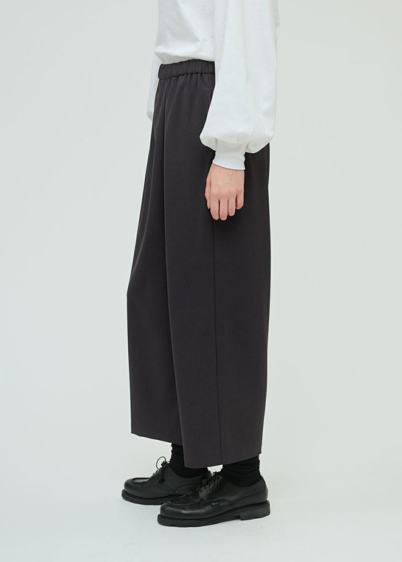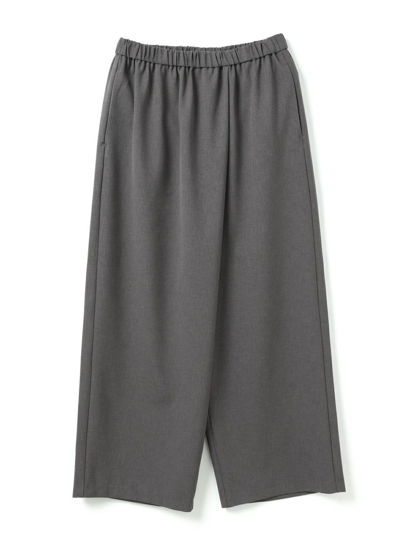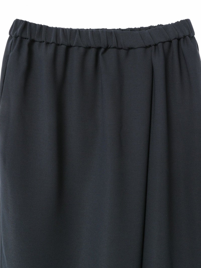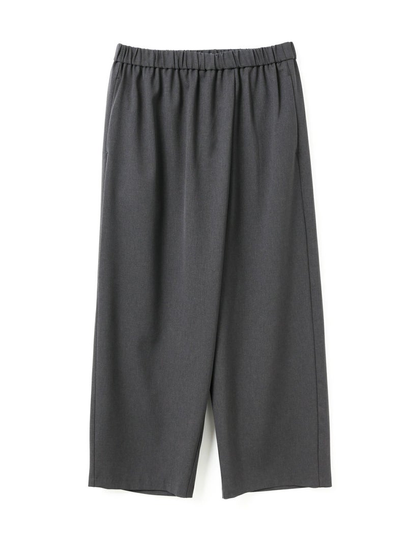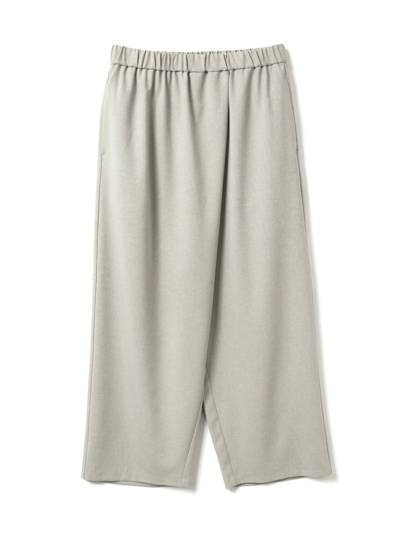 ウールライクな質感で、秋冬商品にもコーディネートしやすいラップライクイージーパンツです。巻きスカートタイプのモードなパンツアイテムでフルレングスのシルエットを表現。ほどよく広いパンツ幅になっておりサラッとした生地感で上品な雰囲気も演出。ウエストはリラックス感のあるゴム使用。3-230103/テーラードシャツジャケットとのセットアップもお勧めです。