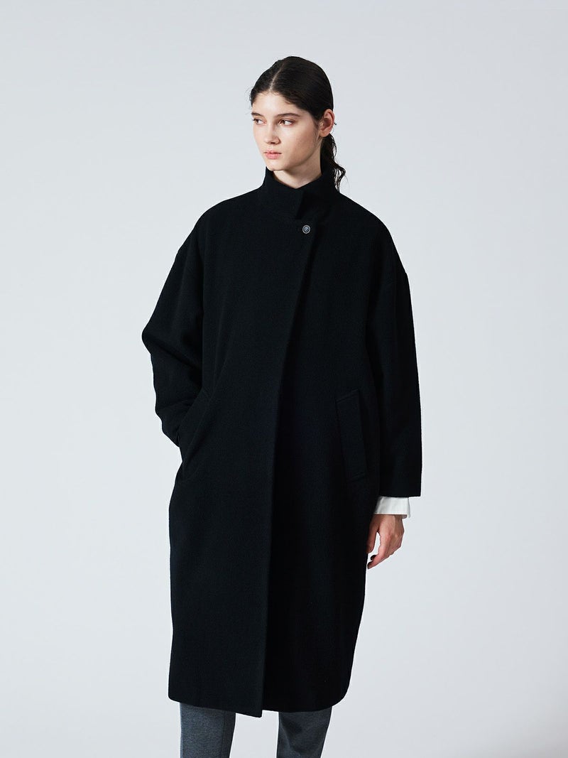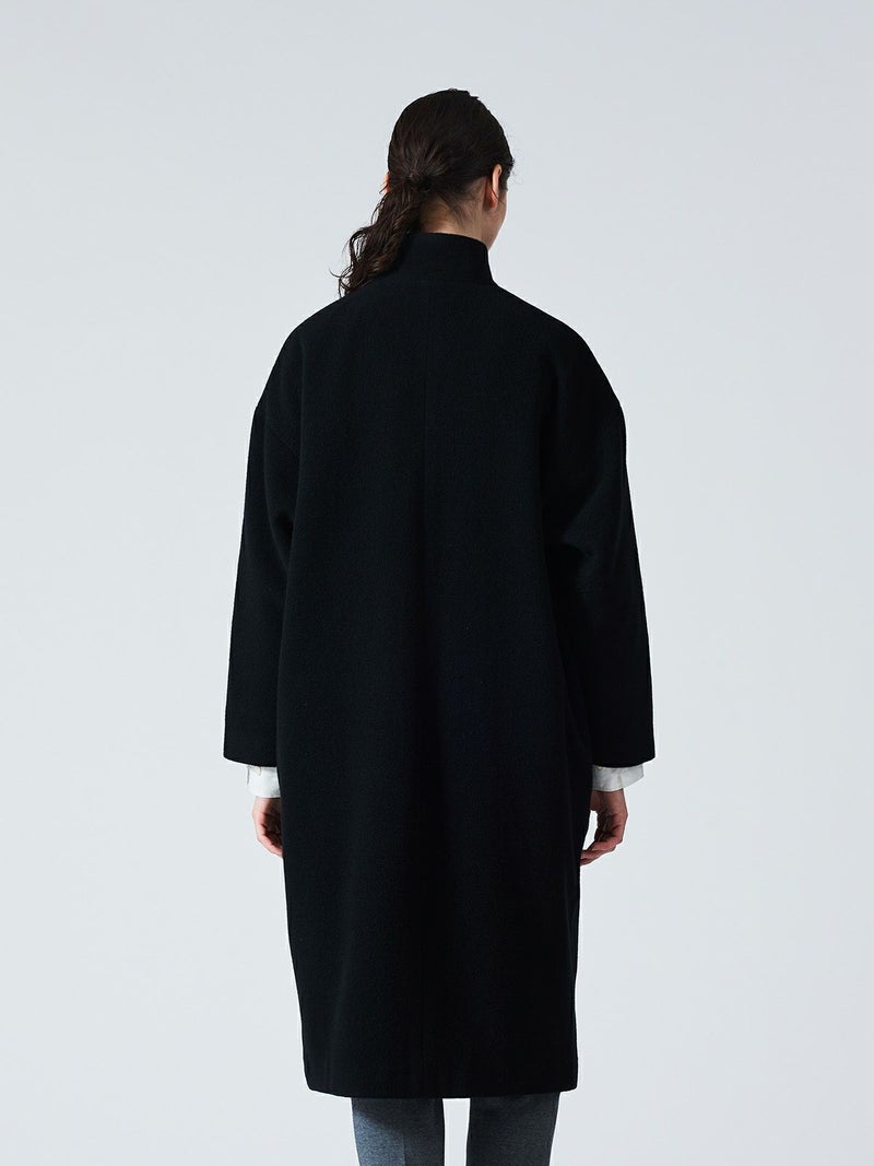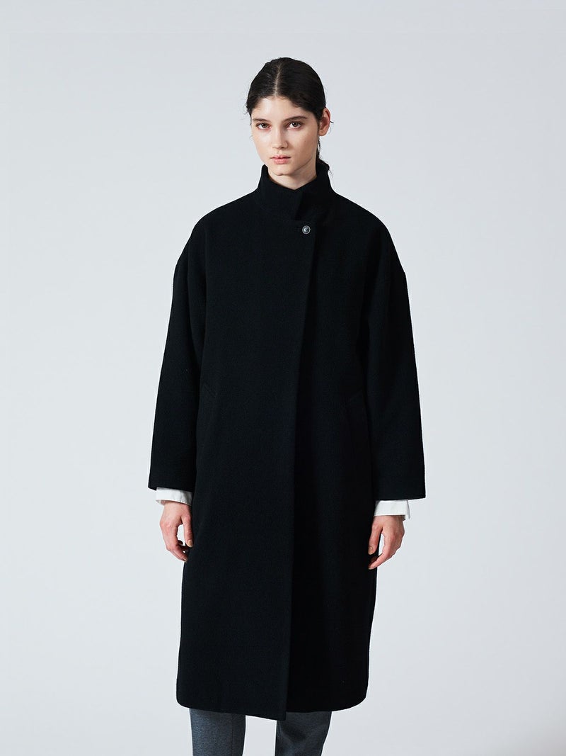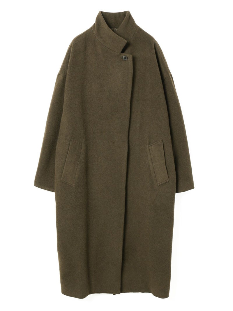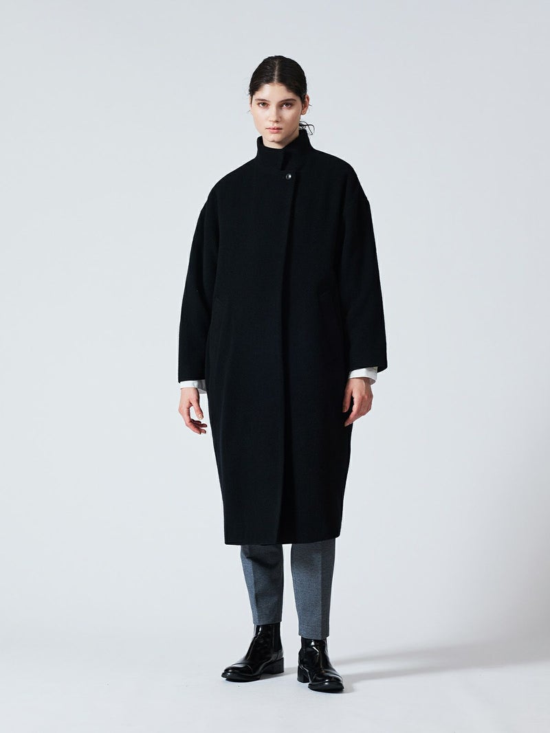 mizuiro ind人気のウールブレンドスタンドカラーコートが再入荷しました。首を温かく覆ってくれるハイネックが特徴。膝下ほどの丈感でスタンダードなシルエットが魅力的なコートです。隠れボタンのデザインなのでワントーンのすっきりとしたデザインが大人の雰囲気を印象付けます。ベーシックな5色のカラー展開なのでどのカラーも長く愛用していただける1枚になっています。
