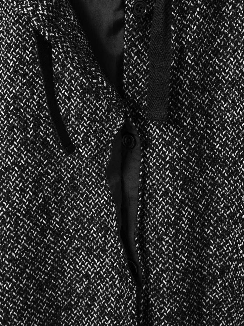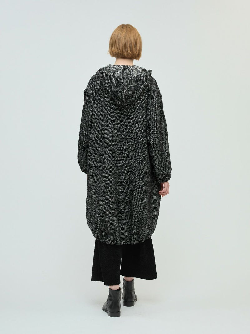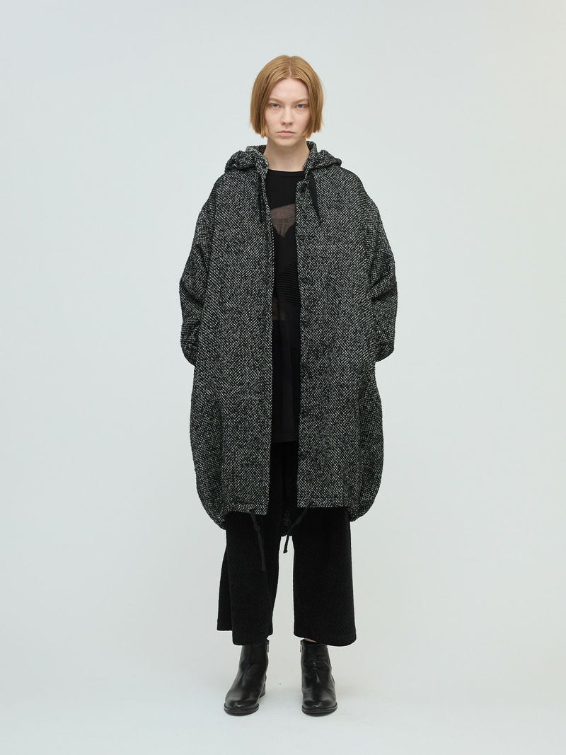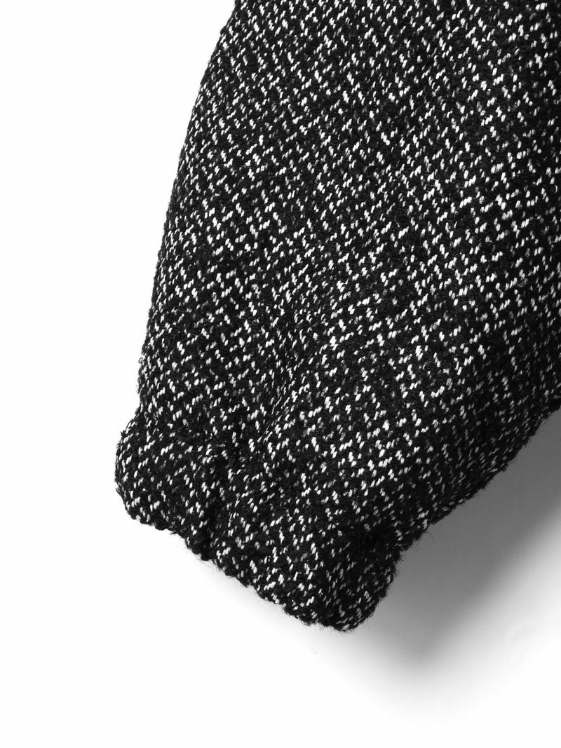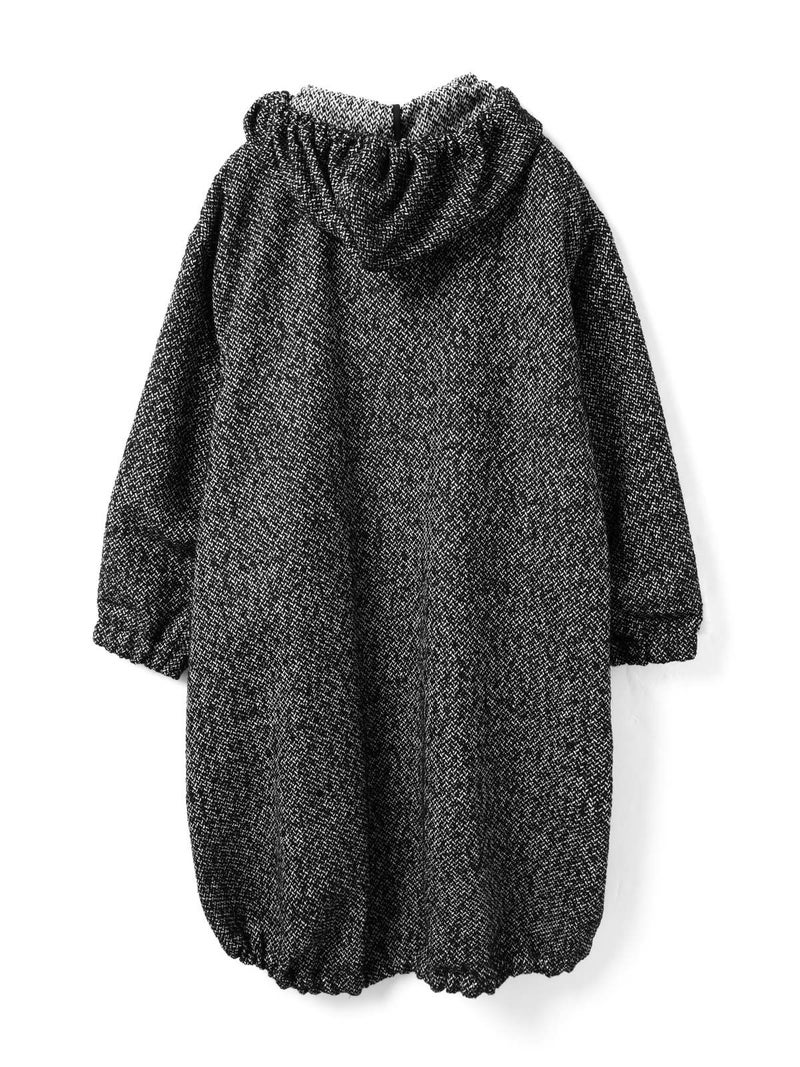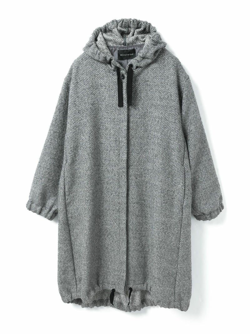 M51をベースにデザインしたモッズコートのフード付きウールブレンドフードコート。クラシカルな柄素材でワーク感を表現したMIXスタイルが新鮮な1枚です。比翼仕立てのボタン仕様で裾に絞り紐を付けたデザイン。裾を絞ることで全体のシルエットにアレンジがきいて素敵です。袖口はゴム使用。蓋付ポケットが付いています。長めの膝下丈なので温かく身を包んでくれます。