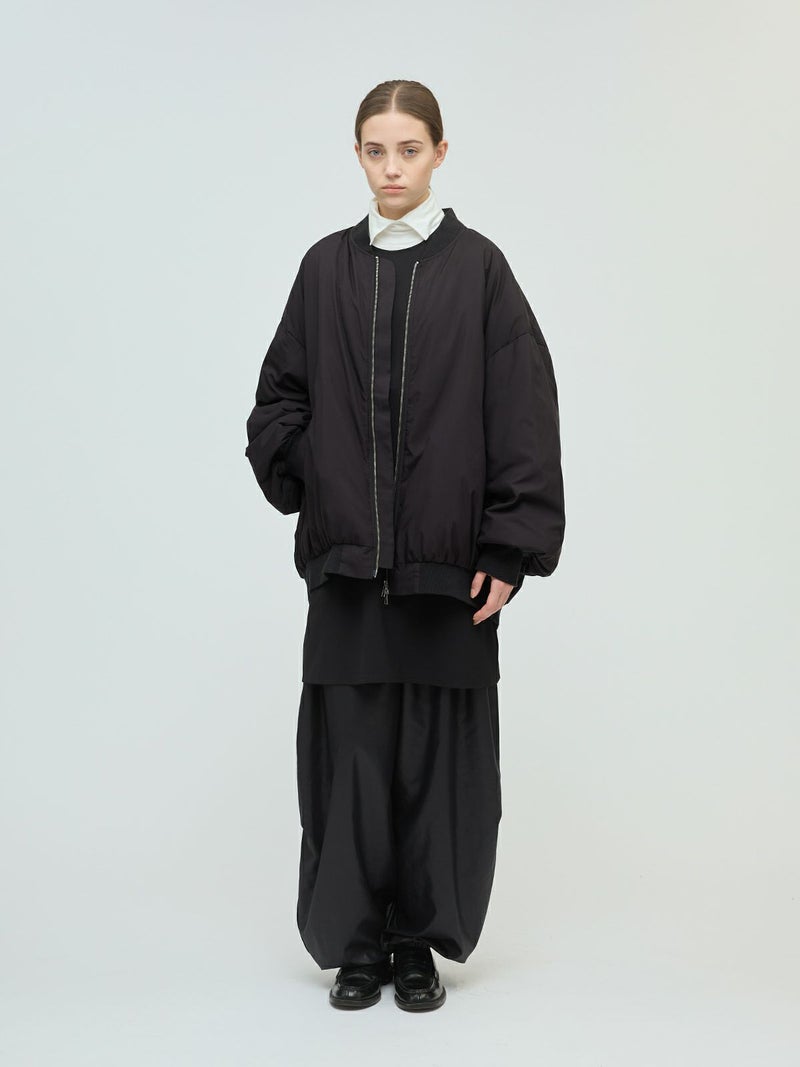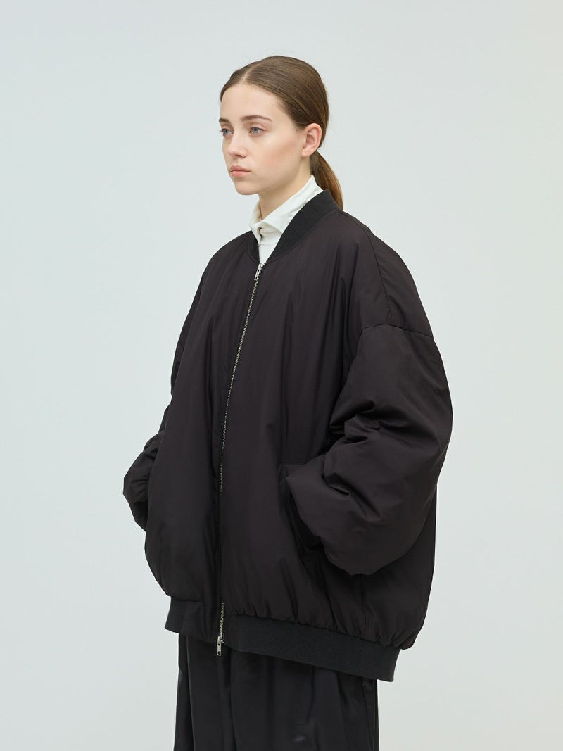mizuiro ind人気のアウターが今季も再入荷いたします。昨年とはカラー展開を変更しライトグレーを取り入れた新鮮な1枚になっています。ビッグシルエットでメンズライクに着用できるワイドジップダウンブルゾンは、多様なアイテムとのコーディネートが決まるアウターです。裾と袖のリブをしっかりめの仕様に仕上げておりファスナーはW開き。ヒップの隠れる丈感で前後差を付けており、丸みのあるバックシルエットを表現。ワイドなサイズ感なので中にも着こめるのもポイント。軽さがあり着やすさはもちろん、気軽に着用でき長く愛用できるアウターです。
