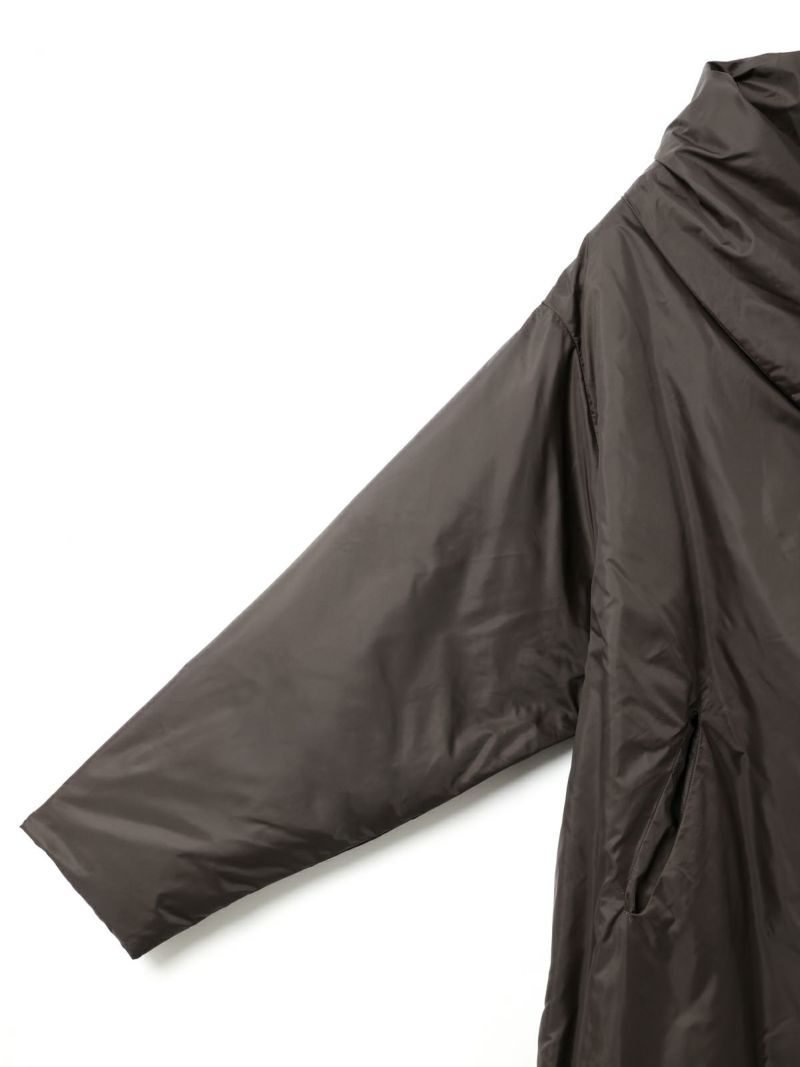 mizuiro indの定番となった人気のドレープライトダウンコートがアップグレードして再登場。ポケットがフロント仕様からサイドタイプに変わり、着膨れ感なくすっきり着用していただけるシルエットに仕上げました。マットなウォーム感のある光沢とタッチ、軽さと暖かさを兼ね備えたシックな雰囲気が印象的で、色々なコーディネートによく合う1枚。スナップボタンなので悴んだ指先でも留めやすい仕様になっています。マフラー無しでも首元を暖かく覆ってくれるかっこいいデザインが特徴。寒い冬の季節に暖かく身を包んでくれるmizuiro indおすすめの1枚です。今季はシックなチャコールグレーとブラックの2色展開です。
