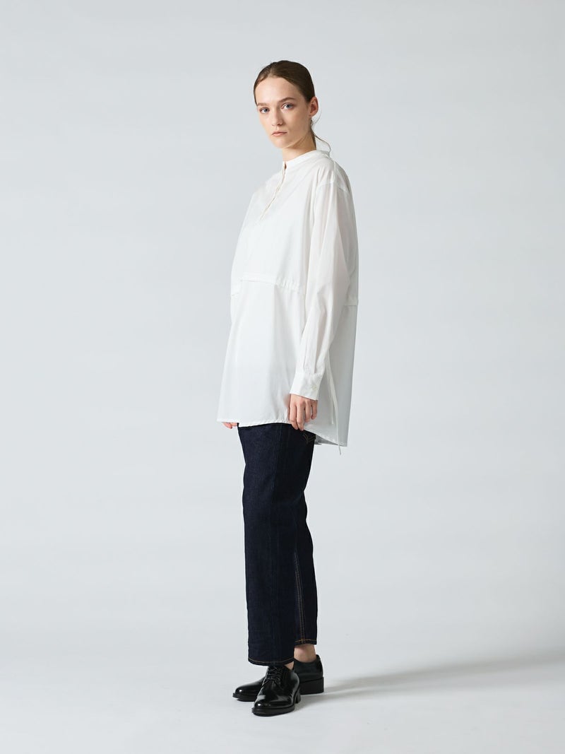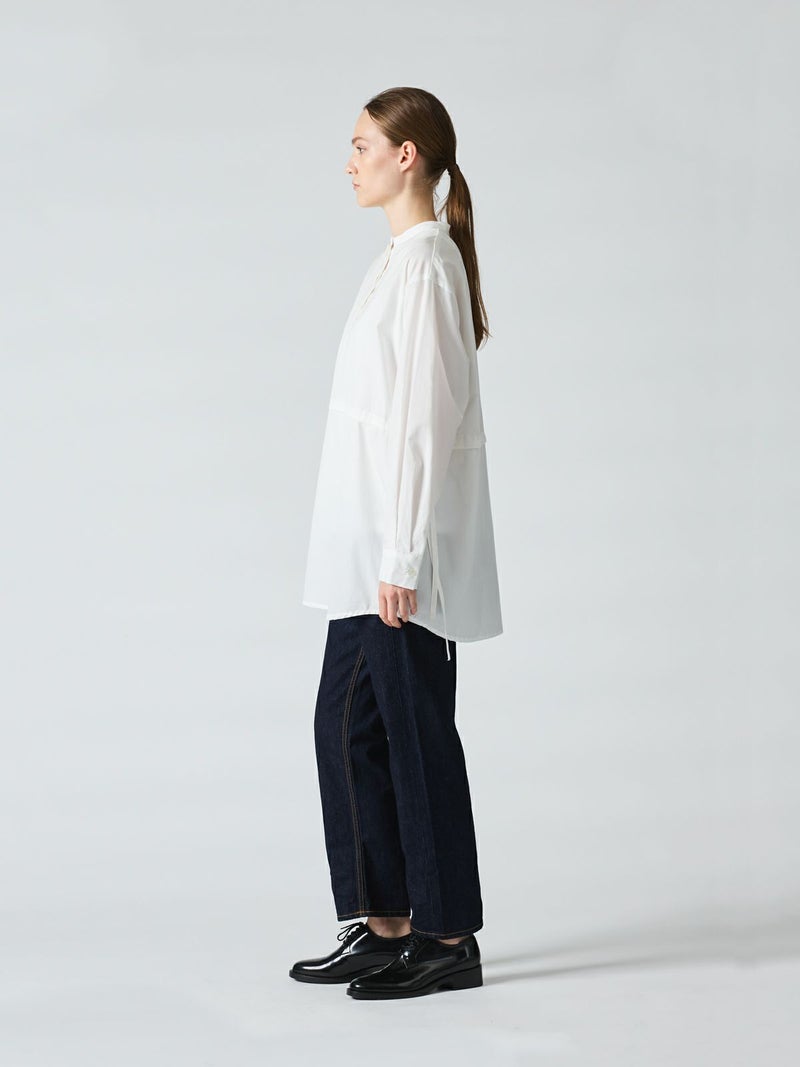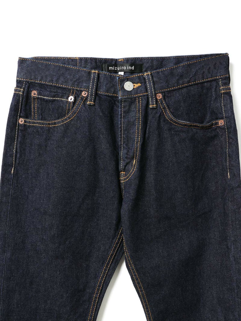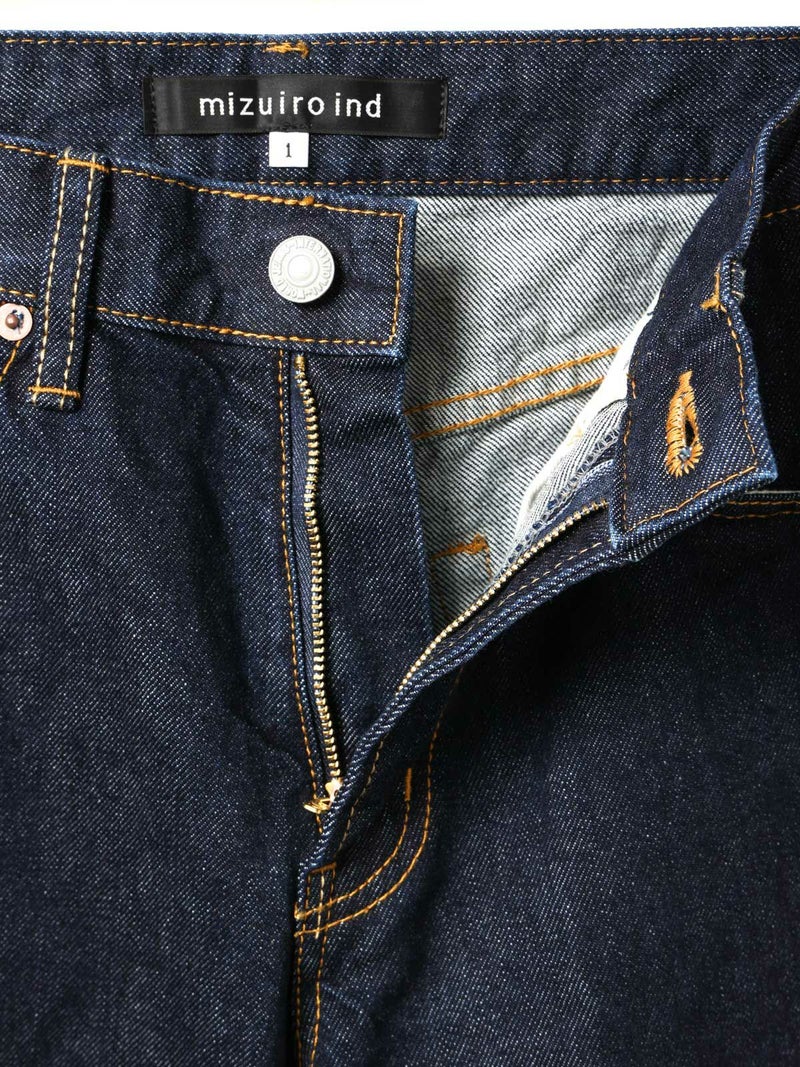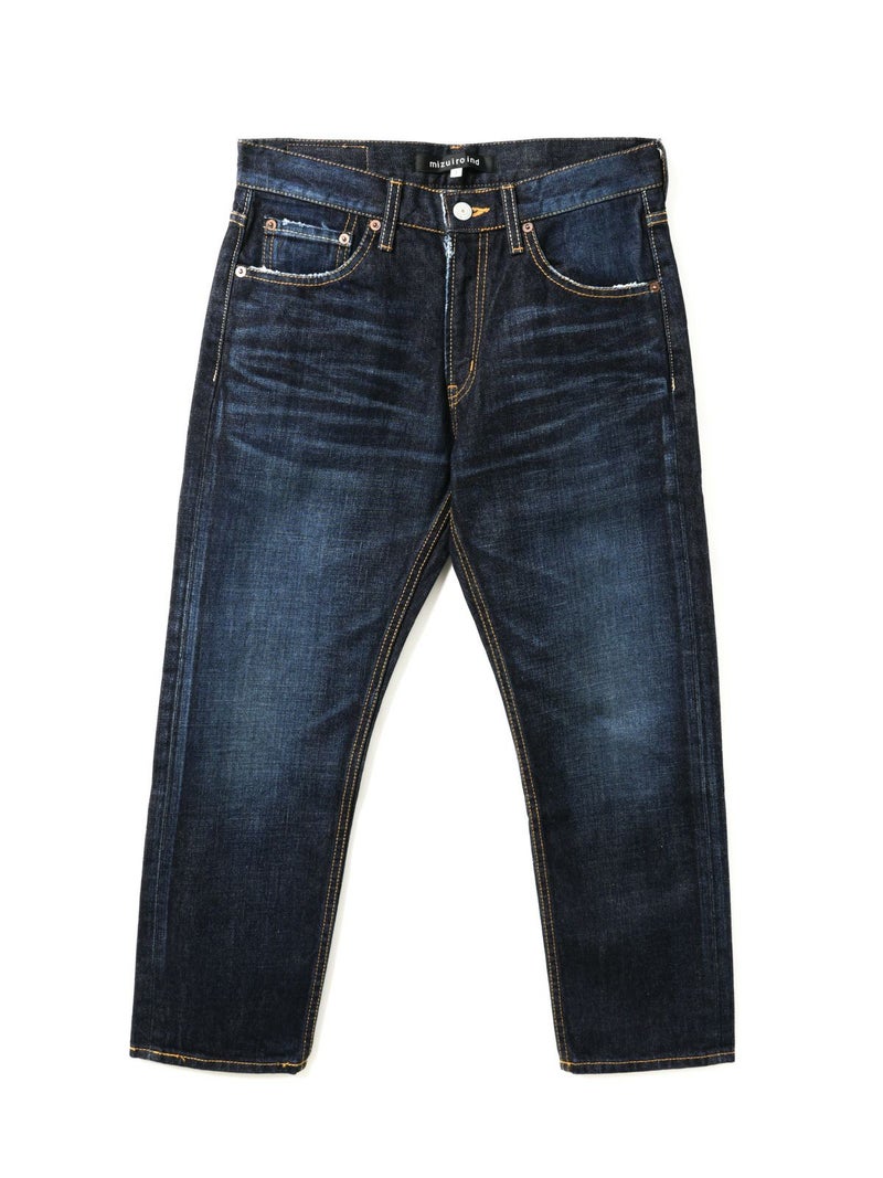 mizuiro ind定番の4/5丈のボーイフレンドデニム。絶妙なテイパードのシルエットは、カジュアルにもキレイめにも着こなしやすく、穿くと脚とヒップをきれいに見せてくれる優秀な一本。8分丈のスッキリとした丈感で足元のお洒落も楽しめるシルエットです。ストレッチは効いておりませんが穿いていくたびに生地が馴染んで穿きやすさを体感できるのもポイント。レイヤードアイテムとしてベーシックにコーディネートができます。裾をロールアップして穿くのもオススメ。ベルト使いが可能で大人のカッコ良さを演出できるデニムです。