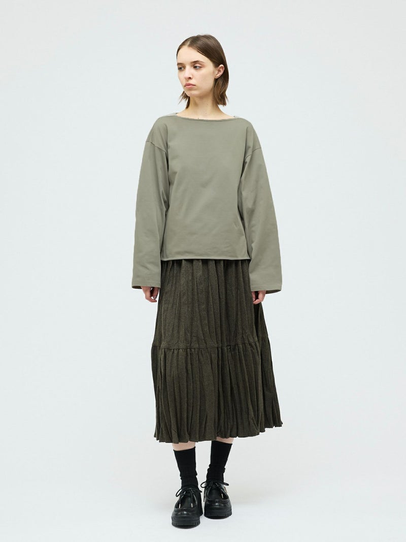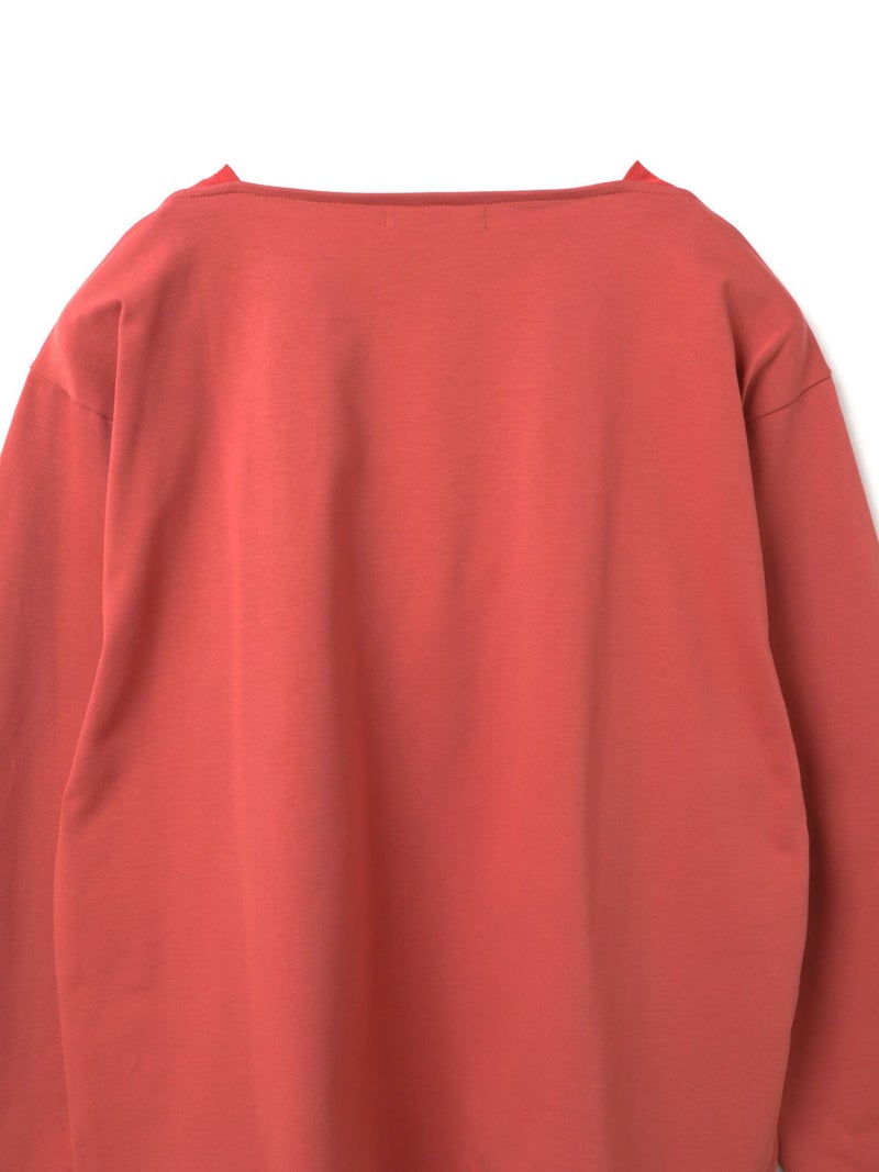 ドライタッチでやや肉感のある素材が特徴のバスクシャツです。カットソー定番のデザインアイテムで、すっきりとしたボートネックの首元、シンプルかつベーシックなスタイルを表現できる1枚です。若干の前後差を付け、サイドスリットが入った軽やかなデザイン。ニットやシャツを重ねた着こなしにお勧めで、春を待たずに着用でき、なおかつ春にはシンプルに1枚で着回しアイテムとして重宝していただけます。5色の豊富な色展開の中にピンクの差し色がアクセントになっています。