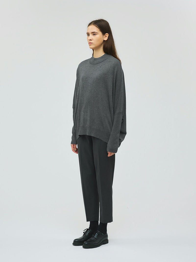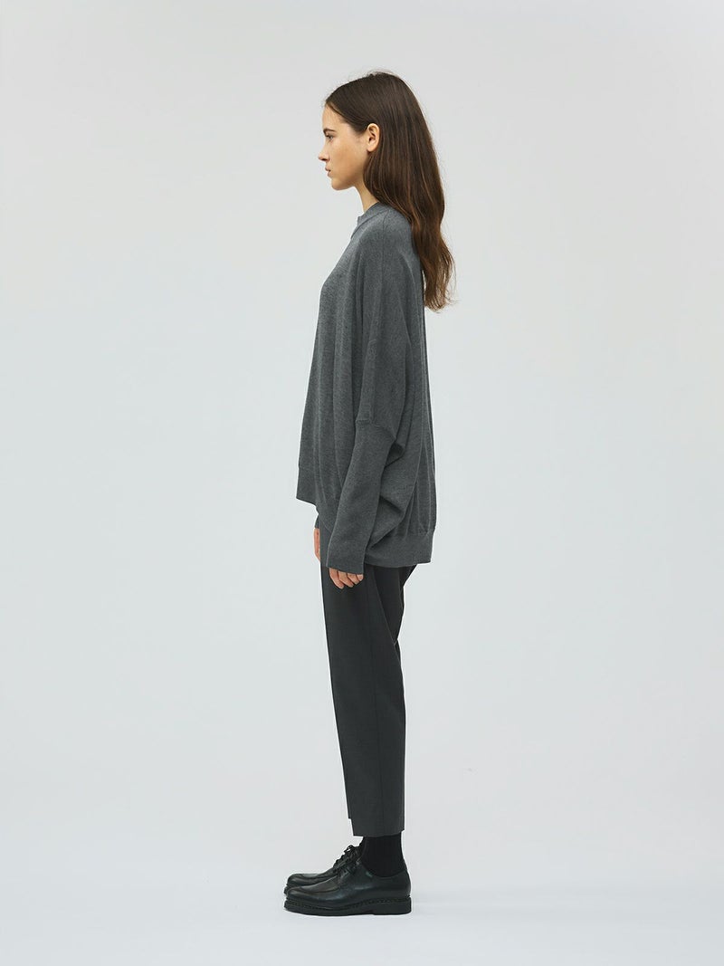 袖のリブが肘まであり、袖丈でニュアンスを遊べるコクーンリブスリーブプルオーバーです。シンプルで動きのあるデザインニットでとても雰囲気のある1枚です。ヒップの隠れる丈感でザックリとボトムにコーディネートするだけでかっこよく決まります。3色のカラー展開も落ち着いた色使いなので、大人のニットコーデを演出してくれます。今季新鮮なデザインのニットアイテムです。