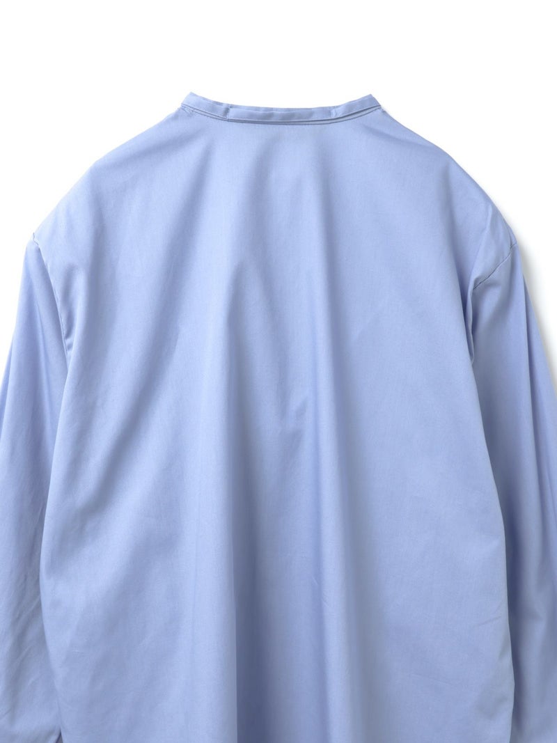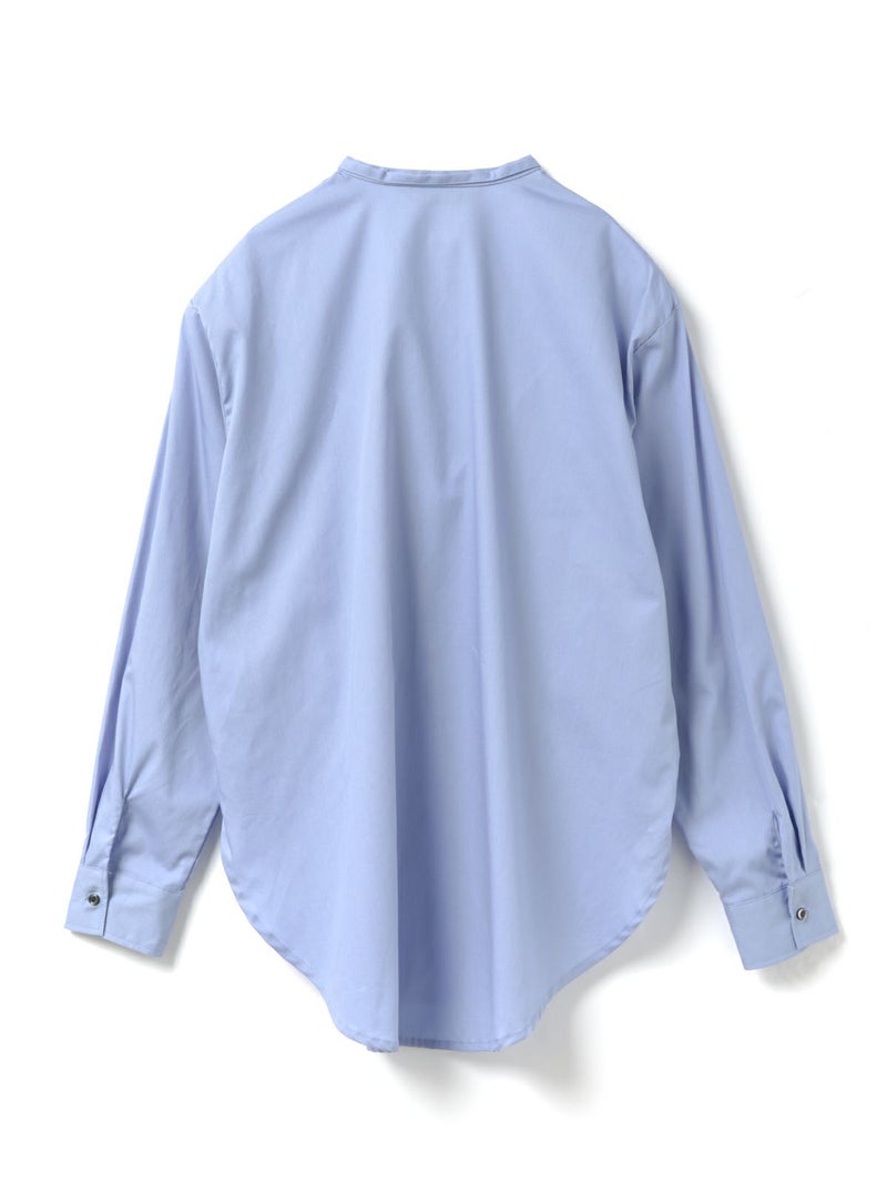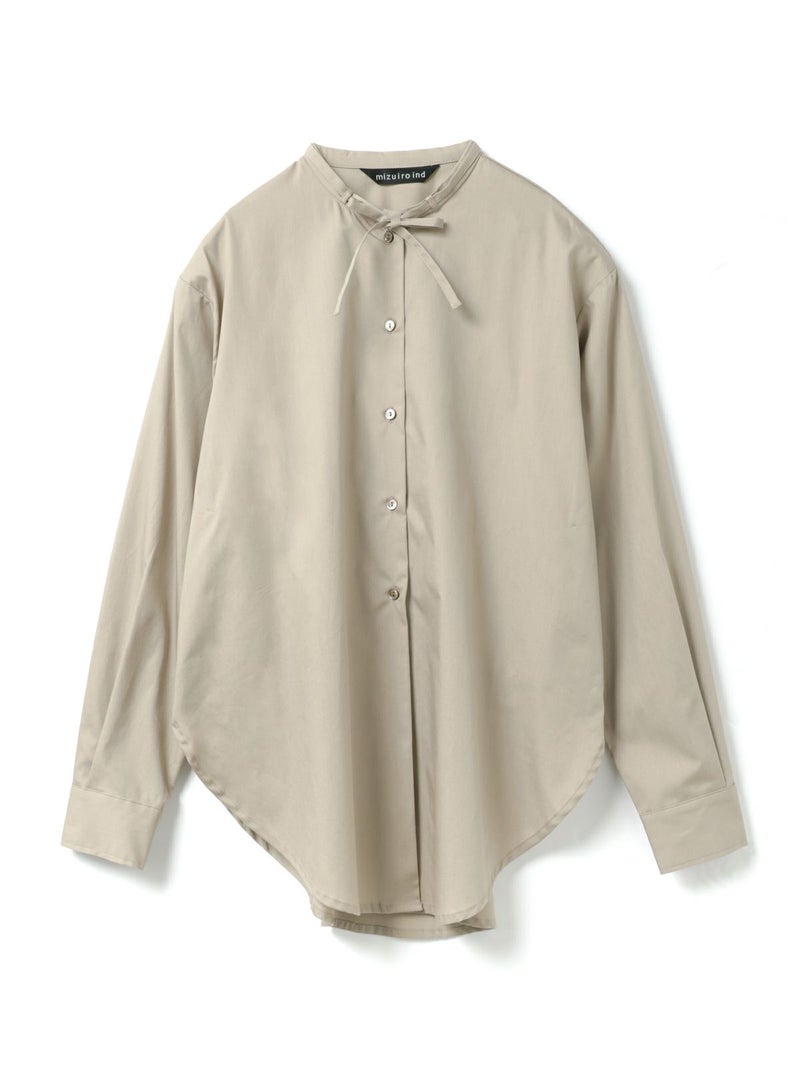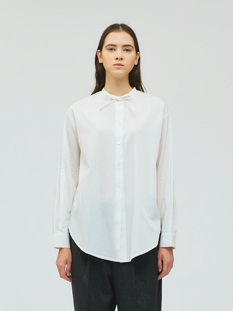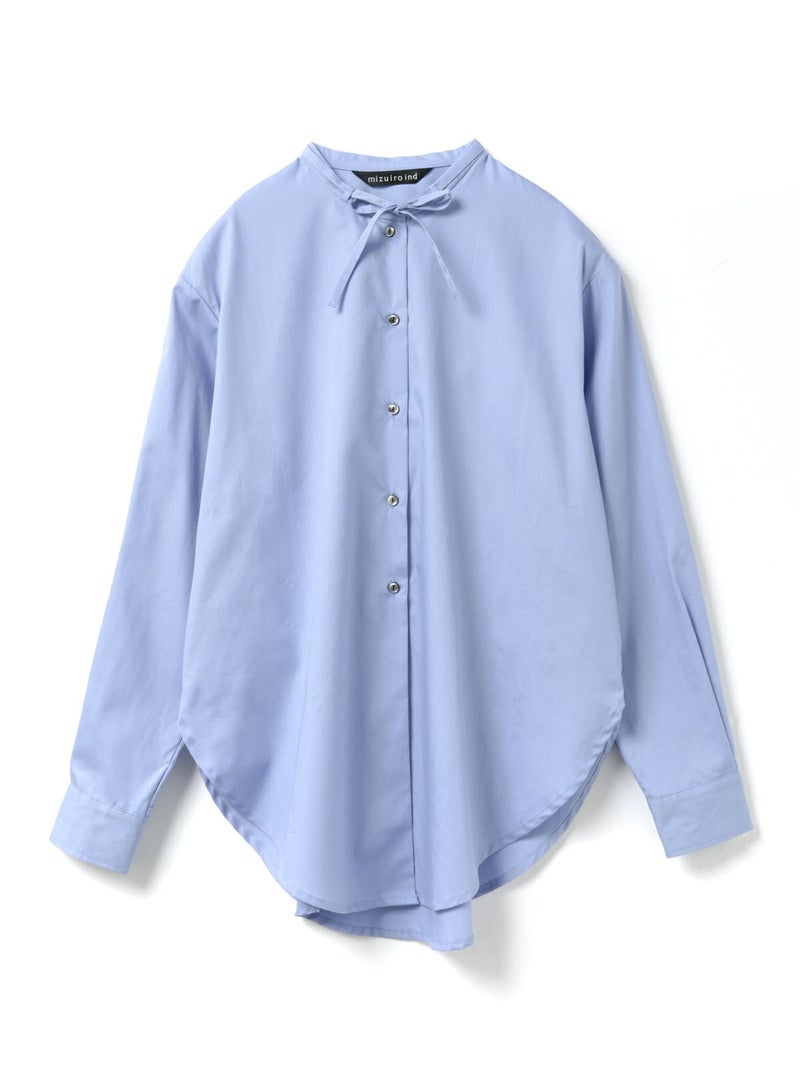 50ブロード素材を使用したリボンタイロングシャツが再入荷しました。mizuiro ind の人気型、細リボンの清楚な首元を演出したシンプルな1枚。ヒップの隠れる少し長めの丈感が特徴で丸みのある女性らしいシルエットを表現。サイドにポケットが付いているのもポイントです。程よいサイズ感で重ね着にも重宝していただけ、春先まで長く愛用していただける1枚です。