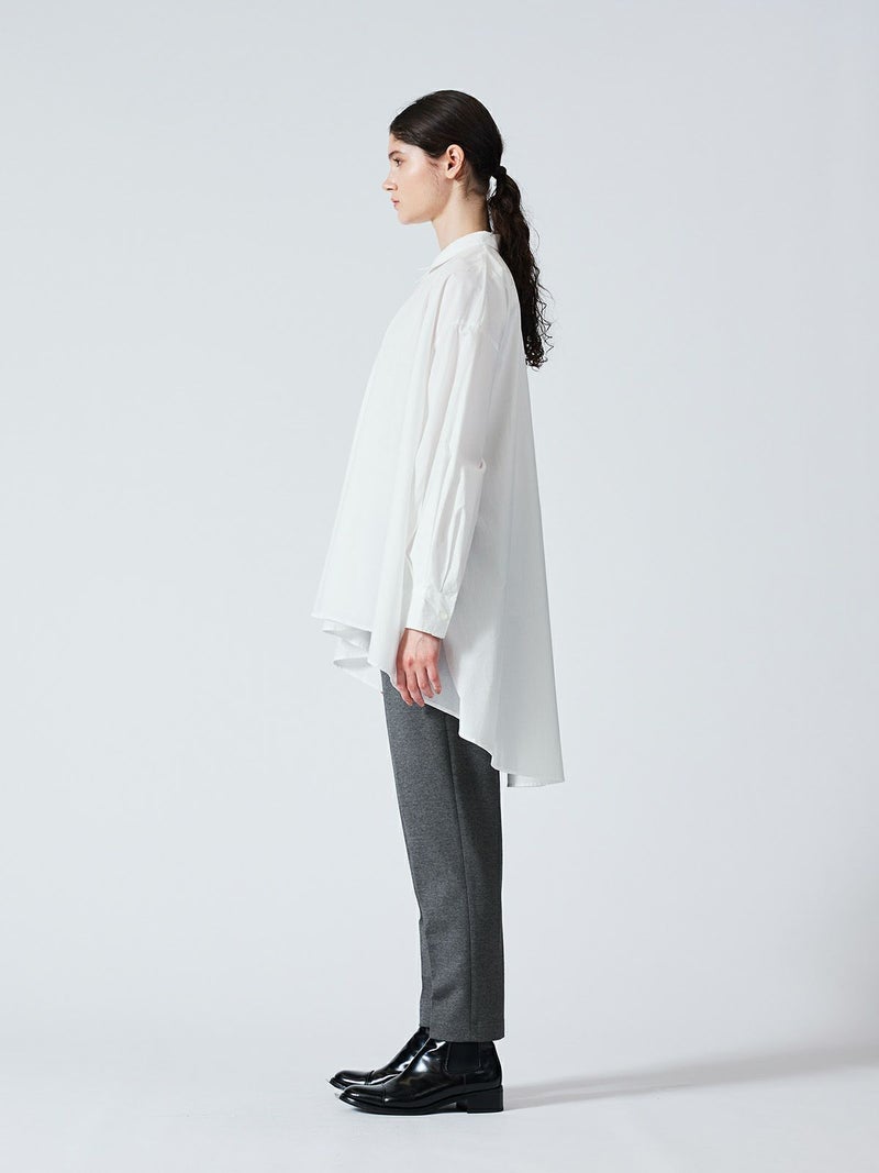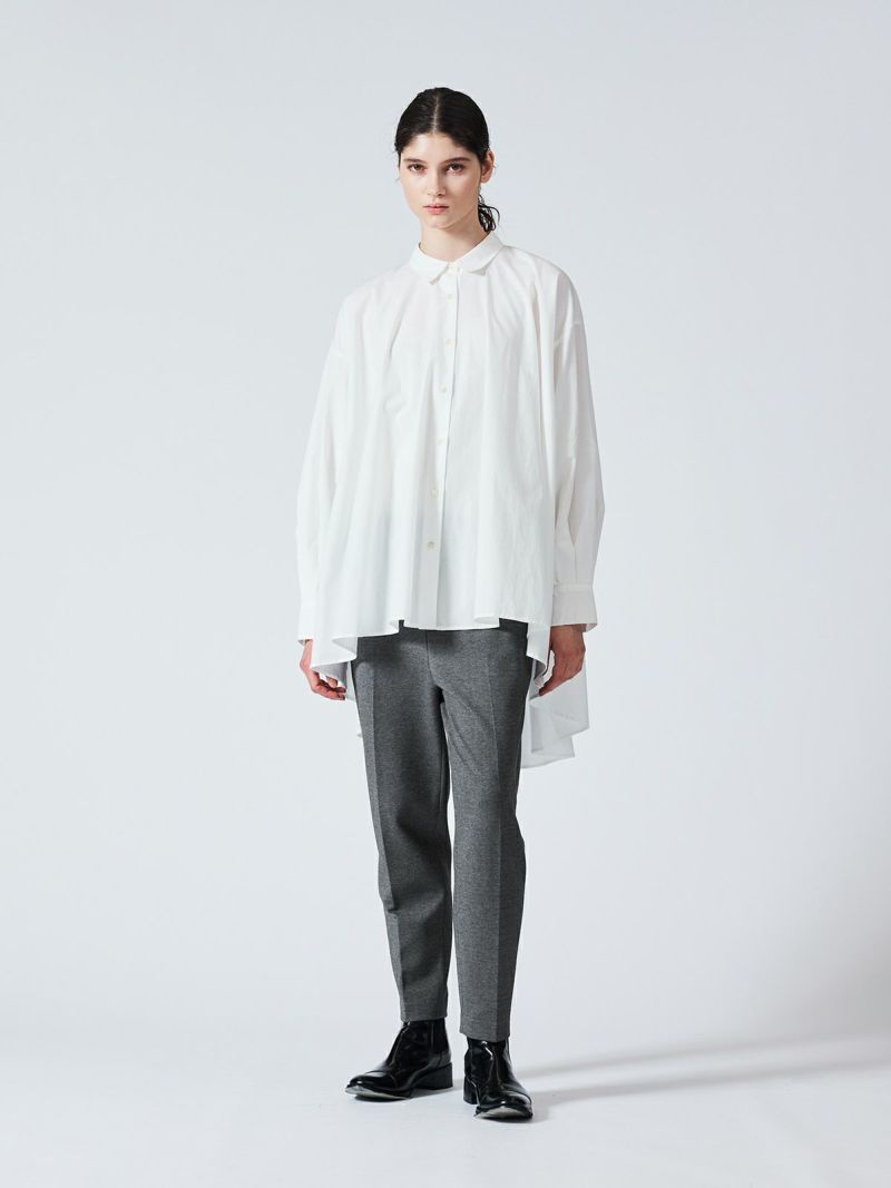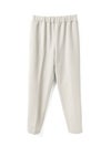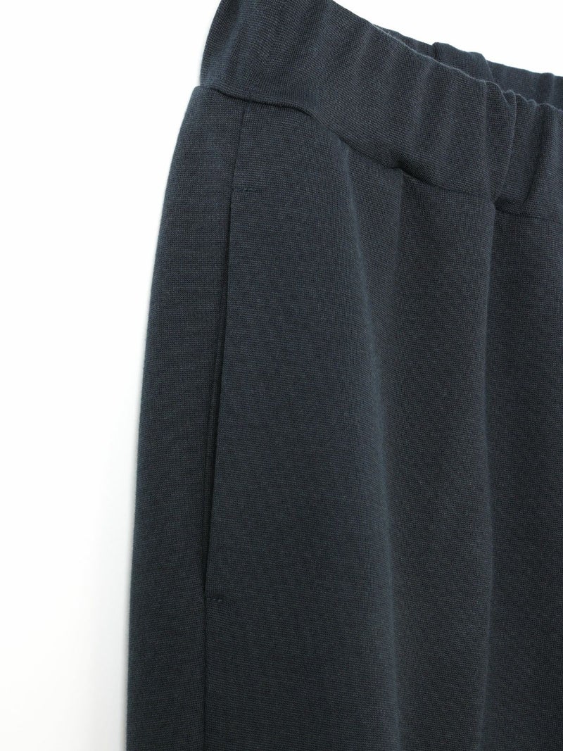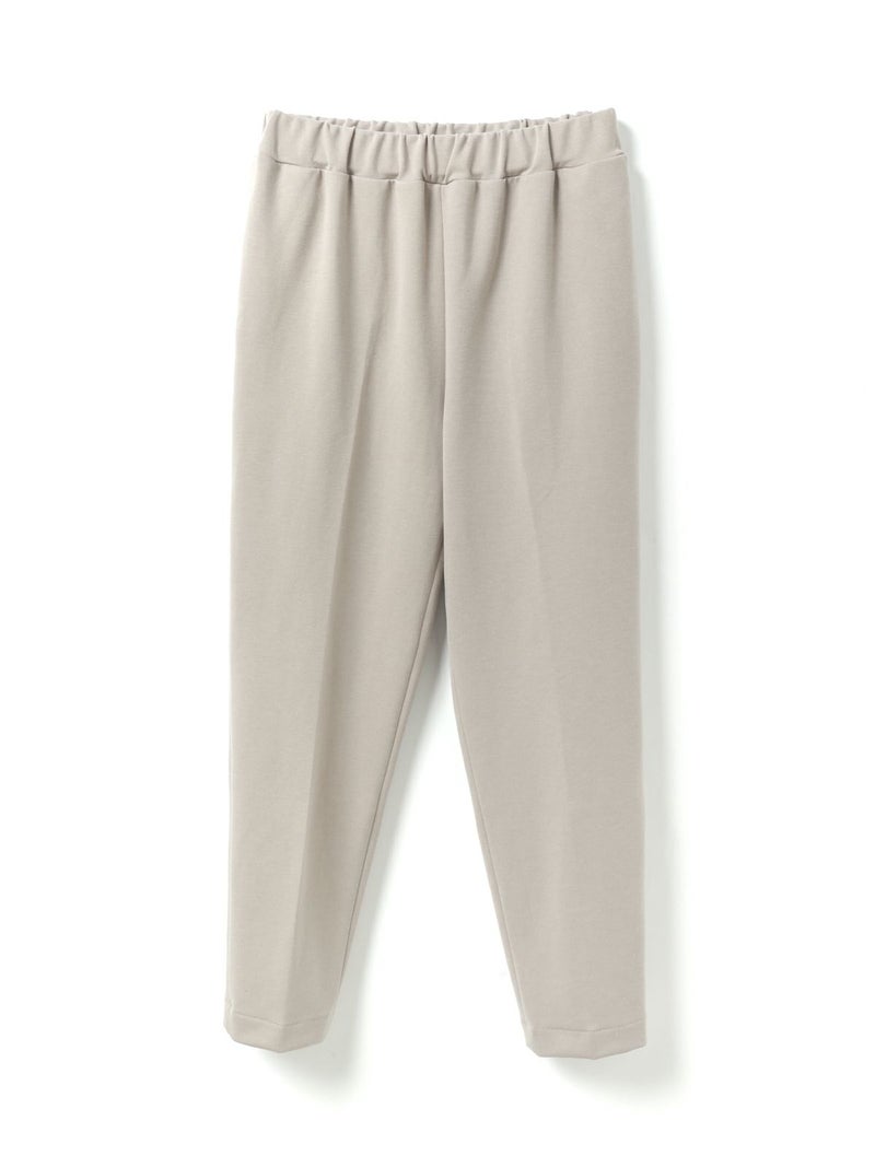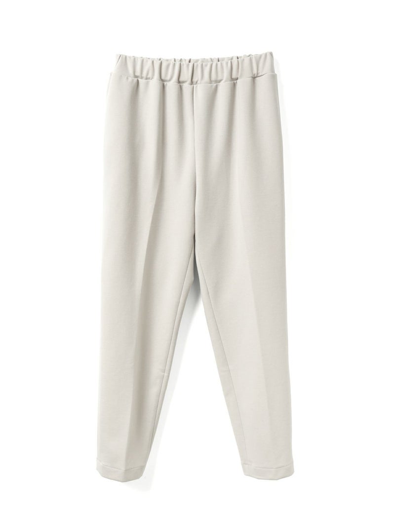 カットポンチ素材を使用したストレッチ性のあるなめらかな肌触りが特徴のジャージーセンタープレスパンツ。着心地もよく型崩れも少なくお洗濯もしやすいのもポイント。程よいパンツ幅でラフ過ぎずきちんと感を印象付けます。ウエストをゴム使用にしたリラックス感のあるデザインでmizuiro indらしい着こなしを表現します。同シリーズの3-210060/クルーネックコクーンプルオーバーとのセットアップがおすすめで、秋の季節感を演出していただける1枚です。