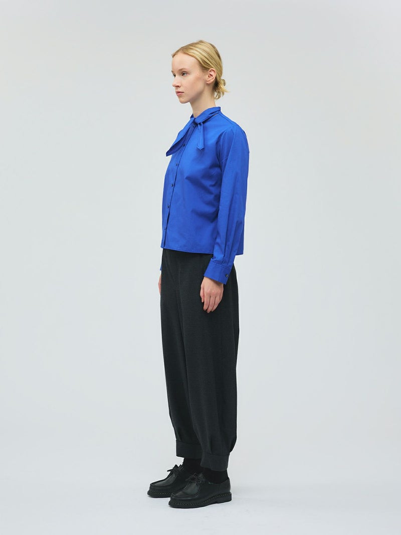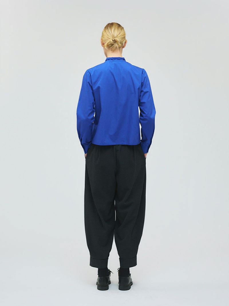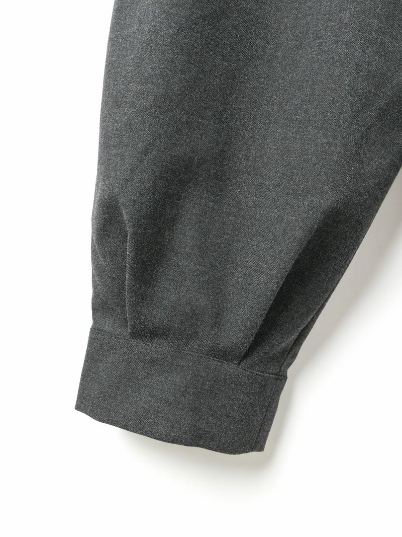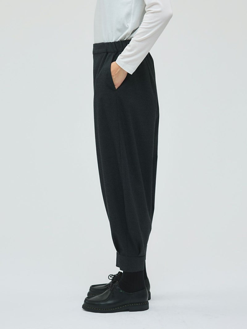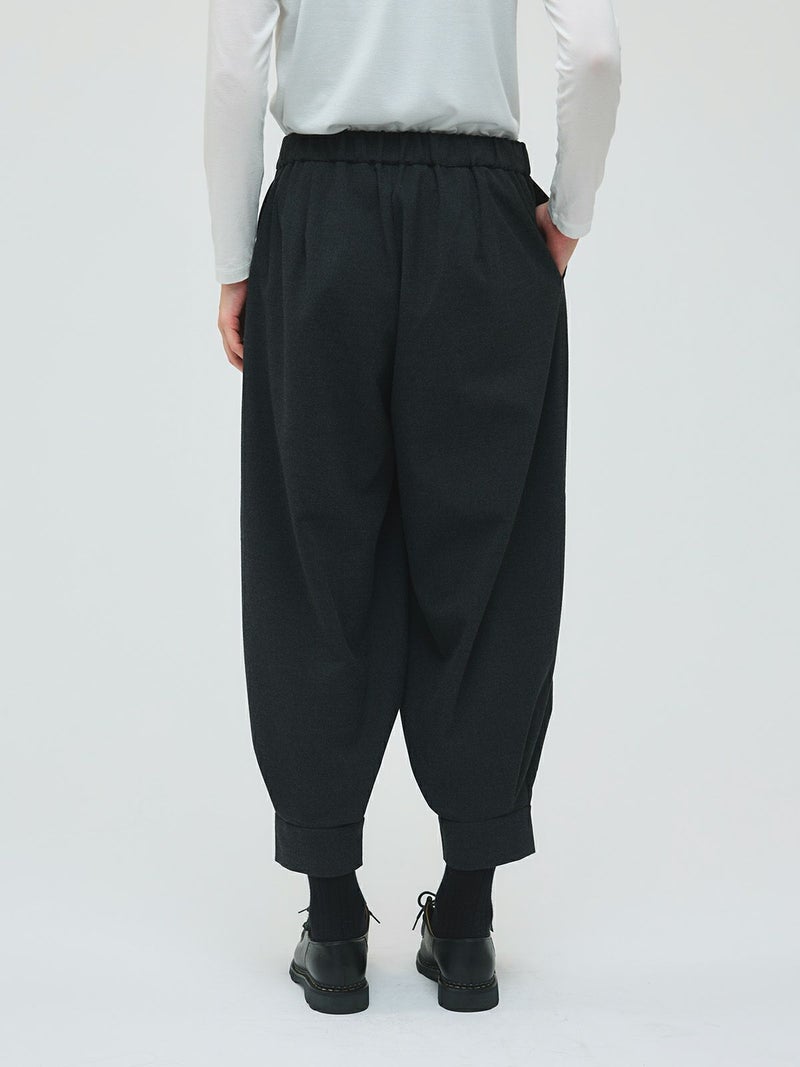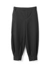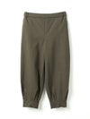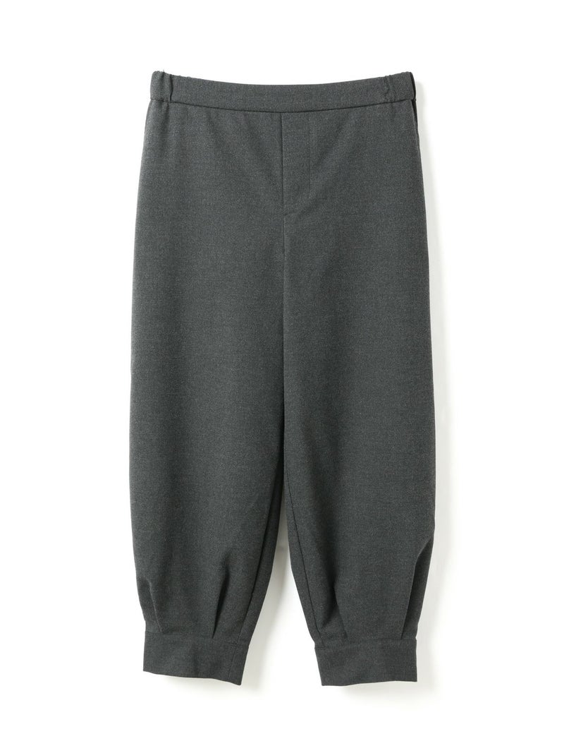 足元がすっきり見えるタックヘムパンツです。ジョッパーパンツともいわれ、膝上がゆったりとしたパンツに仕上がっています。裾口が特徴的で足元のオシャレも楽しんでいただけるアイテムです。ウエストは穿きやすいゴムに加え中紐の付いたウエスト調整のできるデザイン仕上げ。ストレッチがきいているので穿きやすい1枚です。かっこよく決まる新鮮なボトムアイテムです。