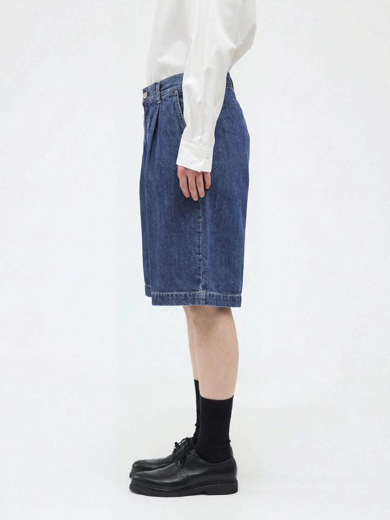 ウエストにワンタック入れたデニムハーフパンツ(ブリーチ)です。膝丈のショート丈にセンタープレスを入れた大人な表情を印象付けたデニムパンツです。ワンウォッシュより少し薄目のブルーはカジュアル感を演出。ステッチも拘って目に入ってくるデザイン。ウエストはベルト使い可能。シャツインにもお勧めです。長袖から半袖、足元からアウターまで、季節感を幅広くコーディネートしていただけます。同品番1-260095OW(ワンウォッシュ)も展開。