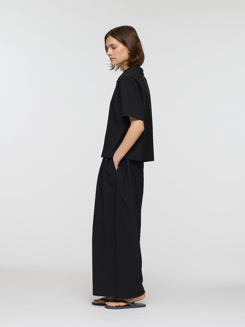 ポプリン素材を使用したワイドイージーパンツです。吸水・速乾性に優れたほどよくストレッチのきいた生地で柔らかさがあり着心地の良さを感じていただけます。ボリューム感とドレープ感があり、涼しくサラッとした生地感なので夏場に大変お勧めです。ウエストはゴム使用に加え調整可能な中紐付き。着回しのきく豊富な色展開も魅力の1つ。多様なコーディネートに役立つ1枚です。同シリーズ2-230130/ポプリンハーフスリーブシャツワイドイージーパンツも展開。セットアップでの着こなしもお勧めです。