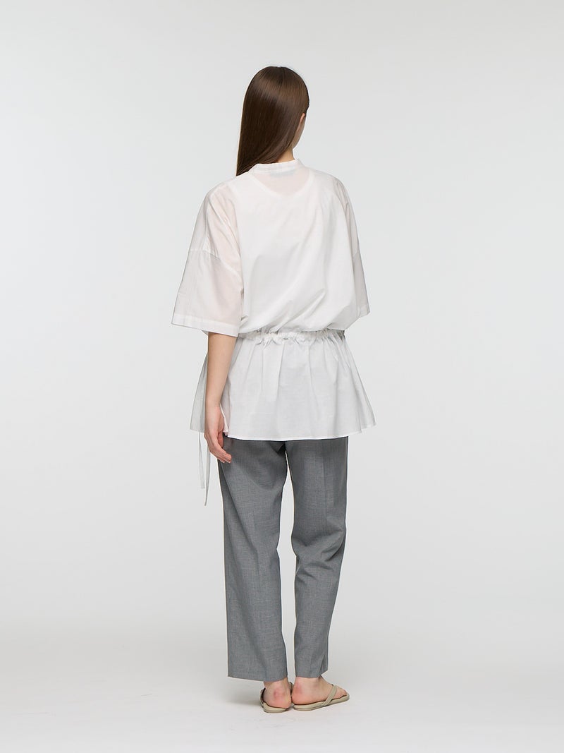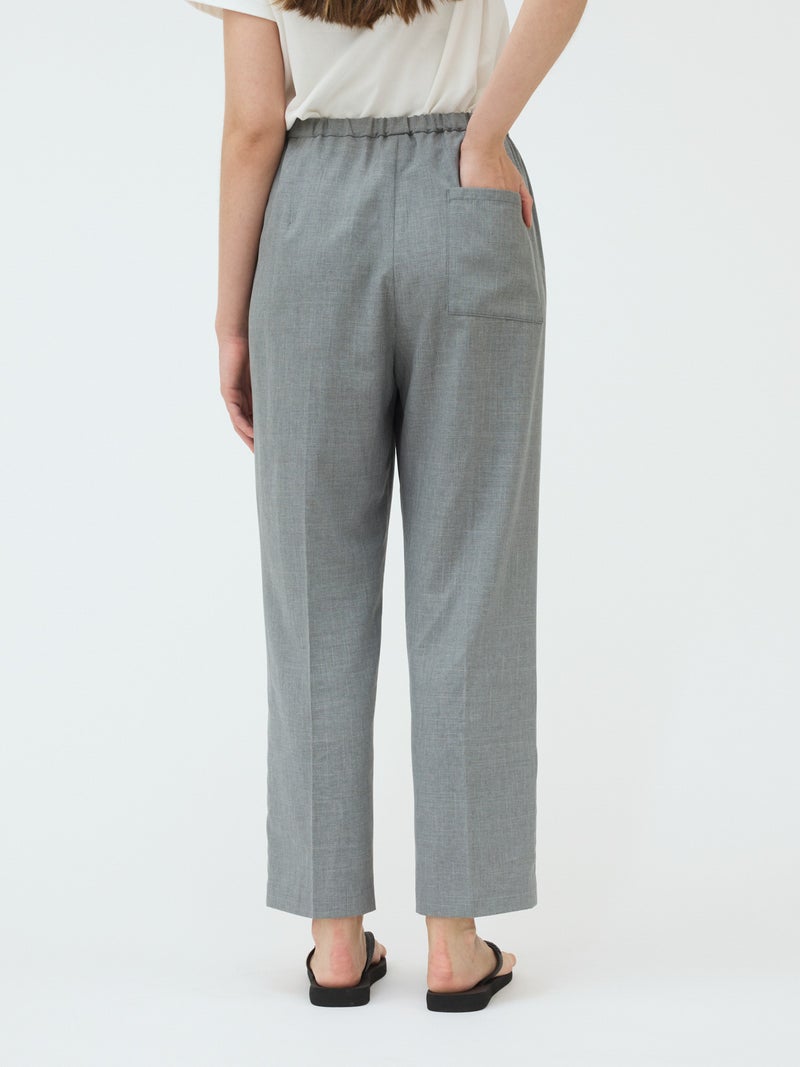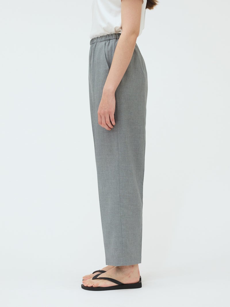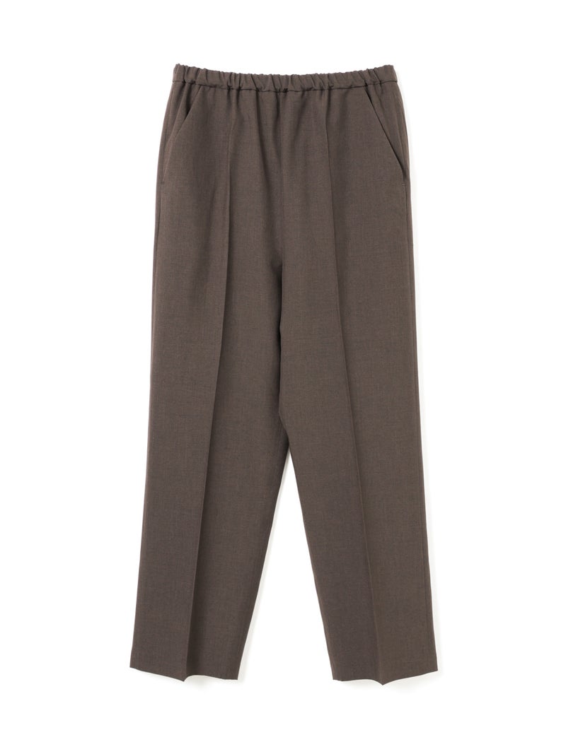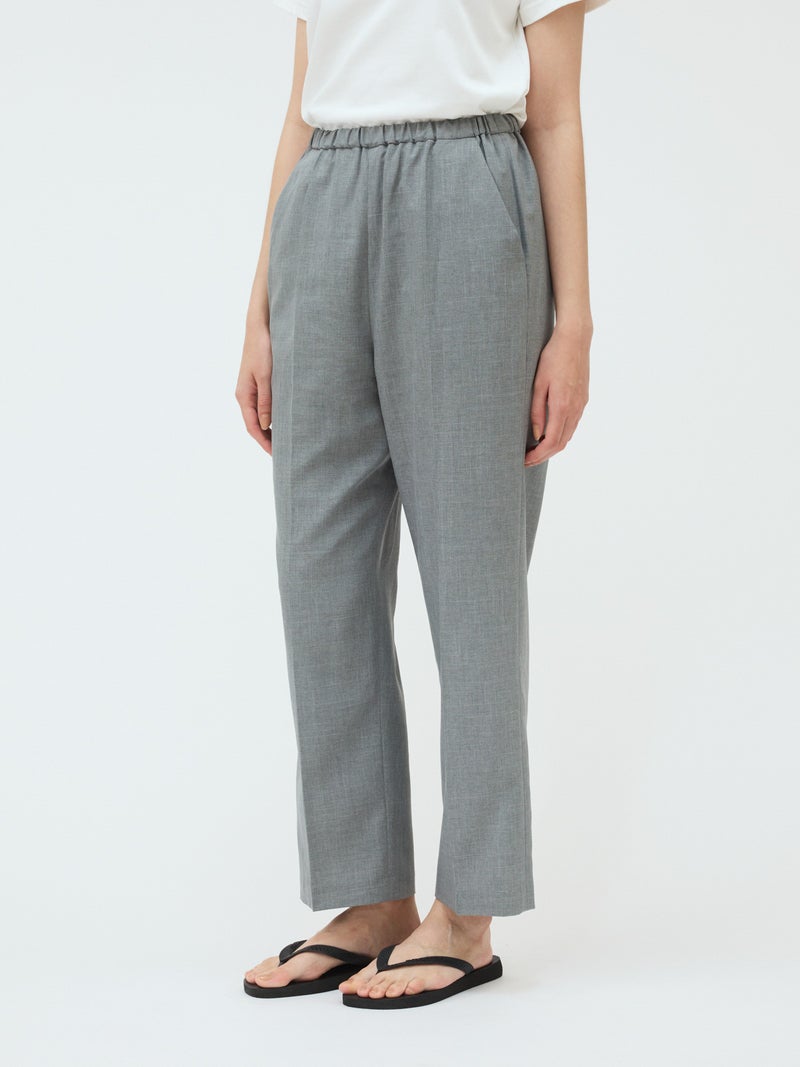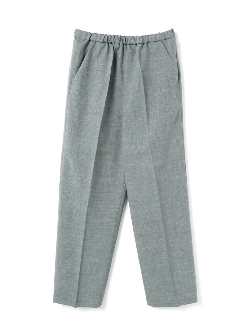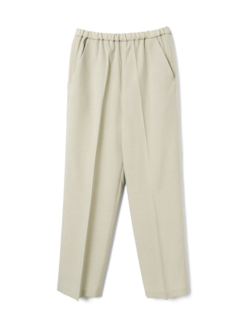 mizuiro ind定番のボトムアイテムで、夏にぴったりの薄手スラックスを表現したワイドスラックス。ストレートシルエットにセンタープレスがきいた、お仕事にも着用できる上品で清楚な雰囲気が魅力の1枚です。裾にワンクッションおくシルエットを表現しています。センタープレス入りのキレイ目なデザインと落ち着きのある色展開が人気。今季は色展開を増やしているので更に新鮮さも追加されています。ウエストはリラックス感のあるゴム使用。薄手の生地感なので暑い夏場も快適に着用できるベーシックな大人のボトムアイテムです。