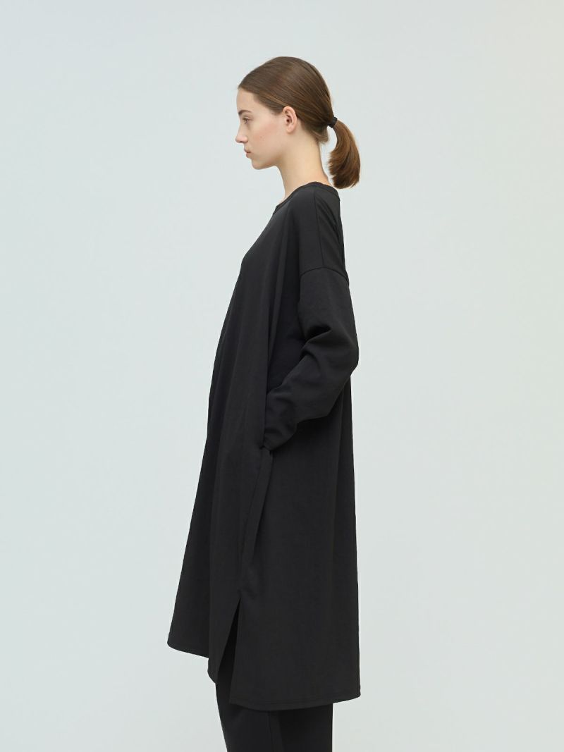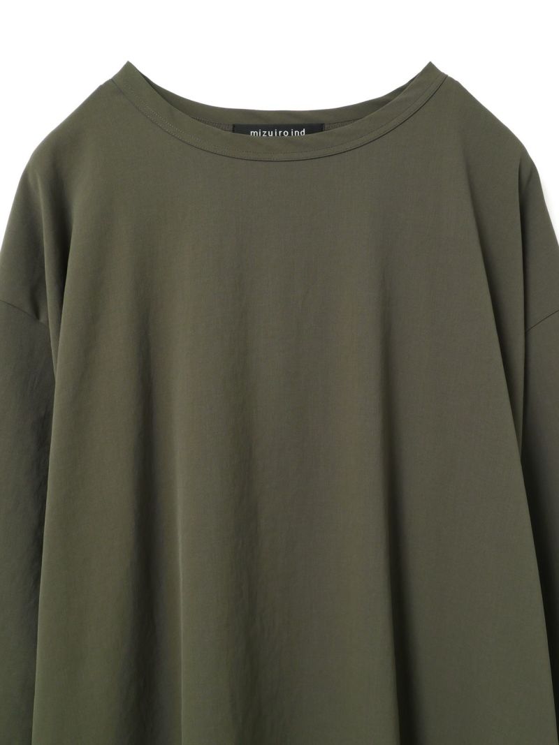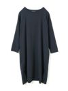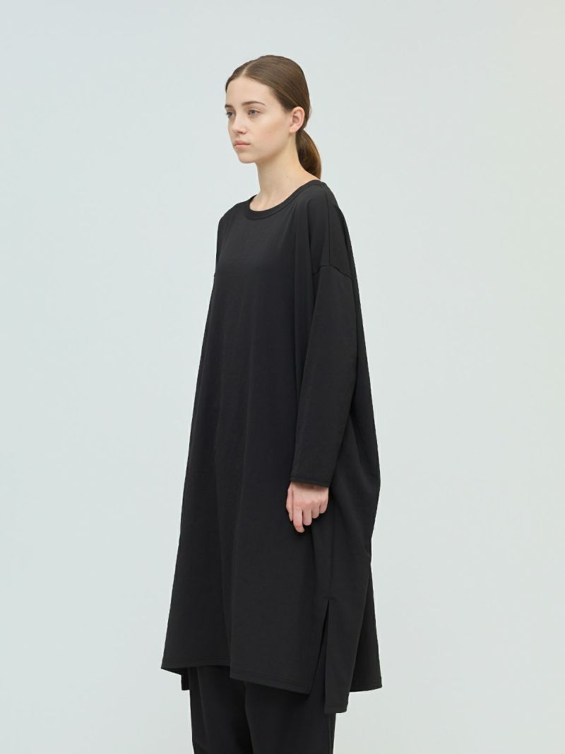 環境にやさしい再生ポリエステル糸を使用したクルーネックロングワンピースです。布帛カットソー縫製でハリ・シボ感のある生地で、清涼感を持ち合わせた晩夏の気温の高い時期にも着用しやすい1枚です。クルーネックのシンプルなデザインワンピースで、足元までのストンとしたロング丈を表現。前後差を付け、サイドスリットが入っているので足さばきが良いのもポイント。ボトムを合わせてmizuiro indらしい着こなしを演出していただけます。シックな3色のカラー展開です。