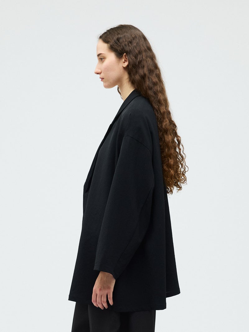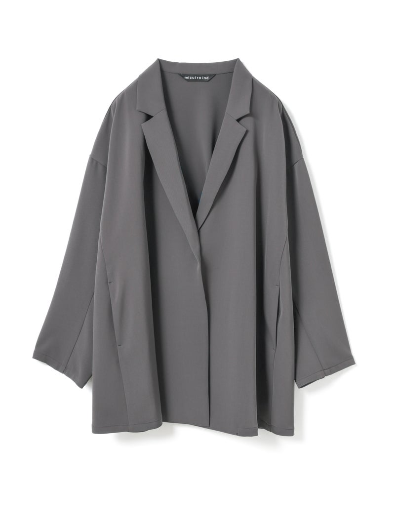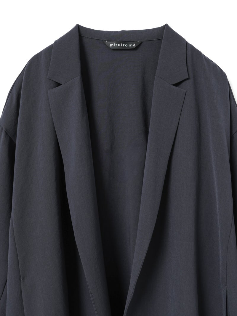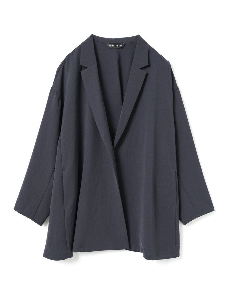 mizuiro ind定番のデザインで、ドライツイルワッシャー素材で仕上げたテーラードシャツジャケットが再入荷しました。早い段階から人気があり、濃いカラーを中心にオケージョンアイテムとして、普段使いもでき活躍していただいています。さらっとした肌触りが特徴。ボタンはなくすっきりとしたヒップの隠れる少し長めのデザインを表現。上品に広がりのあるフレアラインが印象的でしなやかに動きのあるシルエットを演出します。