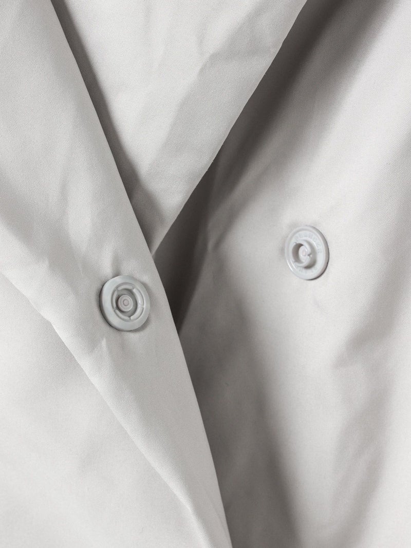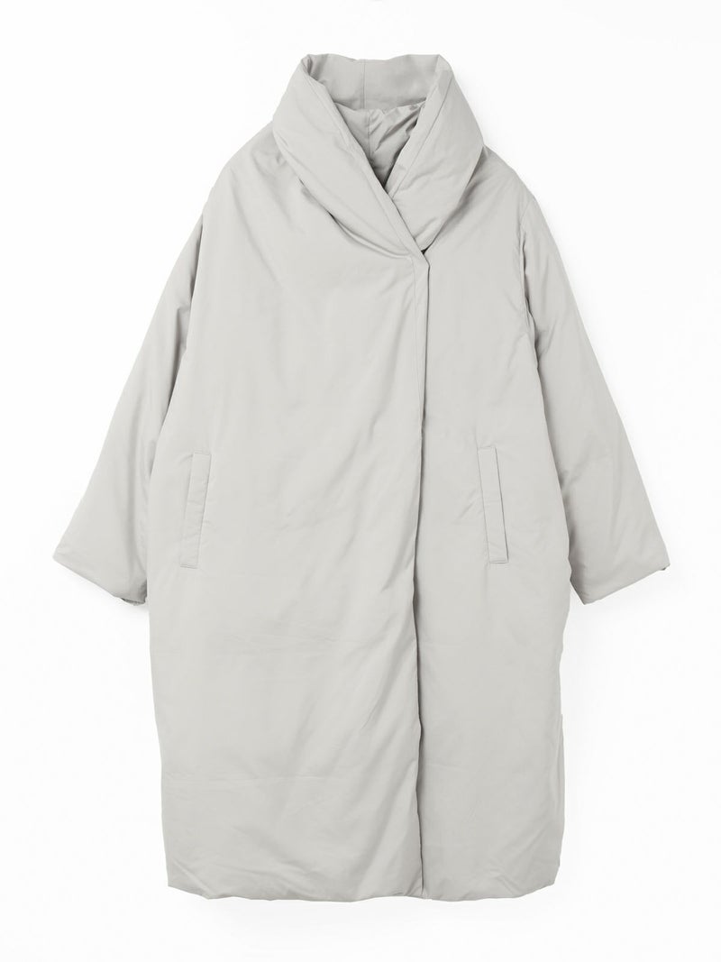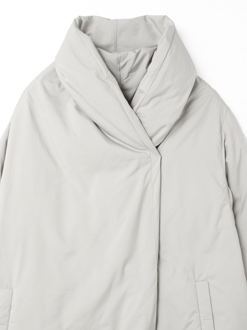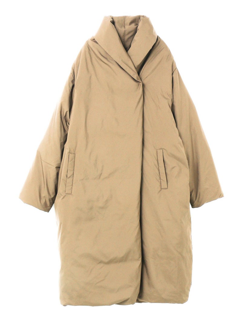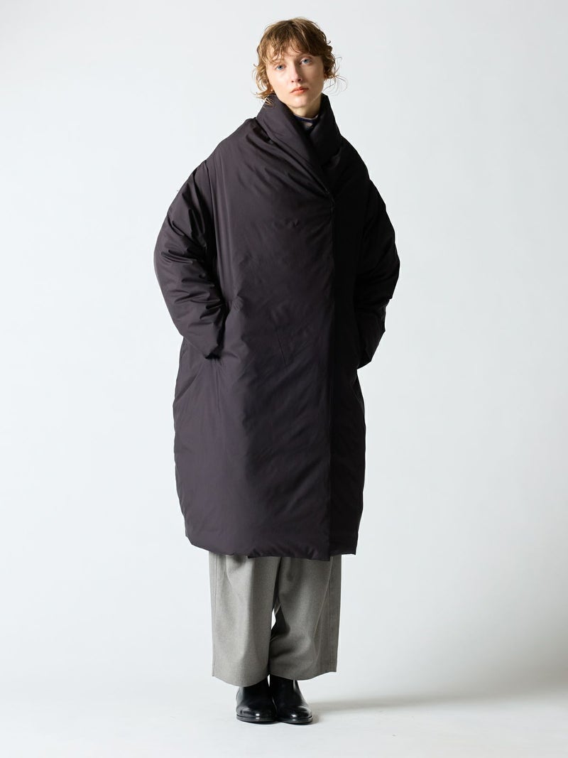寒い冬の季節に温かく身を包んでくれる大人のドレープロングダウンです。マットなウォーム感のある光沢とタッチ、軽さと暖かさを兼ね備えたシックな雰囲気が印象的で、色々なコーディネートによく合う1枚。スナップボタンなので悴んだ指先でも留めやすい仕様になっています。マフラー無しでも首元を暖かく覆ってくれるかっこいいデザインが特徴。mizuiro indの定番となった人気の1枚です。