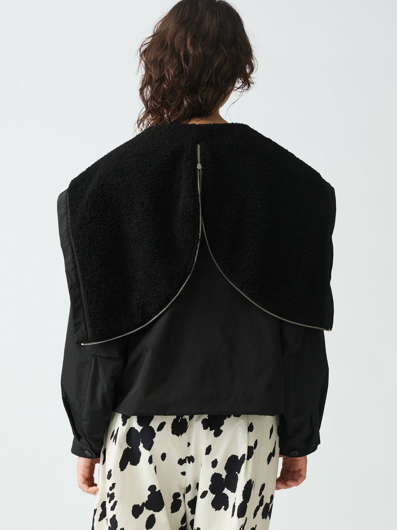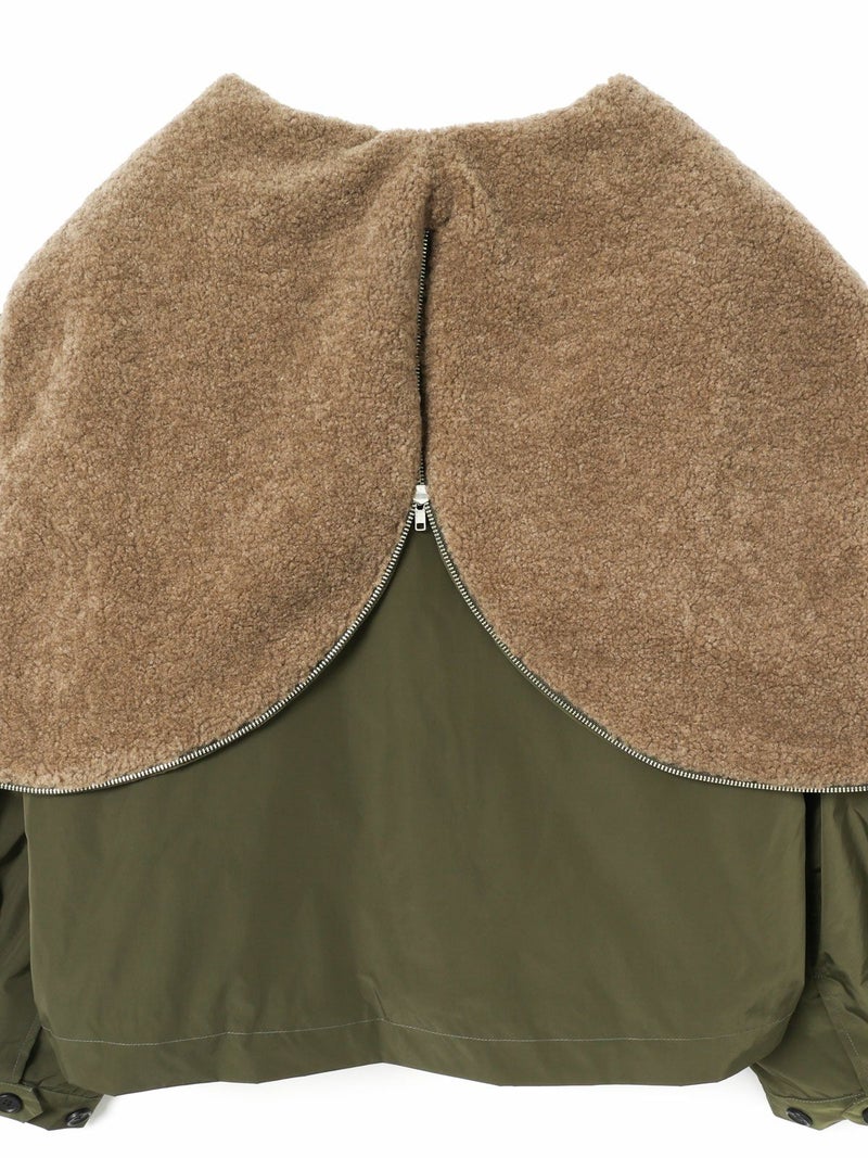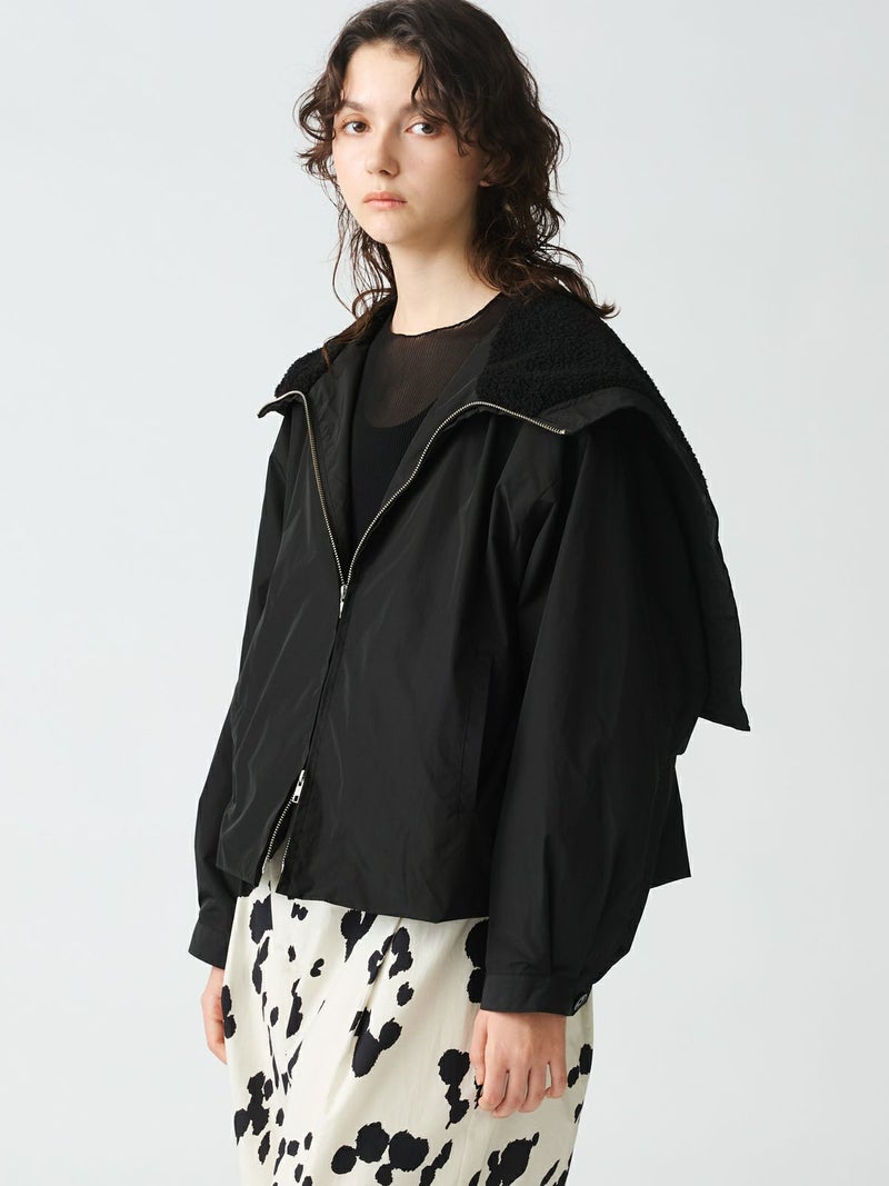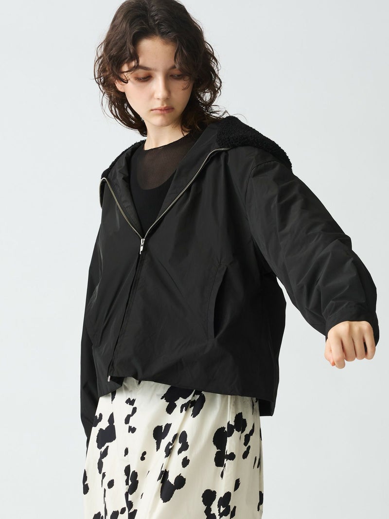 コンパクトなサイズ感と気軽に羽織れるフライトジャケット、バックボアフードジャケットです。フード裏はボア、身頃・袖裏はフランネル素材を使用。フード中央のファスナーを開けると左右に開き、襟が肩にかかるデザイン。すっきりとしたヒップ上の丈感はボリュームのあるボトムとも相性抜群。カジュアルに着こなせる今季お勧めのアウターです。