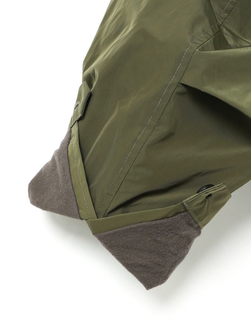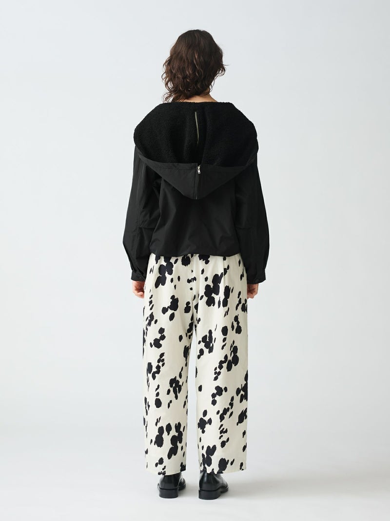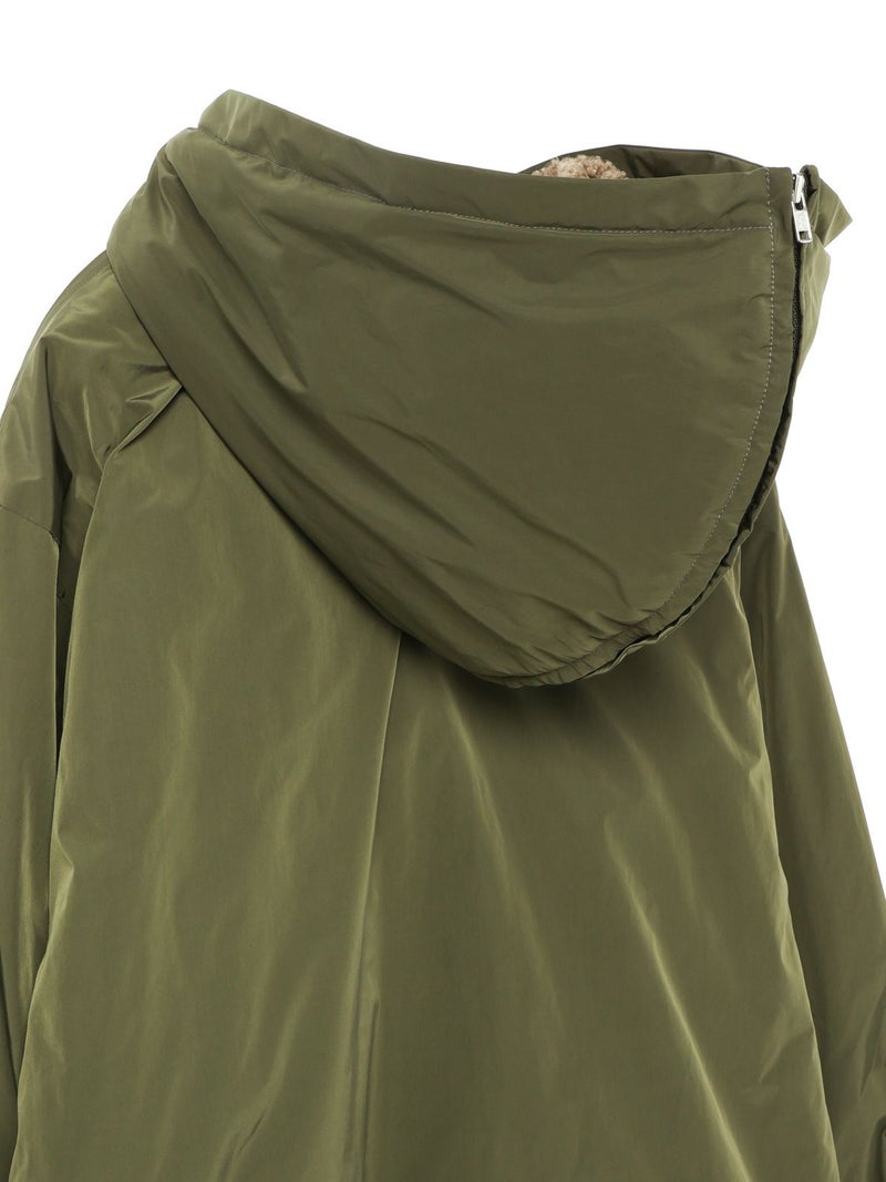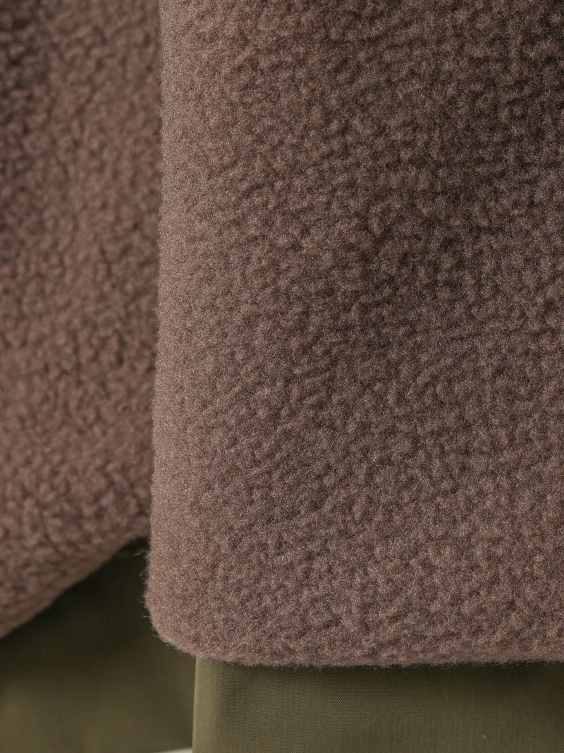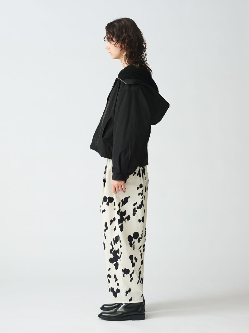 コンパクトなサイズ感と気軽に羽織れるフライトジャケット、バックボアフードジャケットです。フード裏はボア、身頃・袖裏はフランネル素材を使用。フード中央のファスナーを開けると左右に開き、襟が肩にかかるデザイン。すっきりとしたヒップ上の丈感はボリュームのあるボトムとも相性抜群。カジュアルに着こなせる今季お勧めのアウターです。