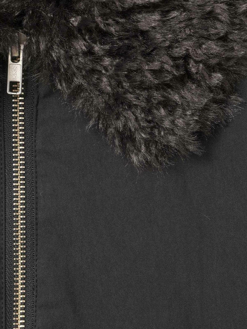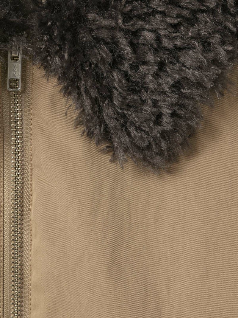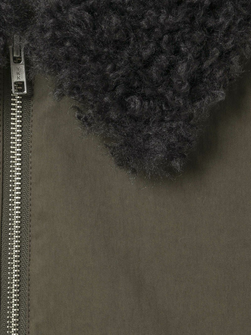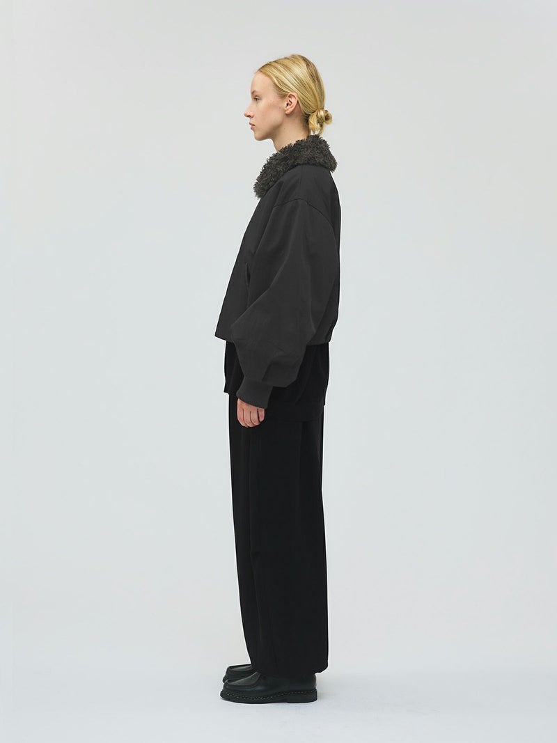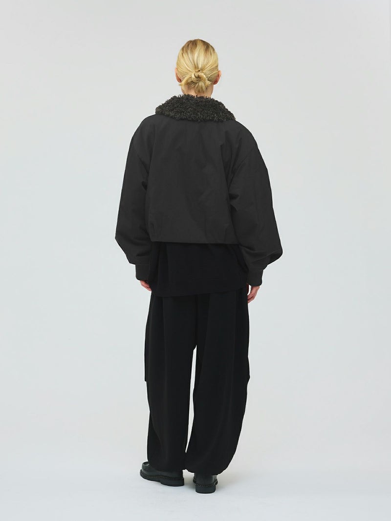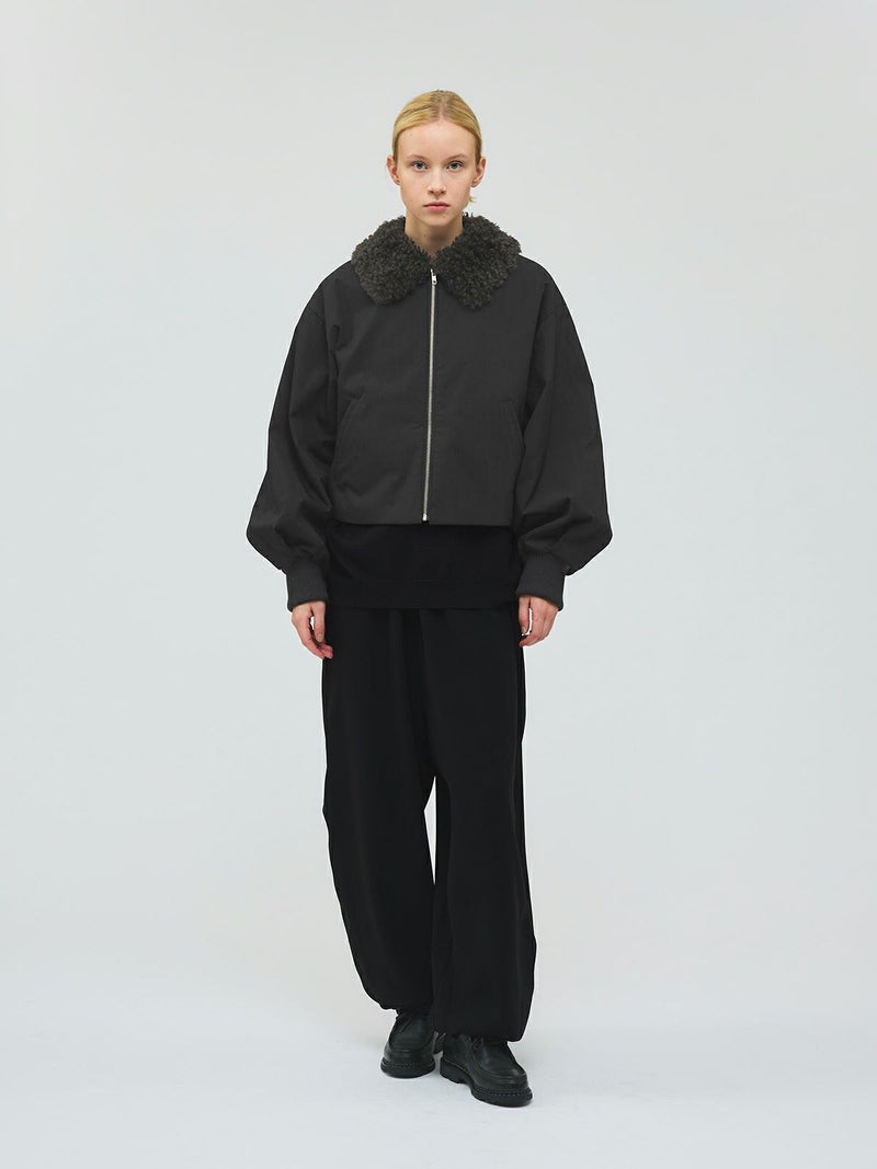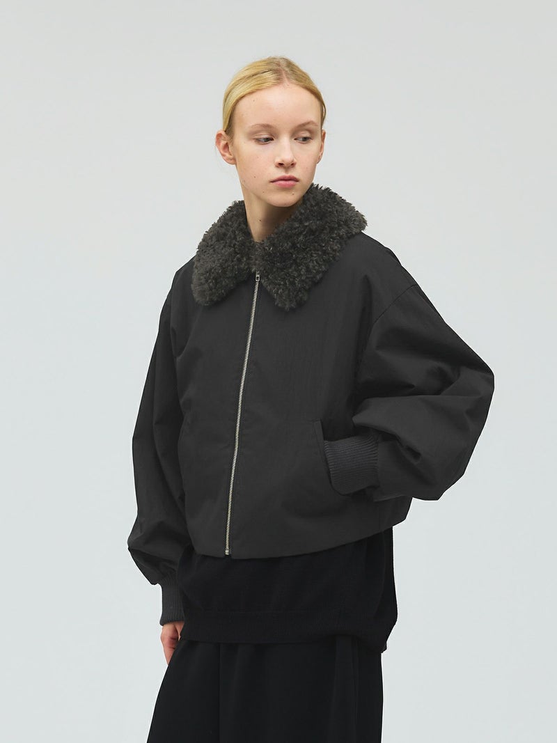 温かなボア襟が魅力のボアカラーショートジャケットです。後ろ裾にタックを施した立体的なシルエットが特徴的。袖は風通しのないしっかりとしたリブ使いで、ゆったりとした袖丈は中にニットや厚手のトレーナーを着用しても窮屈な感じはなく着やすいサイズ感となっています。ヒップ上のショート丈なので、ボリュームのあるボトムもバランスよく着こなせます。ボアは取り外しはできません。温かなボアがしっかりと首元を包んでくれるのでマフラー要らずな1枚です。
