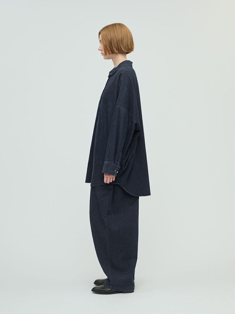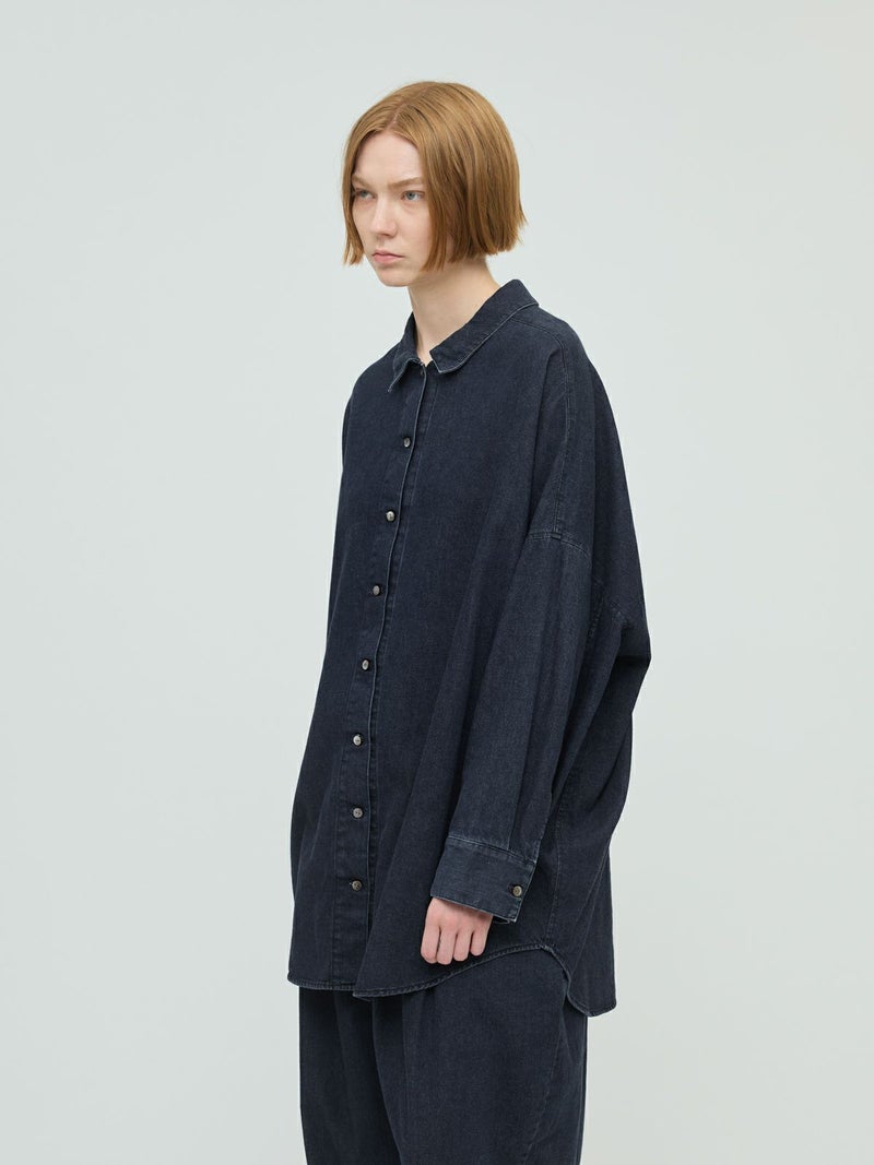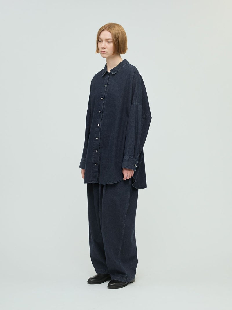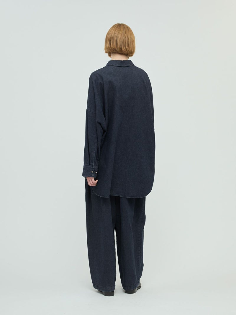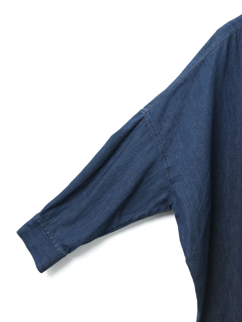 岡山産デニムを使用してデザインしたデニムワイドシャツです。ブラックのステッチを採用してモード感を演出。しっとりとした生地感で、程よい落ち感が特徴。ワイドな身幅で、シャツコートとしても使えます。フェード色とワンウォッシュの2色展開です。人気のデニムシリーズで同シリーズ3-230102/デニムベストと3-260068/デニムタックワイドパンツも展開。セットアップでの着こなしもお勧めです。