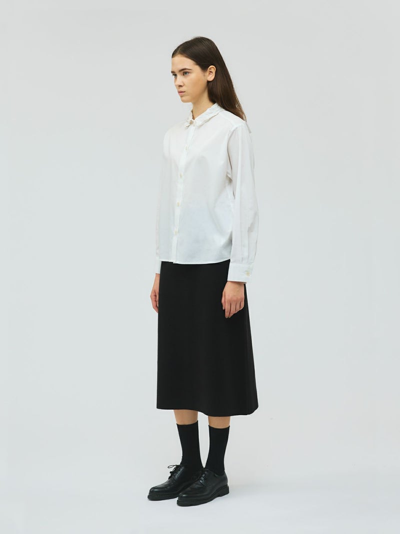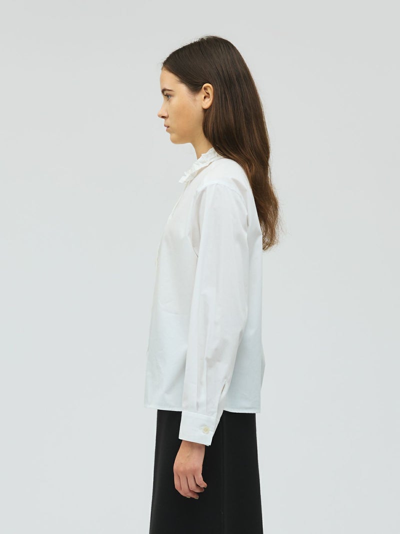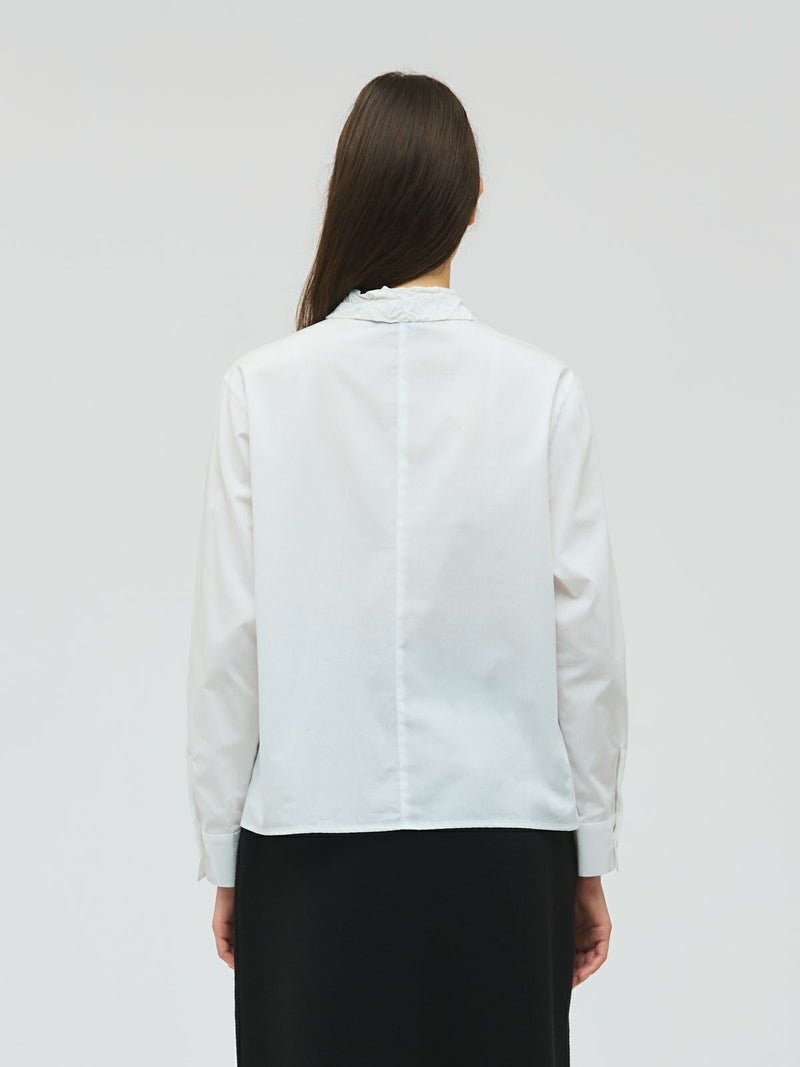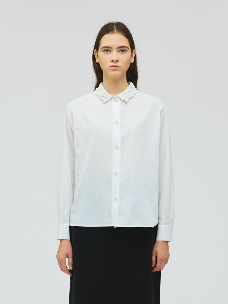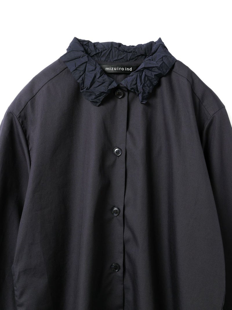 シンプルなデザインのシャツに襟のみワッシャー加工を施したワッシャーカラーシャツです。合わせやすいシンプルさとどこかさりげないアクセントが光るmizuiro indらしい1枚です。ニットやカーディガンのインナーとして、ちらりと見せる襟元がオシャレな装いを演出します。シーズン通して長く愛用していただけるアイテムで、春先にもオケージョン対応として役立つアイテムになってくれます。3色のカラーもベーシックなカラーのみで展開。