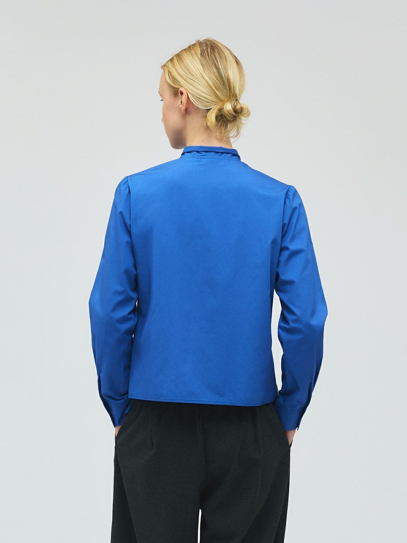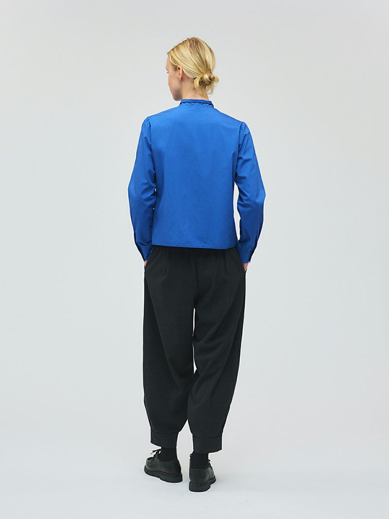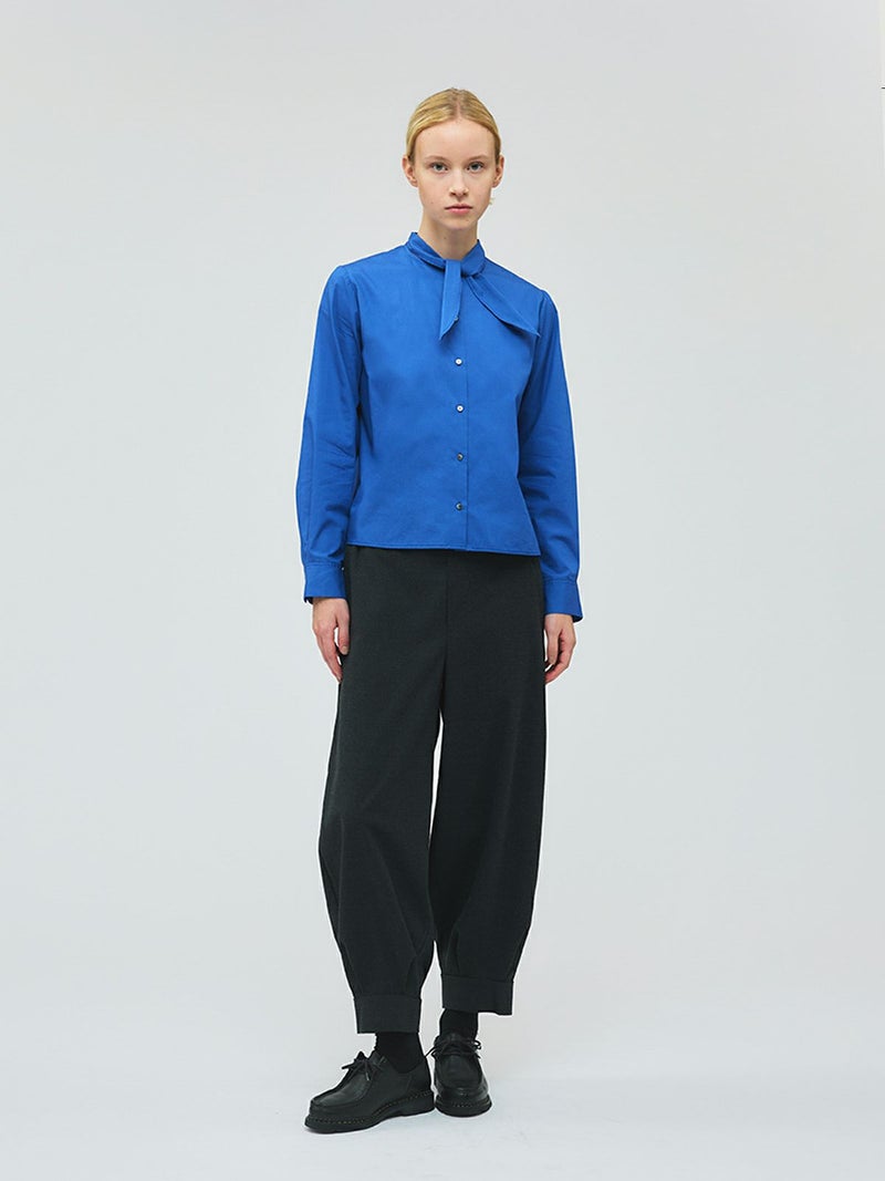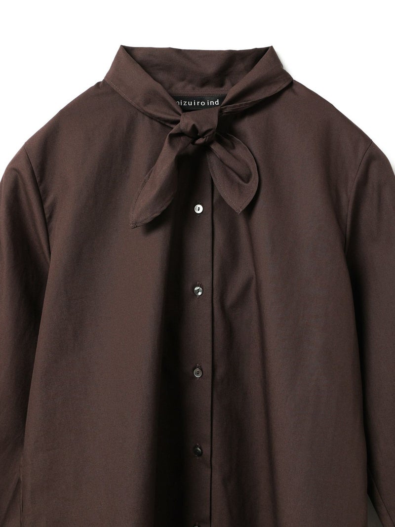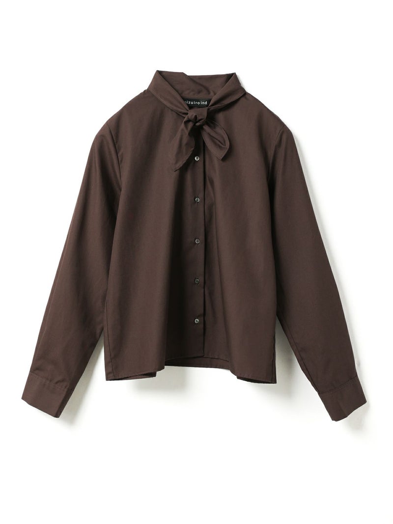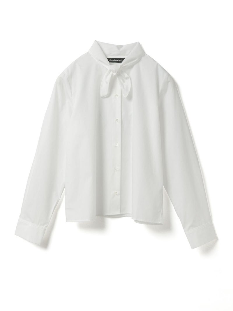 スカーフと襟が一体となったリボンタイシャツです。シャツの身頃はコンパクトなサイズ感となっておりスッキリと清楚な着こなしを演出します。インナー使いにしても素敵で、首元のリボンがアクセントになってくれます。一体となっていることで、リボンを紛失することもないのがポイント。シンプルなデザインなので幅広くコーディネートができる1枚です。