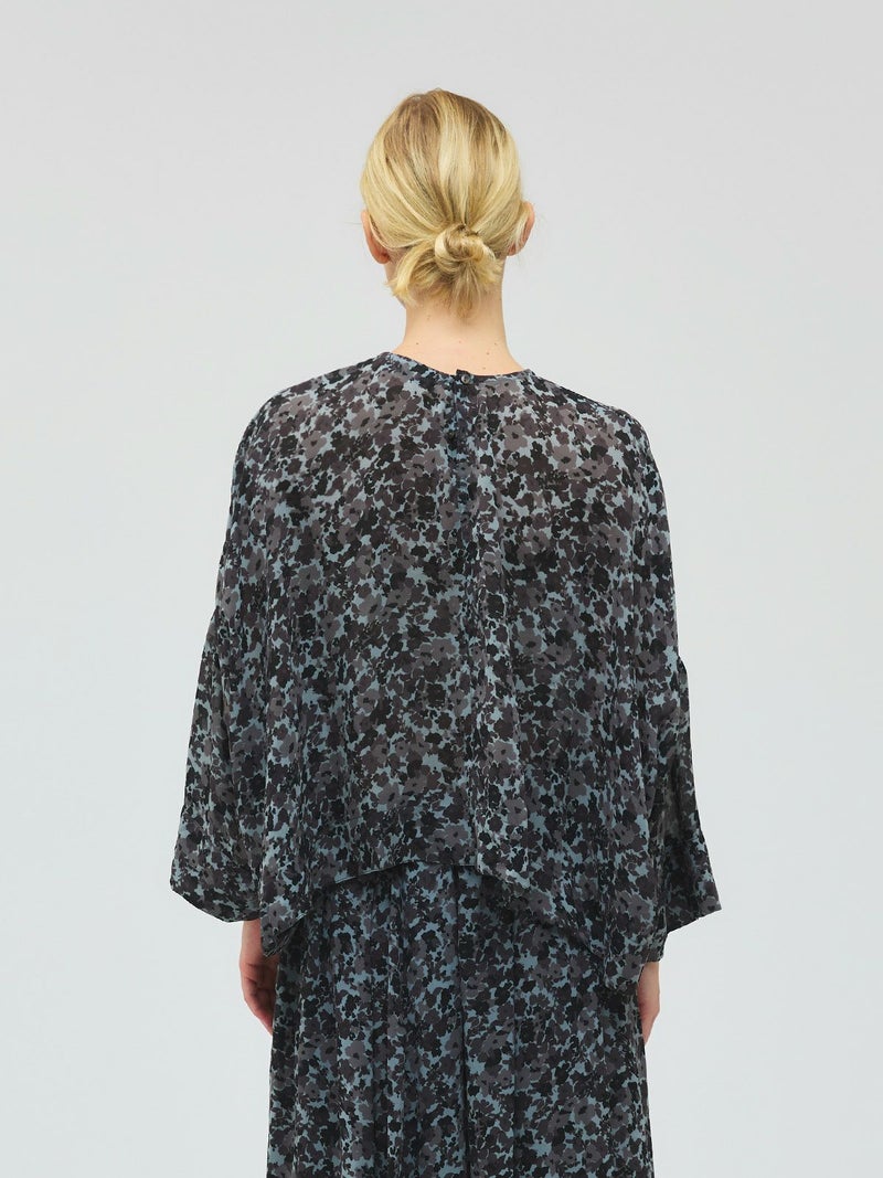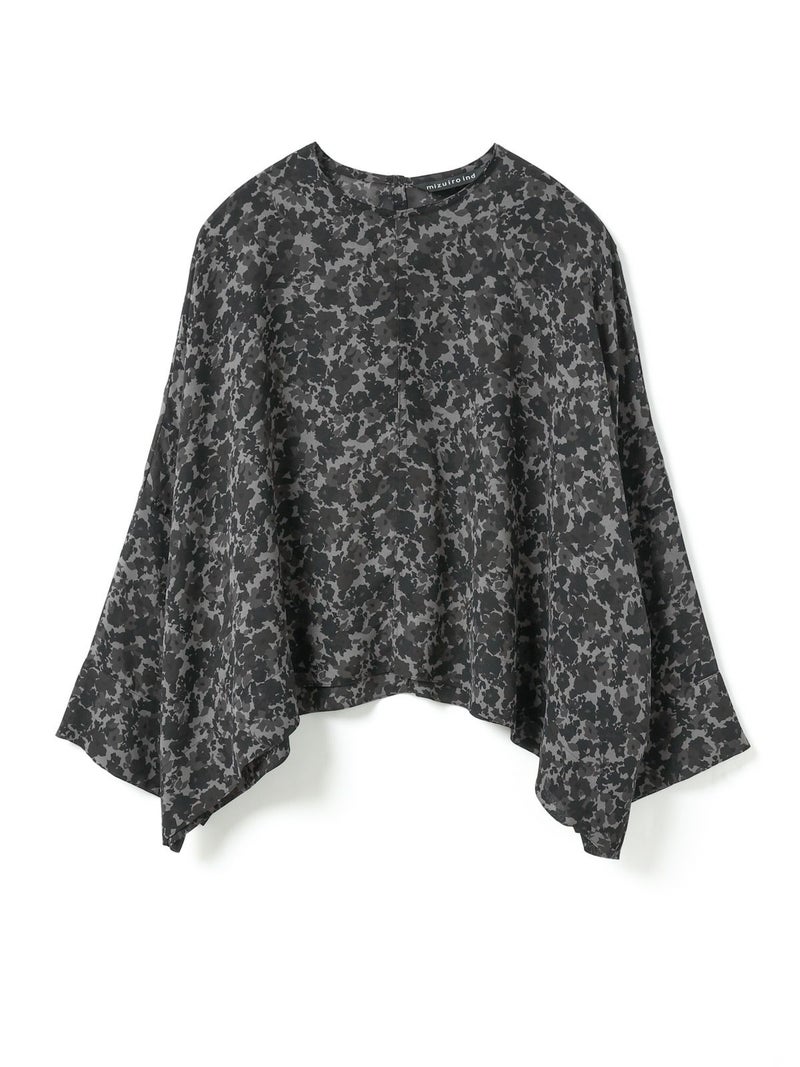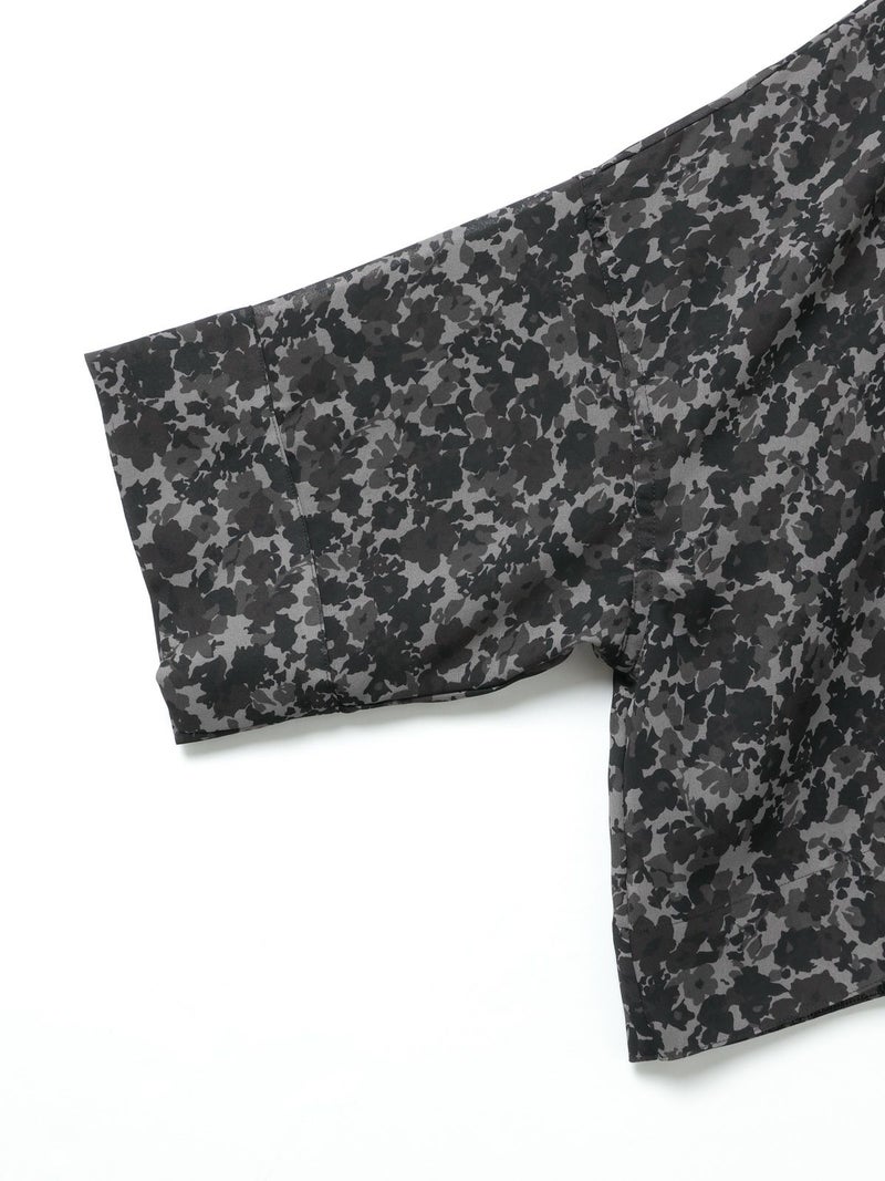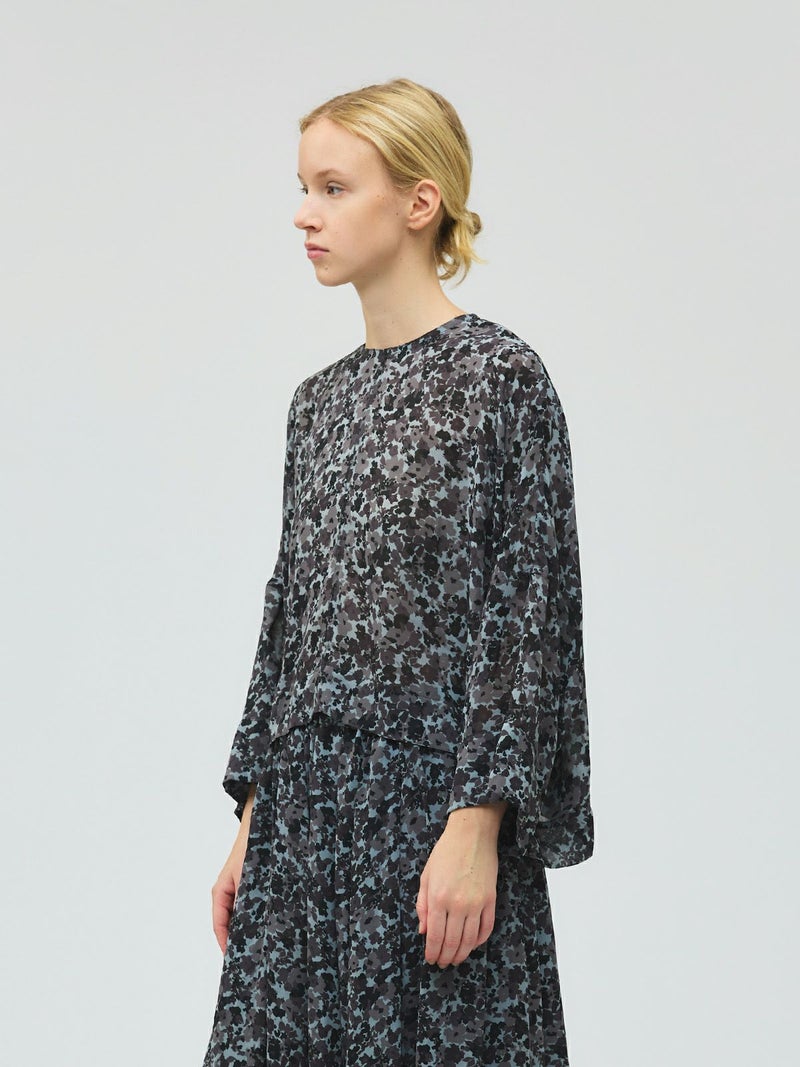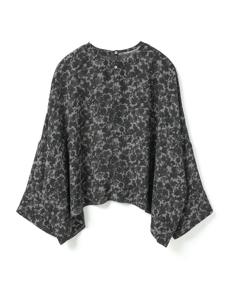 肌触りの良い軽やかなジョーゼット生地を使用したフラワープリントワイドプルオーバーです。ブラックのみの1色展開でシックな柄プリントシリーズとしてご提案。フロント丈はすっきりしておりますが、ワイドな身頃で中に重ねやすいサイズ感が特徴。サイドに落ち感のあるデザインなので、シャツのしなやかな動きを表現したシルエットが魅力的。透け感があるのでインナー使いが必須で、寒い時期はタートルを合わせても素敵です。バックネックにボタンが付いているので着脱のしやすいプルオーバーです。同シリーズの4-260069/フラワープリントロングスカートとセットアップでの着用もおすすめ。4-250047/フラワープリントシャツワンピースも合わせた3型で展開してます。