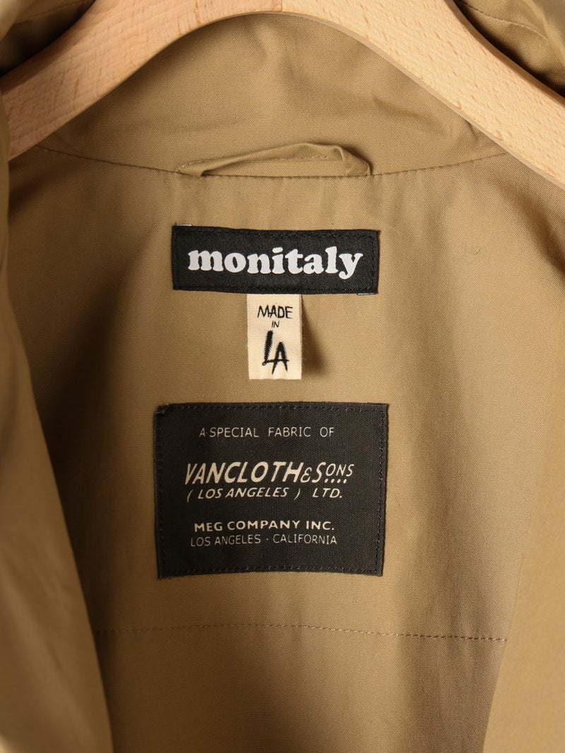 【MONITALY / モニタリー】アメリカ・ロサンゼルスを拠点とするファッションブランドで、デザイナーのYuki Matsuda(松田行正)氏が手掛けています。1997年、アメリカ、ハモサビーチで誕生。ブランド名の由来は、「サンタモニカ×ミリタリー×イタリアン」をミックスした造語からきています。ビンテージミリタリーやワークウェアのディテールを現代的に再解釈し、高品質な素材と独自のパターンで仕立てることで知られています。特に、オリジナルファブリック「Vancloth(ヴァンクロス)」は、1940年代の米軍コートの研究を基に開発され、滑らかな手触りと光沢感を持つサテンツイル素材として高い評価を受けています。