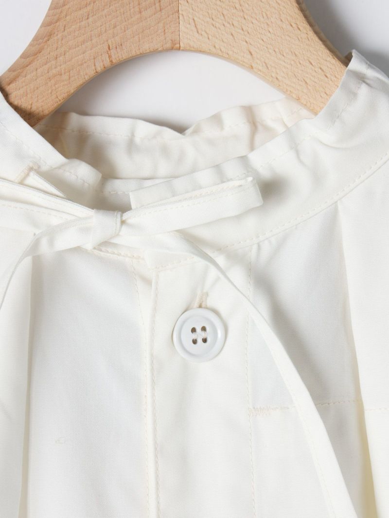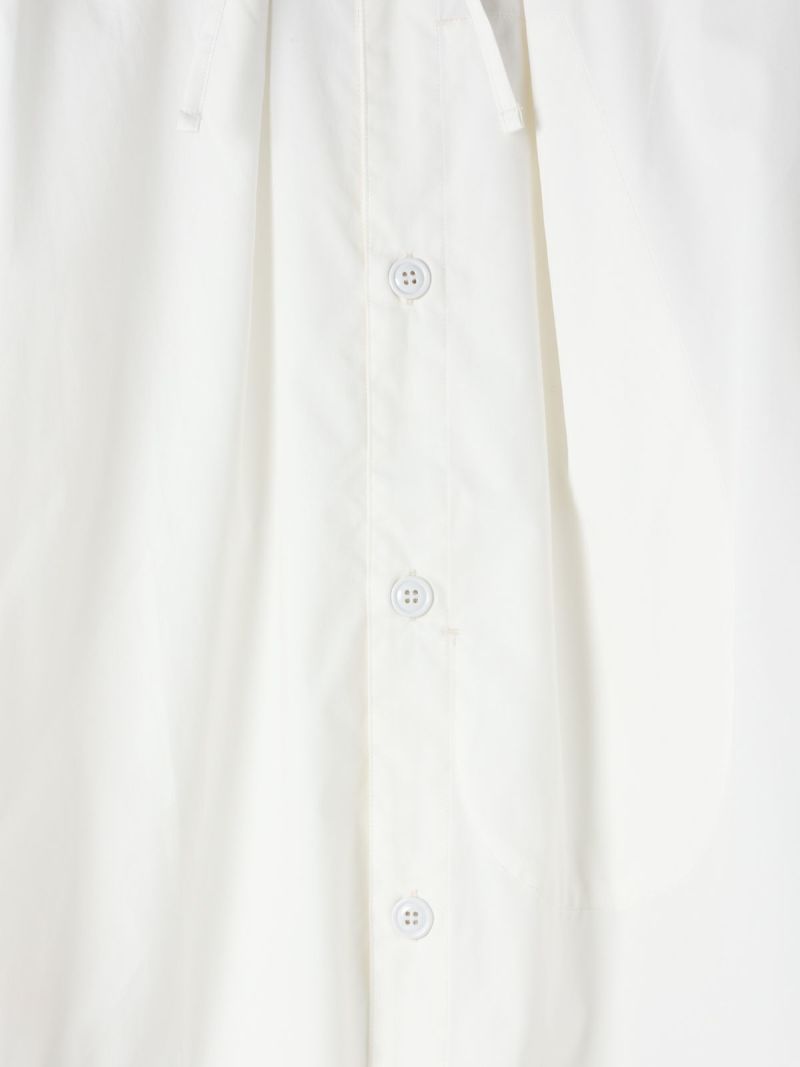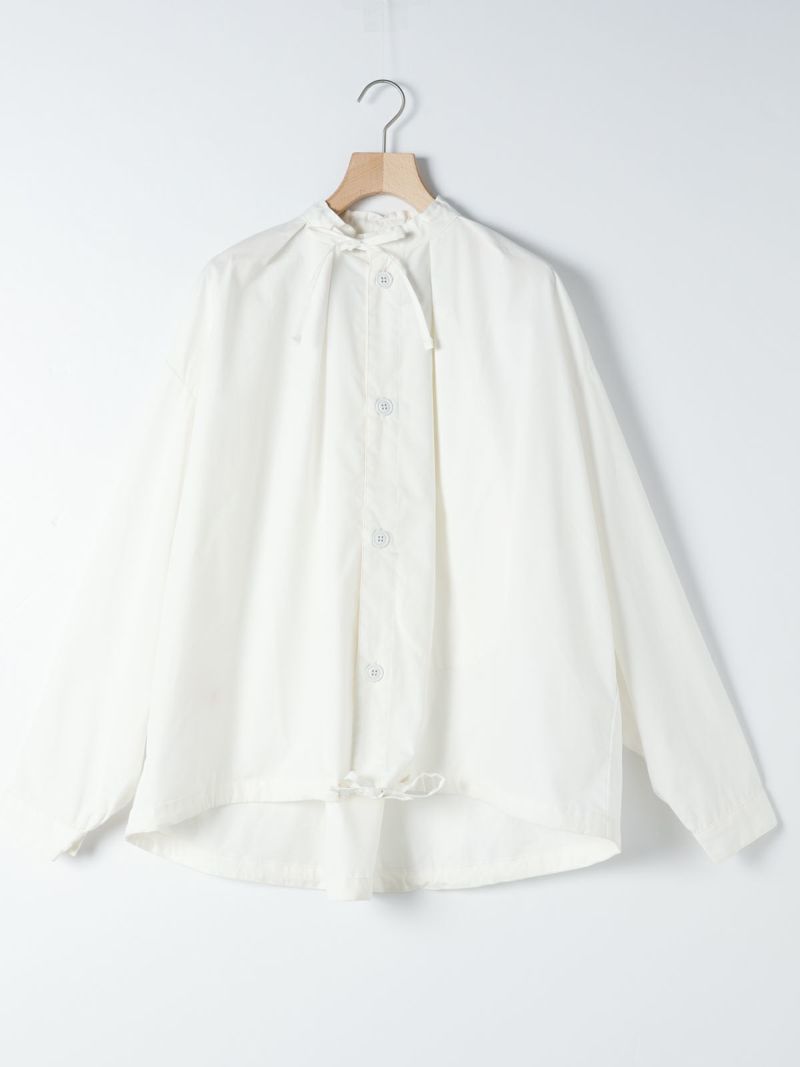 1900年代初頭のスイス軍スモックから着想を得たデザインのシャツです。プリーツカラーやストリングクロージャー、背面のインバーテッドプリーツなど、クラシックなディテールを取り入れつつ、現代的に再構築された一着です。素材には、上品な光沢と滑らかな肌触りを持つオリジナルファブリック「Vancloth Oxford」を使用。100%コットンながら高い耐久性を備え、デイリーユースにも適しています。ゆったりとしたアウターライクなシルエットで、真夏を除くスリーシーズンに対応。前後差のあるフレアな裾は、内蔵のドローストリングでフォルムの変化が楽しめます。また、ユニークな内ポケットがさりげないアクセントに。機能性とデザイン性を兼ね備えた、Monitalyらしい一着です。