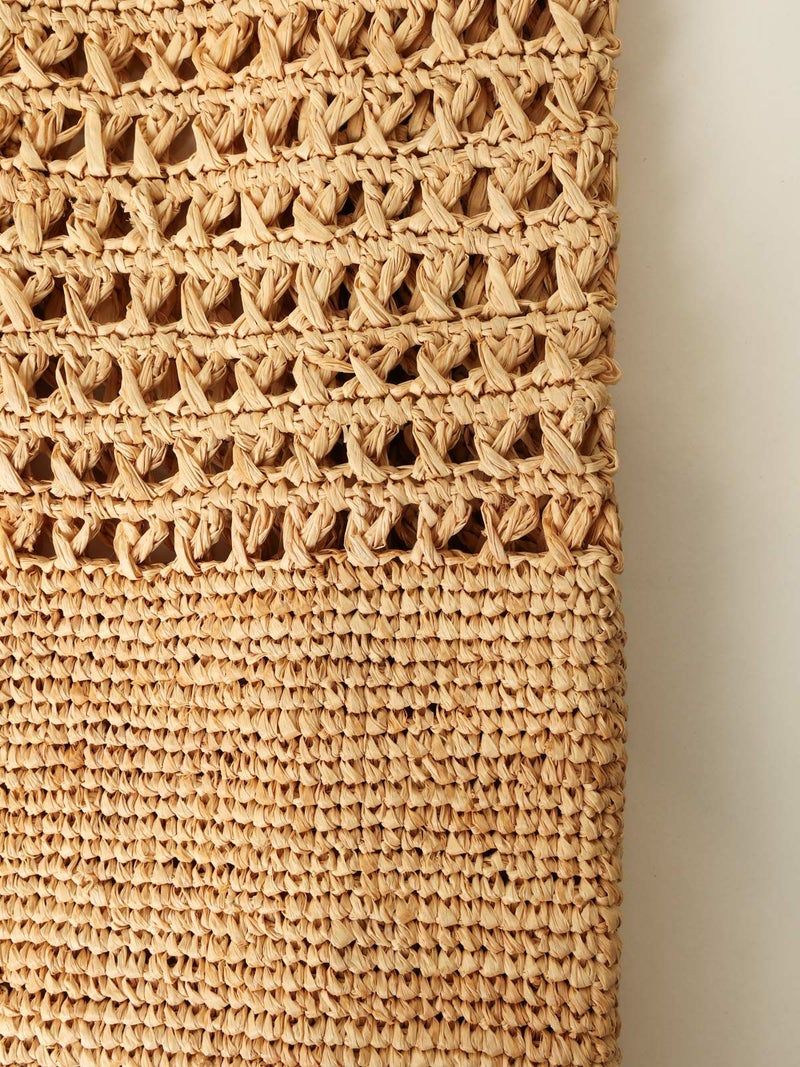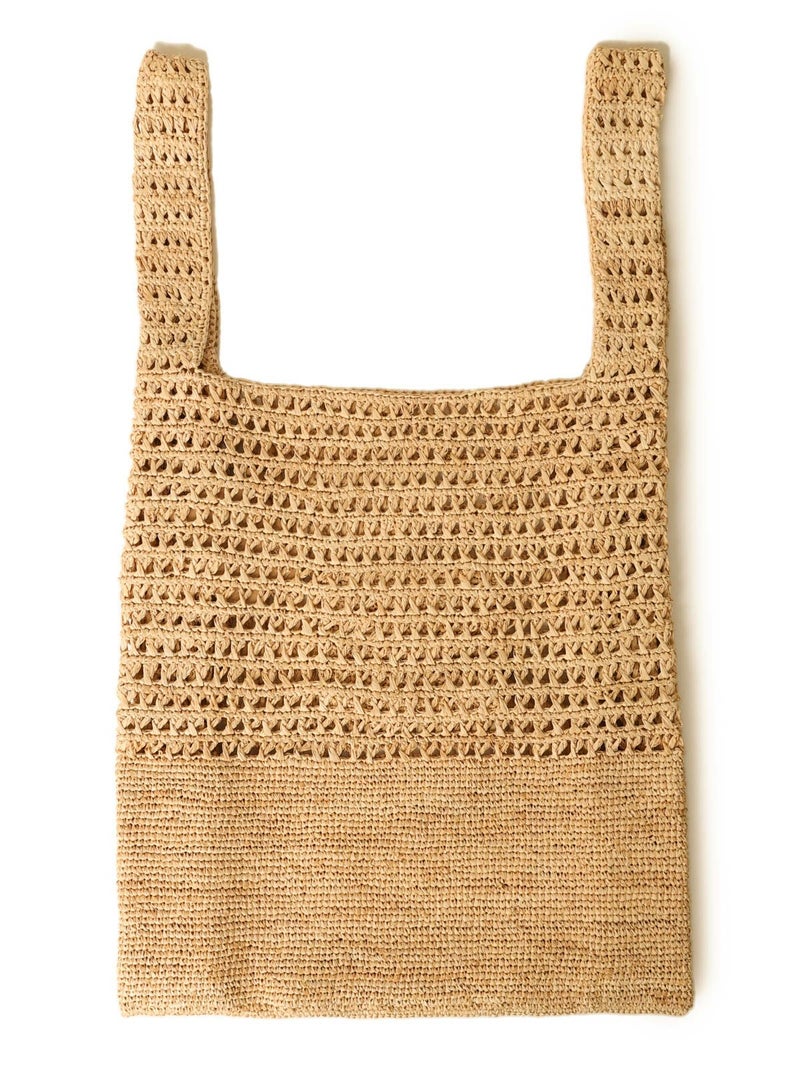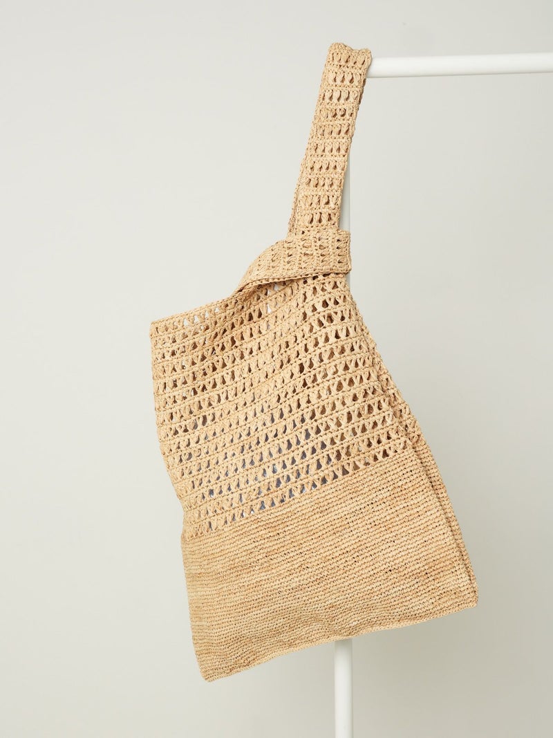 ラフィア素材のハンドバッグ。大きなサイズで夏のコーディネートに映えます。天然素材の爽やかでエレガントなスタイルが美しいバッグです。内部にポケット付き。こちらの商品は手作業で仕上げられています。天然素材を使用しているため個体差がございます。