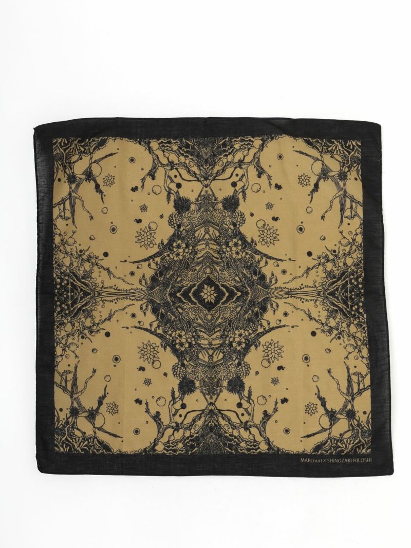 MARcourtオリジナルバンダナ。アーティストとのコラボレーションアイテム。スカーフやバッグのアクセサリーとして使いやすいサイズ感で、日常使いにぴったりです。独特な世界観から生み出される生命力溢れる幻想的なイラストが目を惹きます。ざっくりとしたコットン素材。シアー感がありシーズン問わず使いやすいアイテムです。