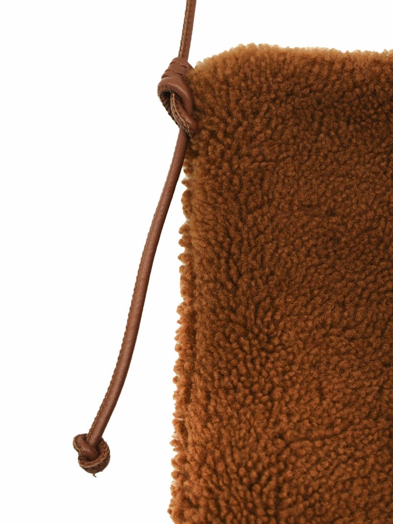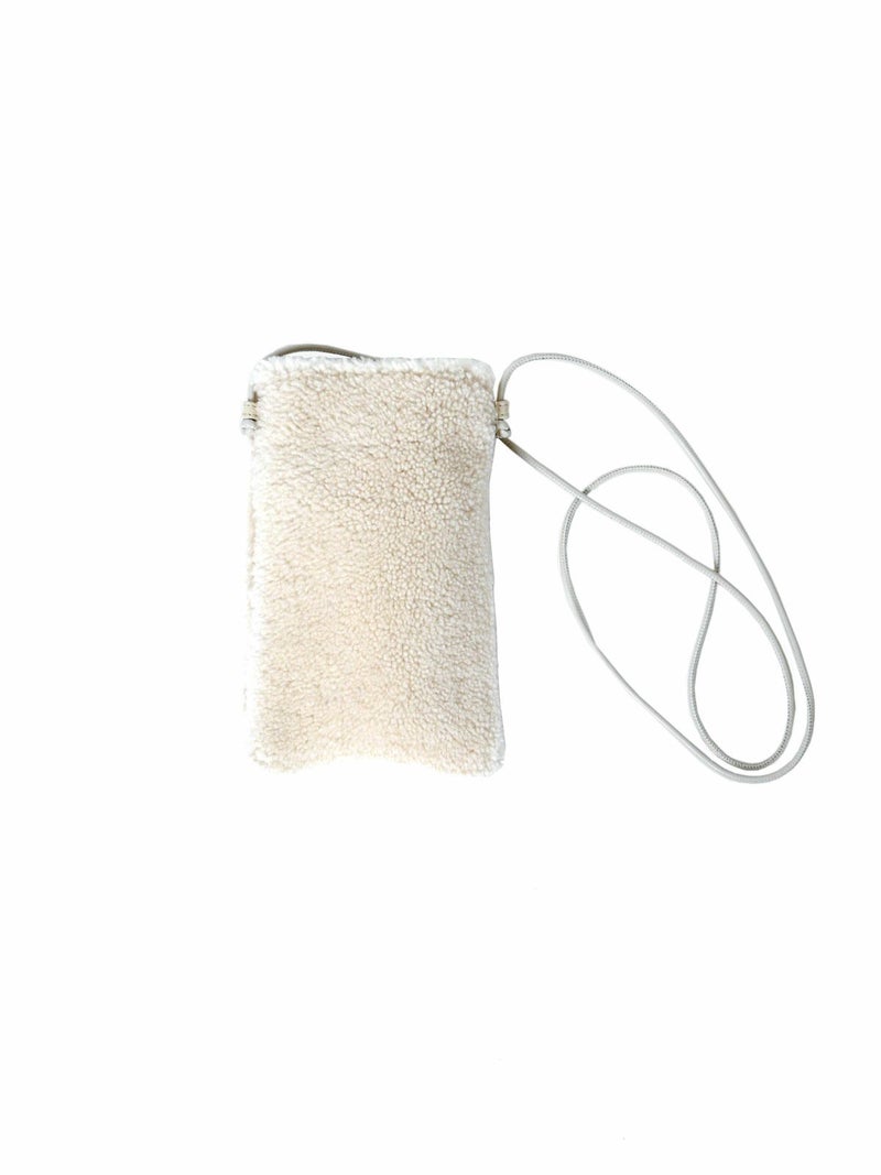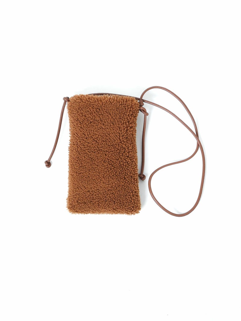 もこもことした手触りのボアショルダーバッグ。スマートフォンや小さい財布などの貴重品が収まるコンパクトなサイズ感で、幅広いシーンで活躍します。あたたかみのある素材感が、カジュアルはもちろんシンプルな装いにもマッチし、秋冬のコーディネートにさりげないアクセントを加えてくれます。※ハンドメイドの1点ものです。天然素材を使用しているため、糸とび、色ムラ、小さなシミなどが見られます