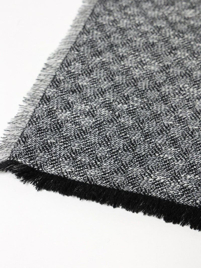 ジャカード柄がおしゃれな1枚。コットンの柔らかさとヴァージンウール(羊毛)の柔らかでソフトな肌こごちと暖かさが感じられます。ロング丈で寒い季節を暖かく彩ります。