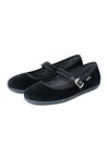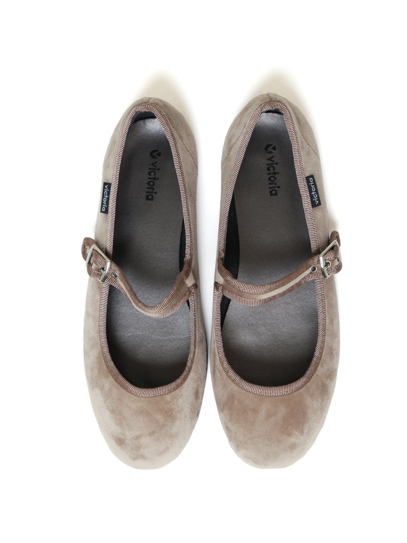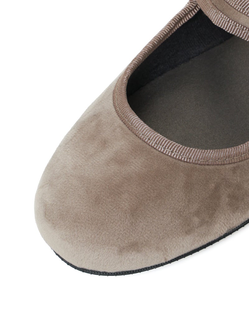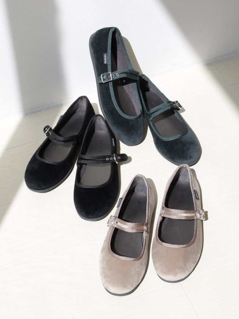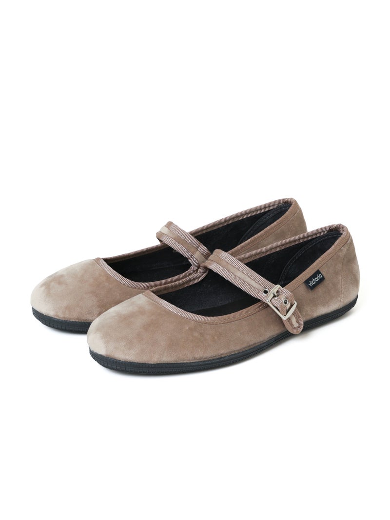 光沢感が上品でクラシカルな印象、ベロア素材のストラップシューズ。調節可能なストラップでしっかりホールド、スニーカー感覚で歩きやすく、クッションインナーソールで疲れにくく履き心地抜群です。コロンとした丸みのあるラウンドトゥが女性らしいスタイリングに。ラバーソールで滑りにくく特有の甘い香りが漂うソールとなっています。