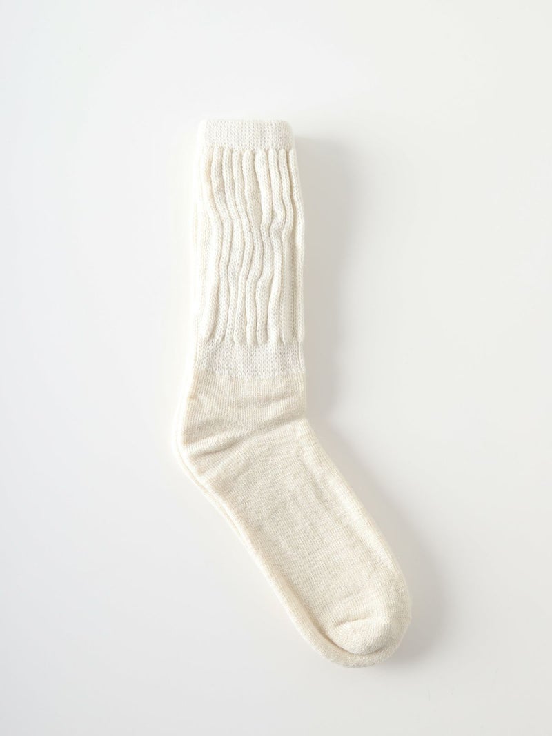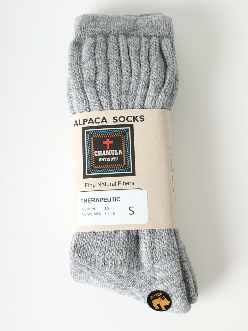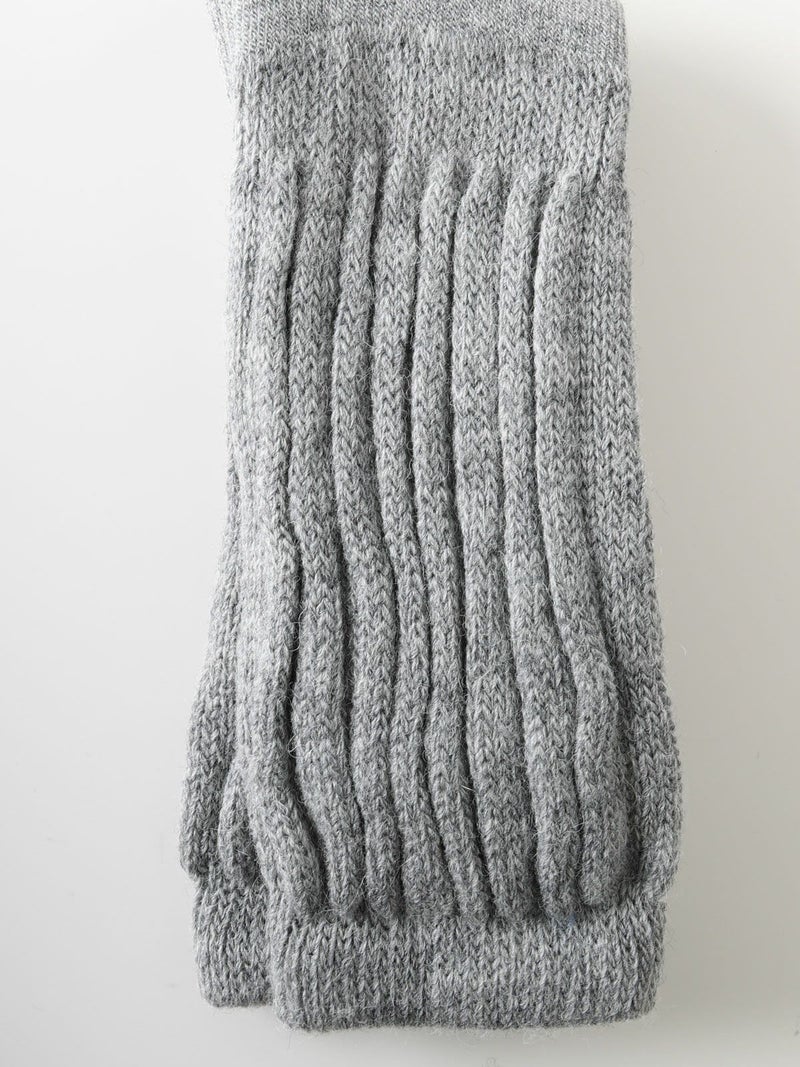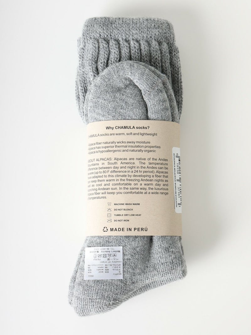 アルパカの毛糸ソックスです。アルパカは昼と夜の気温差が最大26度ある南アメリカアンデス原産。気温差の激しい地域で気候に適応するアルパカの毛糸を用いた暖かい日も涼しい日も快適に過ごすことができるソックス。汗をかいても水分を吸い取り優れた断熱特性を持ちます。柔らかく軽量、低刺激で天然オーガニック。上質さを感じていただける靴下です。