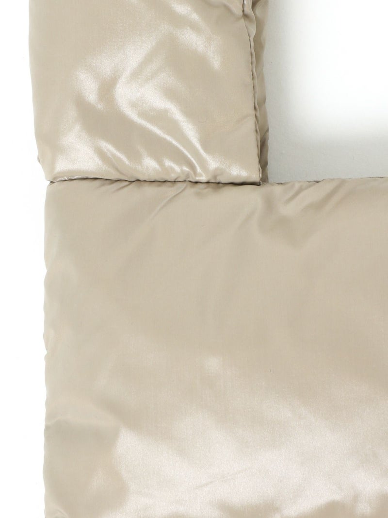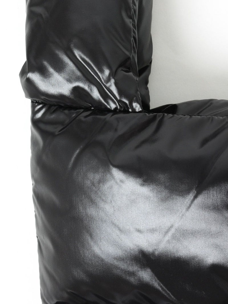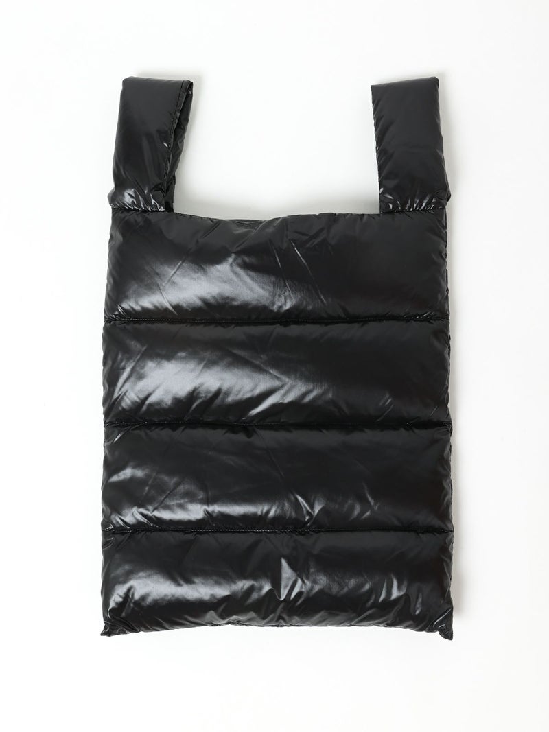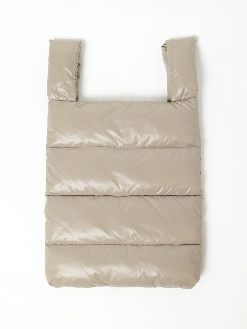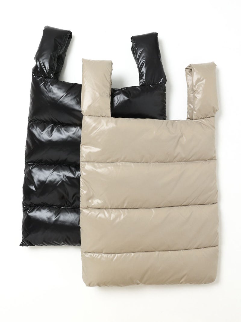 キルティングダウンのバッグ。上品な光沢感でスタイリッシュモードな印象。A4が入るサイズ感。内側にポケット付き。ふかふかの素材感で軽くお出掛けにぴったり。寒い季節のコーディネートに映えます。
