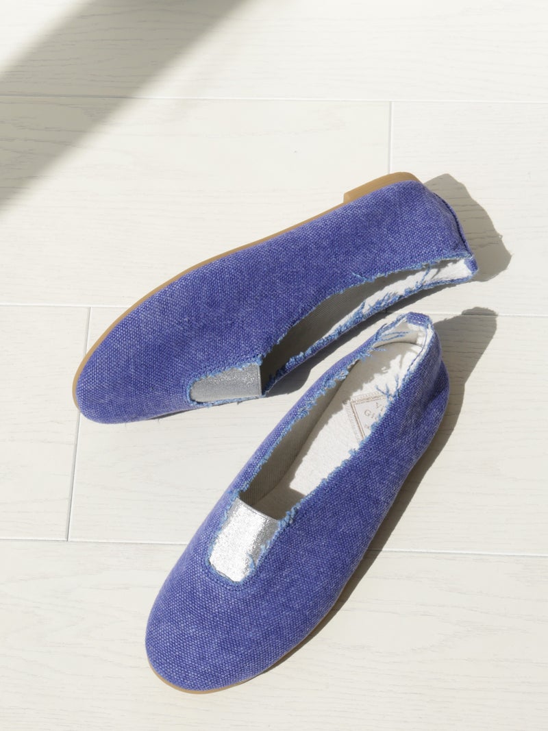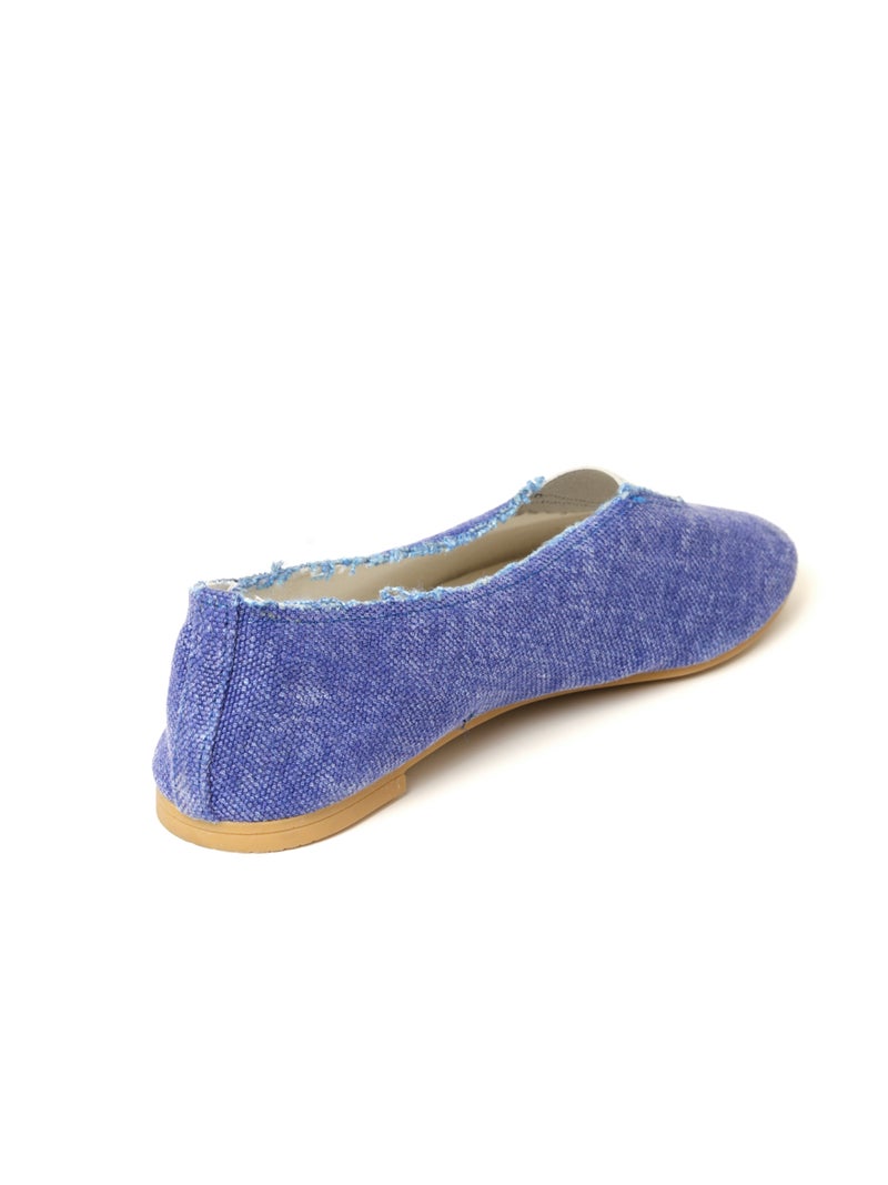 リネンライクなナチュラルな風合いが魅力のフラットシューズ。履き口にあしらったラフなカットオフ仕様が、抜け感のある軽やかな印象を演出。シンプルながらも表情のあるデザインで、春夏のスタイリングにさりげないアクセントをプラス。やわらかな履き心地で、デイリーに取り入れやすい一足です。