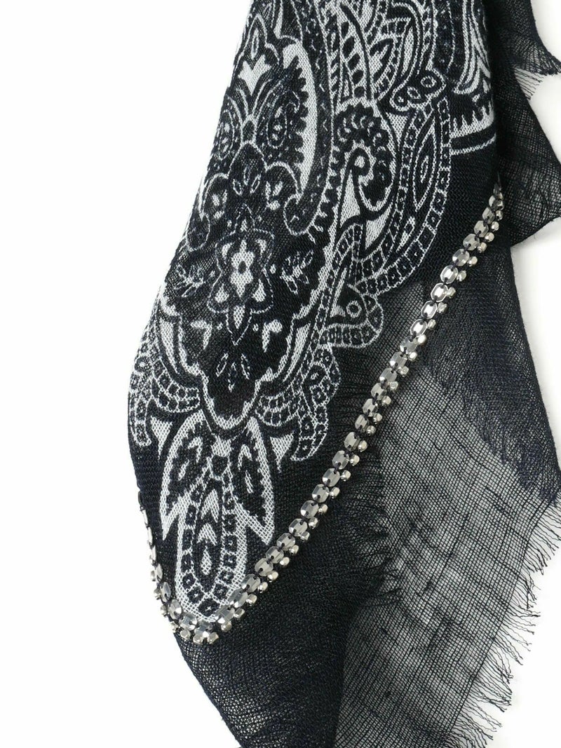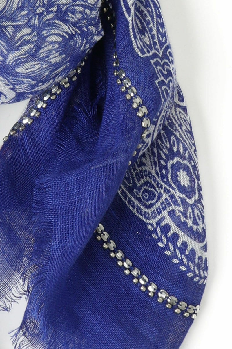シルバービーズがアクセントのペイズリー&花柄フリンジ大判スクエア型ストール。シックながらも華やかで大人のカジュアルスタイルにぴったりな1枚。リネンのざっくりとした肌心地。涼し気な透け感が暑い季節に映えます。く冷房・紫外線対策に活躍します。