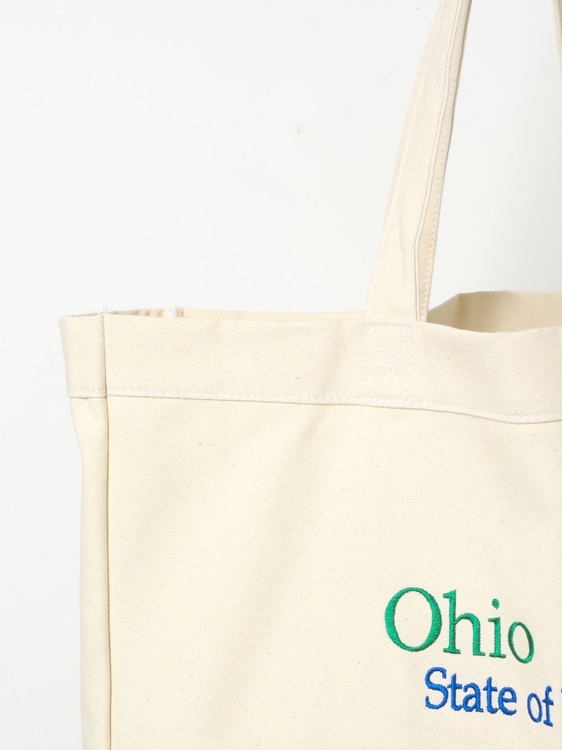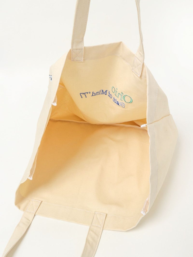 フロントにロゴ刺繍がアクセントになったシンプルながら主張のあるデザインのキャンバストートバッグ。使い勝手が良い大きめのサイズ感で、デイリーシーンはもちろん、旅行などのサブバッグとしてもお勧め。