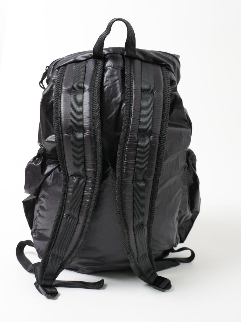 大容量で軽量パッカブル仕様のバックパックです。アウトドアでよく使用される強度の高い高密度のリップストップナイロンを使用。両サイドにはドローコード付きのポケットが付いています。ショルダーストラップはクッション性があり荷物が重くても背負いやすく通気性の良いメッシュ仕様。フラップ部分のポケットに折りたたんで収納することができます。大容量ながら軽量でパッカブルタイプはレア。アウトドアブランドらしいしっかりとした作りで長くご愛用いただけます。